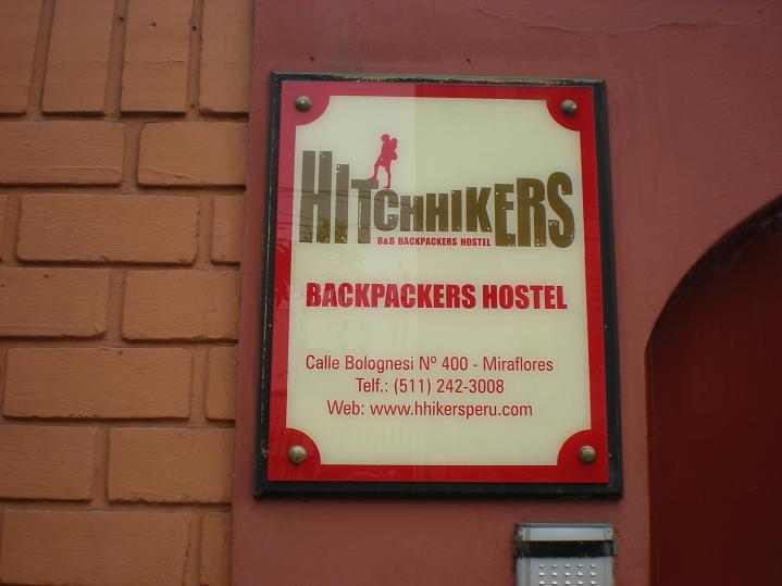 Cheguei em Lima às 11:40 da manhã (fuso de duas horas a menos em relação ao Brasil), passei a imigração, peguei malas e pranchas, e na área de desembarque já estava me esperando, com uma plaquinha com meu nome, o motorista enviado pelo hostel (Hitchhikers Backpackers) que eu ficaria hospedado em Miraflores (Lima).