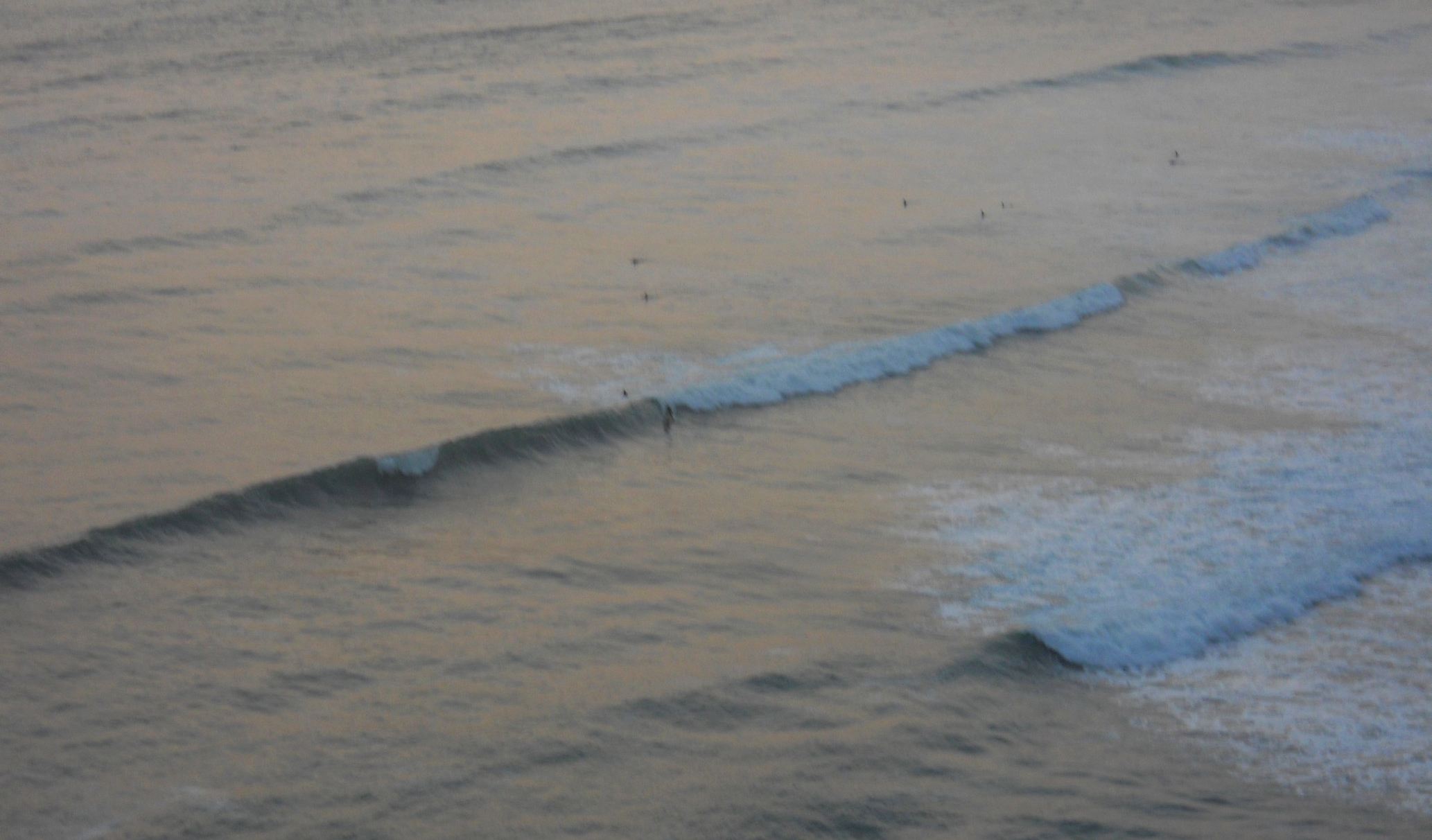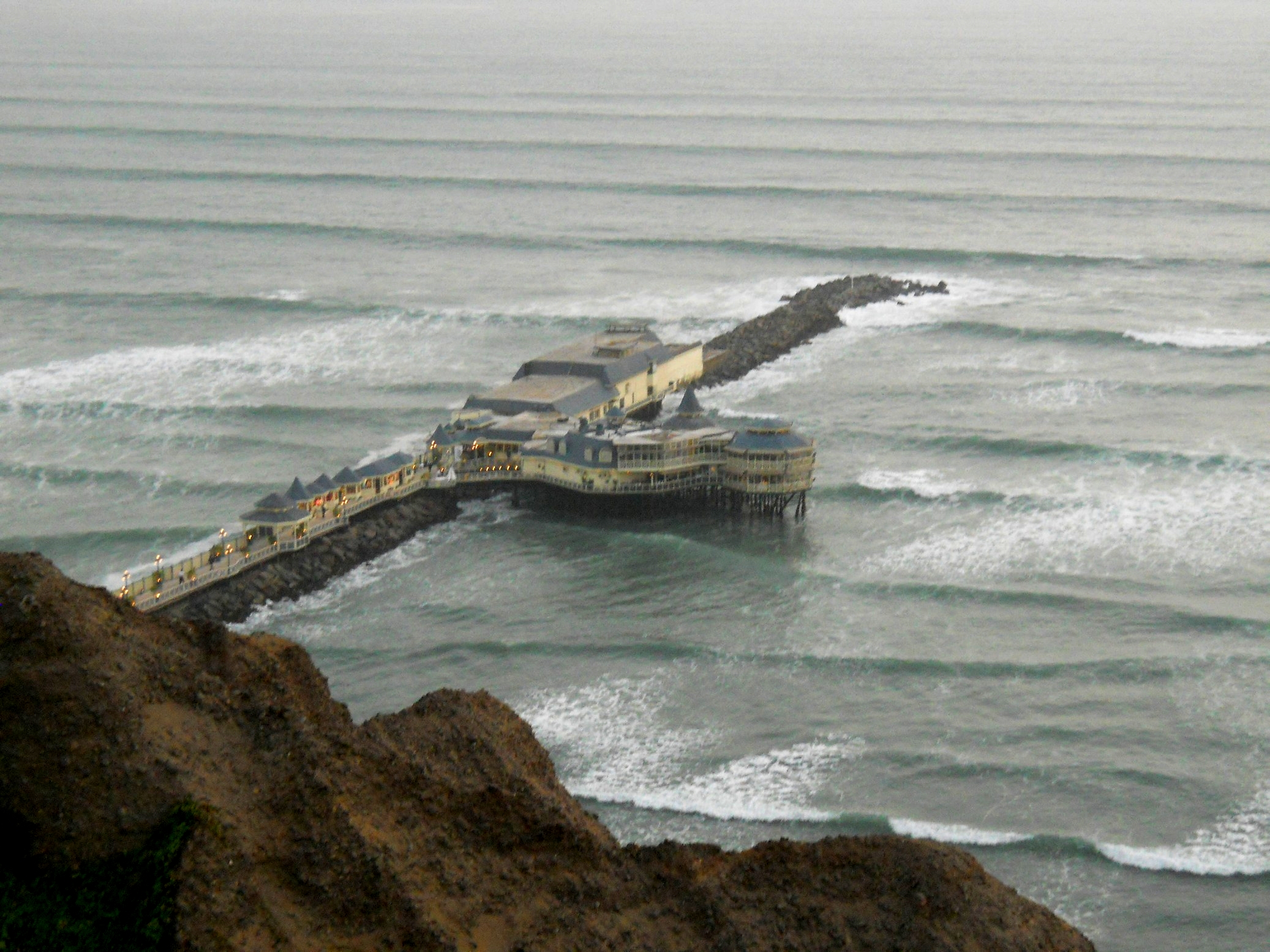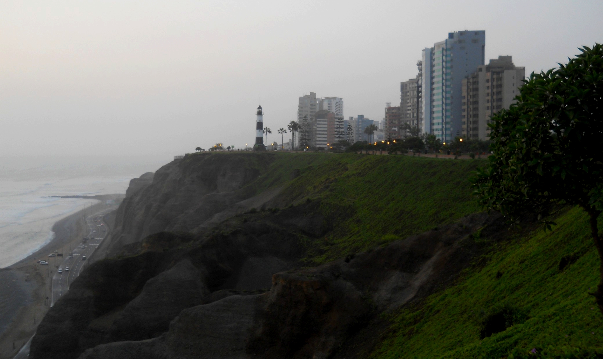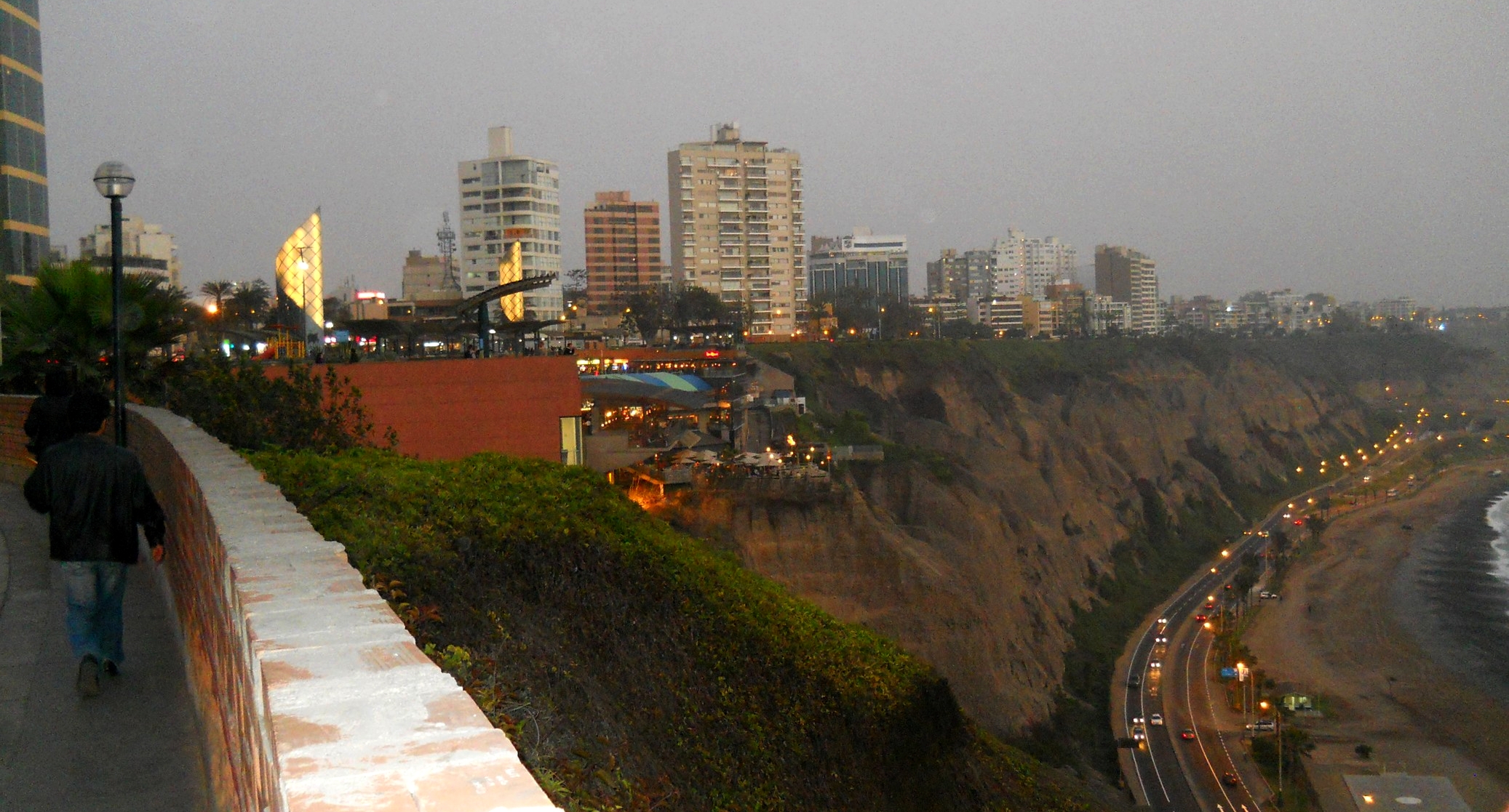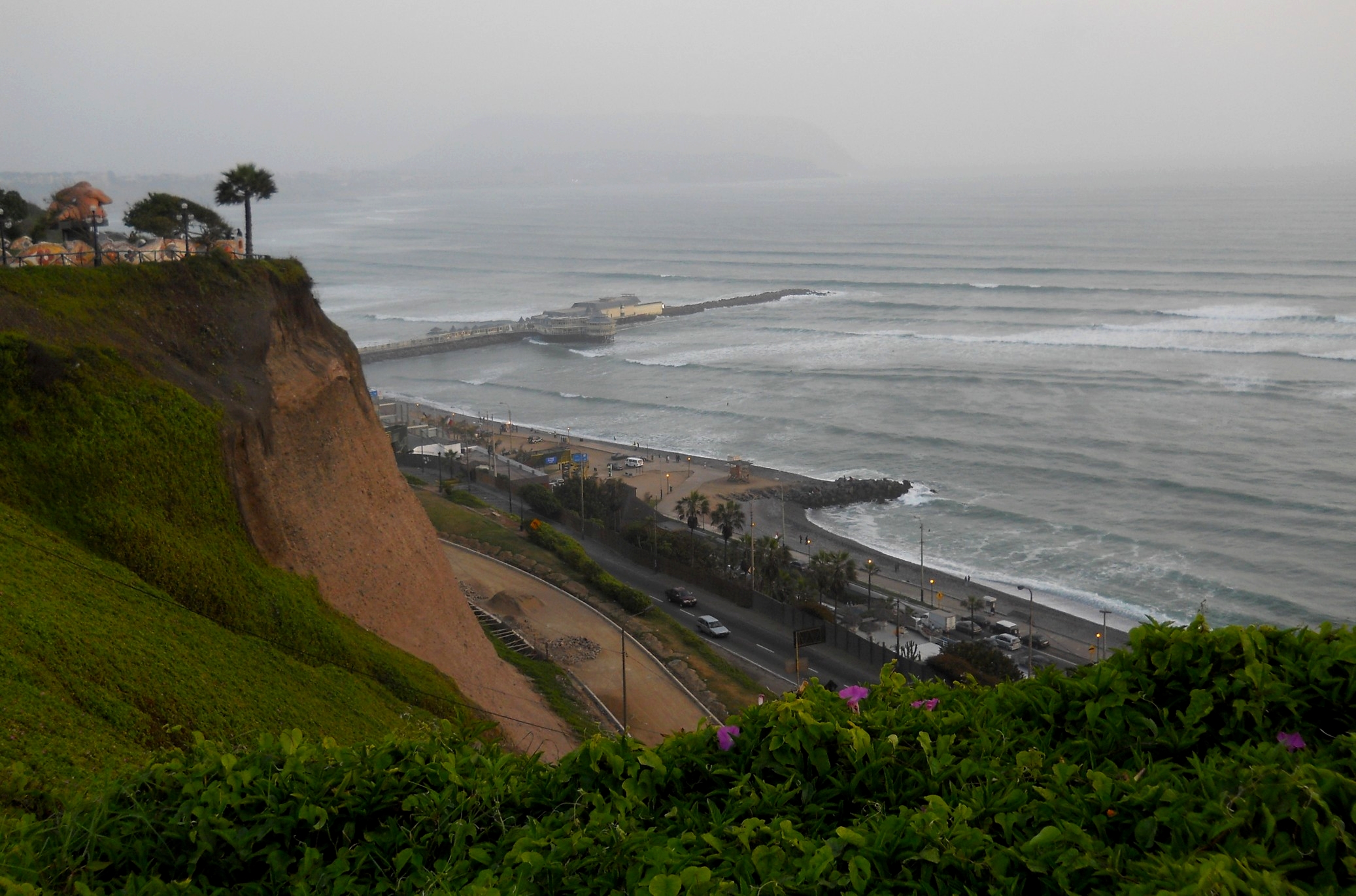 De cima do Cliff, que tem cerca de 70 metros de altura, avistam-se todas as praias da Costa Verde de Lima, e bem abaixo do Parque Del Amor fica o molhe onde está construído o famoso restaurante “Rosa Náutica”, entre as praias de “Makaha” e “Waikiki”. Tinham boas ondas na Costa Verde neste dia, o swell estava bem forte e a galera estava fazendo a festa lá embaixo, especialmente na praia “La Pampilla”.