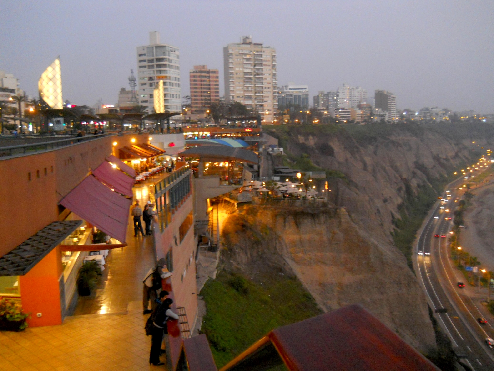 Segui costeando o cliff até chegar ao shopping Larcomar, que é um shopping/boulevard a céu aberto, encravado no meio do Cliff de Miraflores. Muito maneiro lá, com bares e restaurantes bem na beirada do Cliff, e um baita visual do Oceano Pacífico. Além disso, tem algumas surf-shopps lá no Larcomar, incluindo uma outlet da Rip Curl. Ademais, há também duas boates, que segundo o pessoal daqui, bombam na noite.