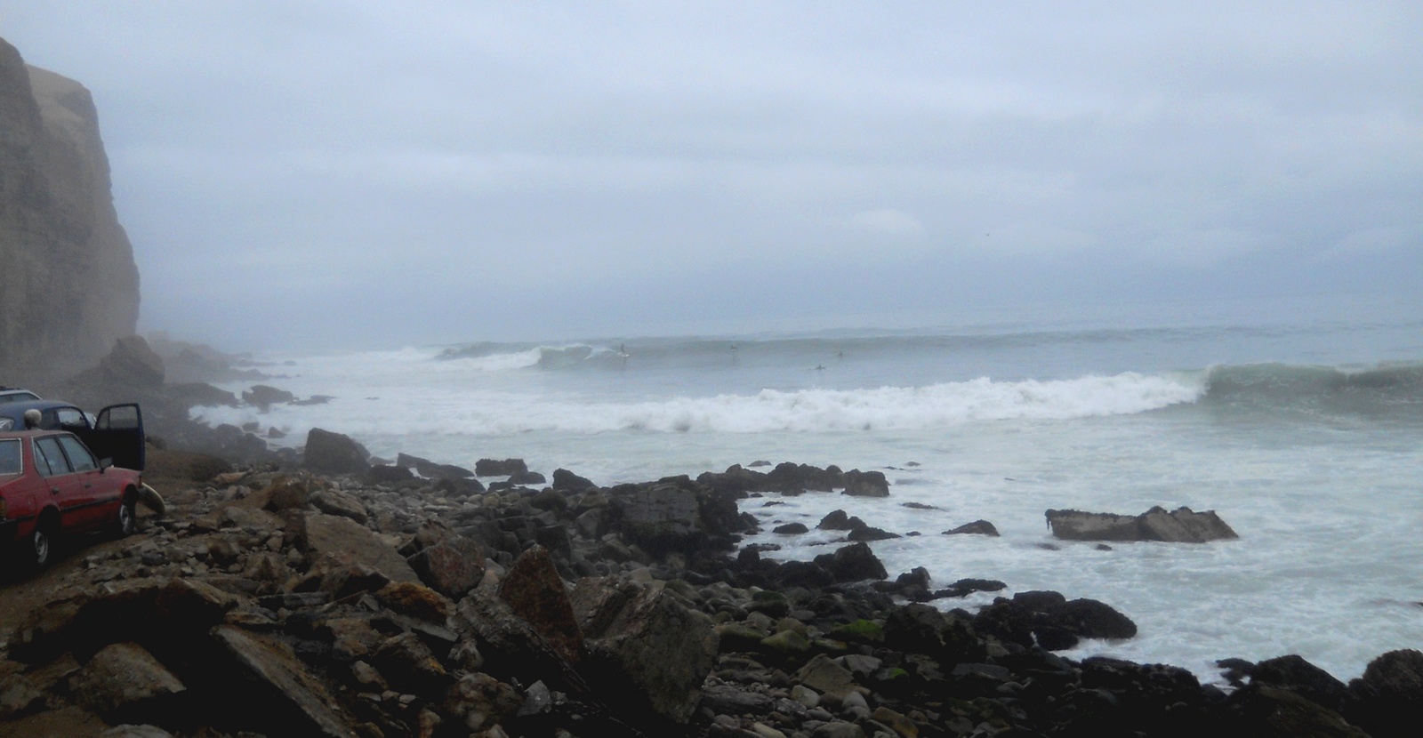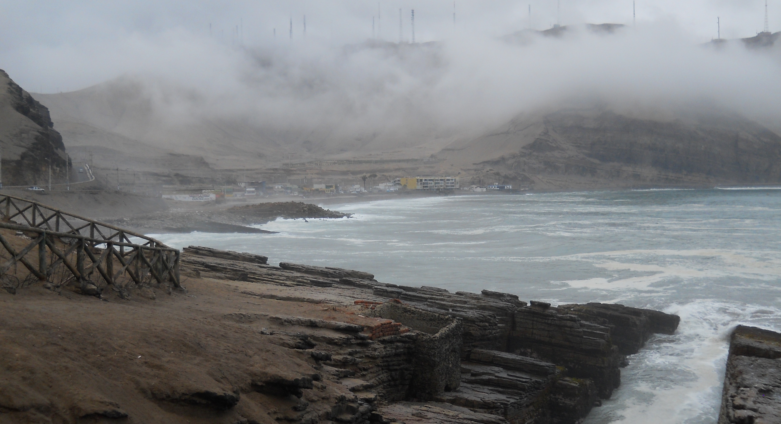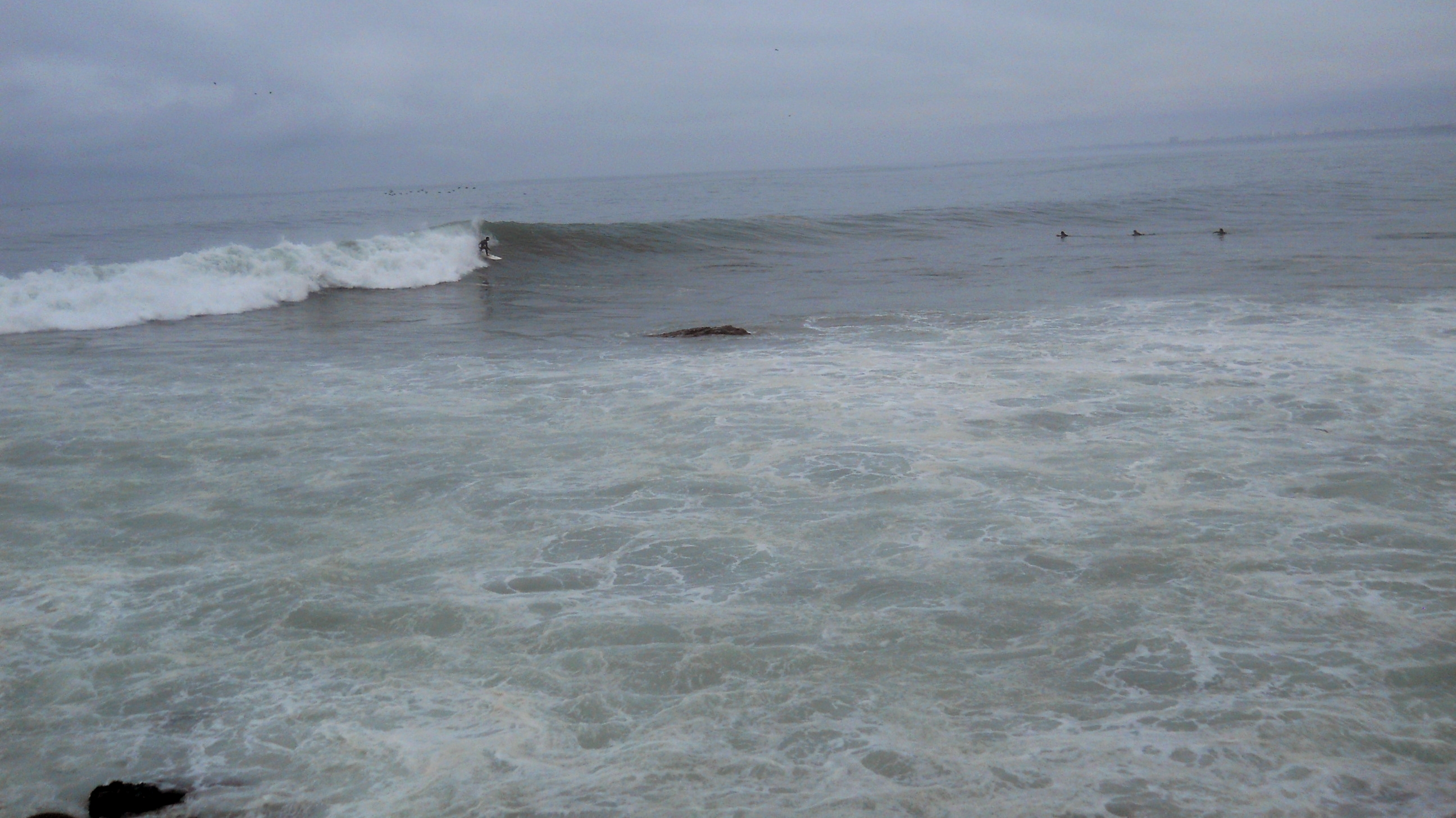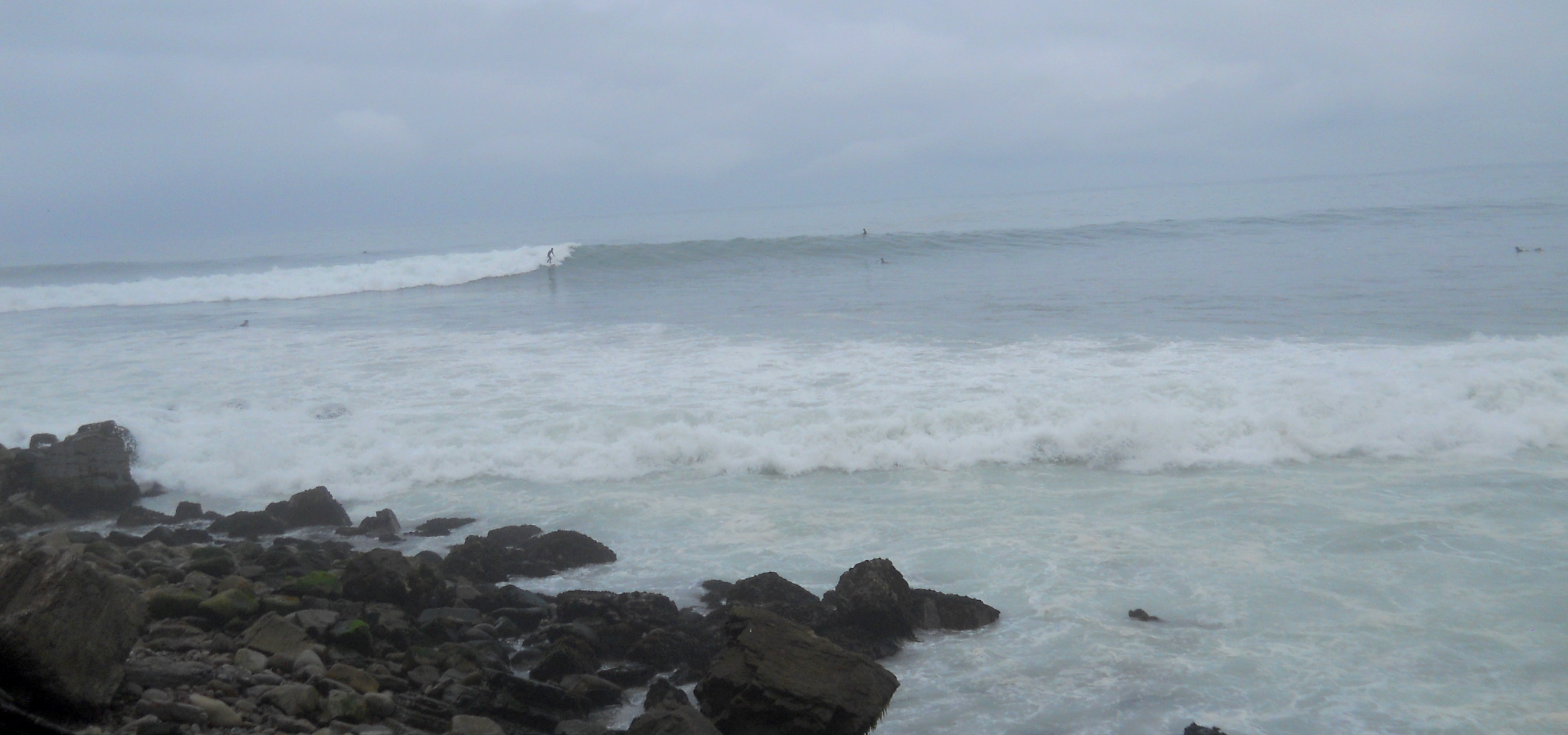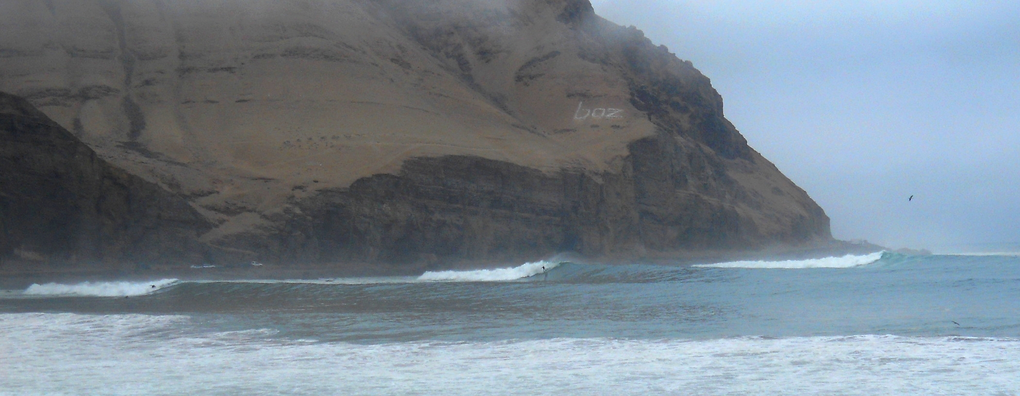 Dia 22, tomamos o desayuno e fomos dar um conferes em La Herradura, que é uma praia aqui no sul da cidade de Lima, mais especificamente na Municipalidad de Chorrillos. La Herradura tem uma onda que quebra lá de vez em quando, somente quando o swell está gigante, mas quando quebra, é considerada por muitos a melhor onda do Peru. Pegamos um táxi que nos levou até lá, e podemos presenciar a onda quebrando de gala! Estava sensacional ! A onda é uma esquerda que começa quebrando no point bem lá atrás, quase na curva do morro, vem um pouco lenta, deitada e manobrável, depois começa uma sessão que tem que acelerar … surfe pra frente para não morrer nas pedras que começam a aparecer na bancada, depois passa uma sessão de tubo, e por fim volta a ser manobrável no inside … A onda é insana ! Ficamos doidões para cair, mas já estava um pouco adiantada a hora e a galera tinha que voar para o Brasil ainda naquele dia … fica para a próxima, sem duvida !