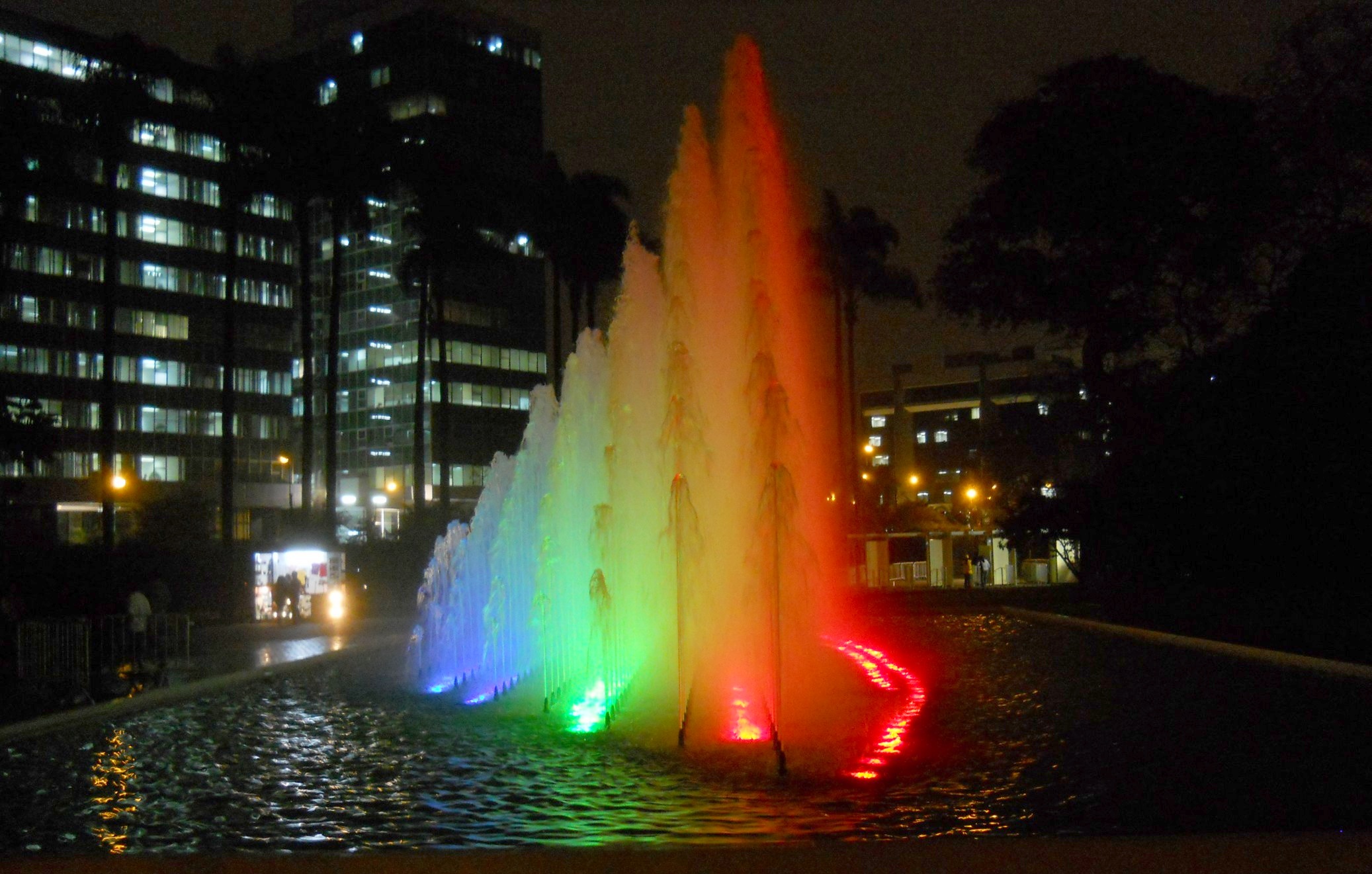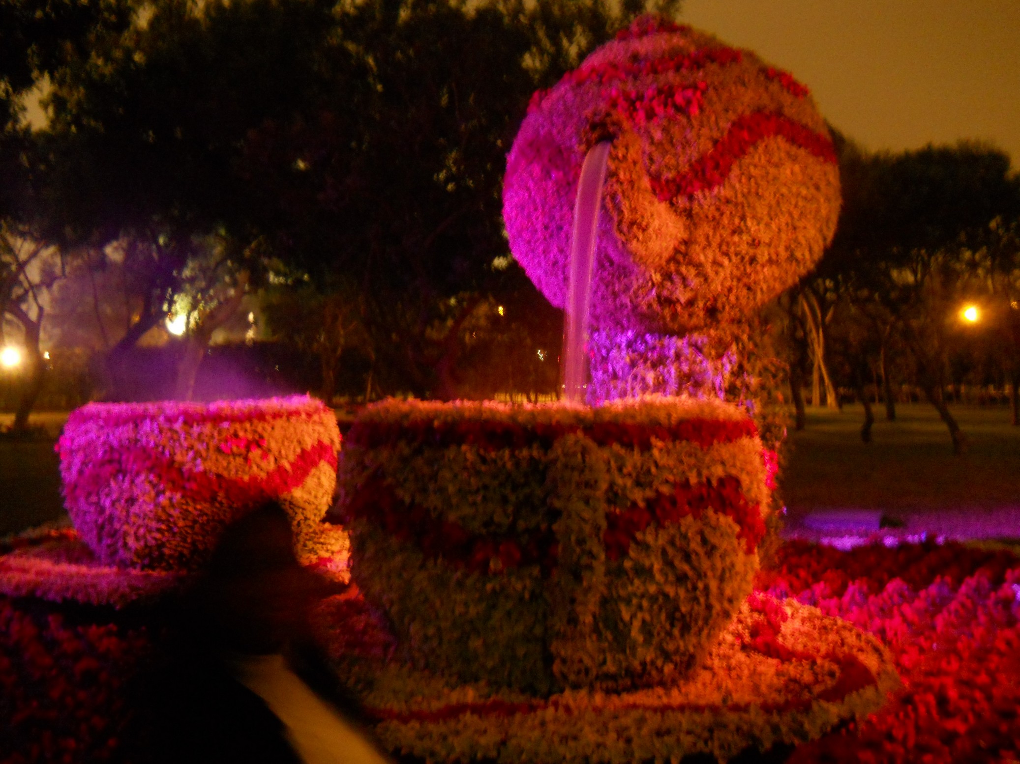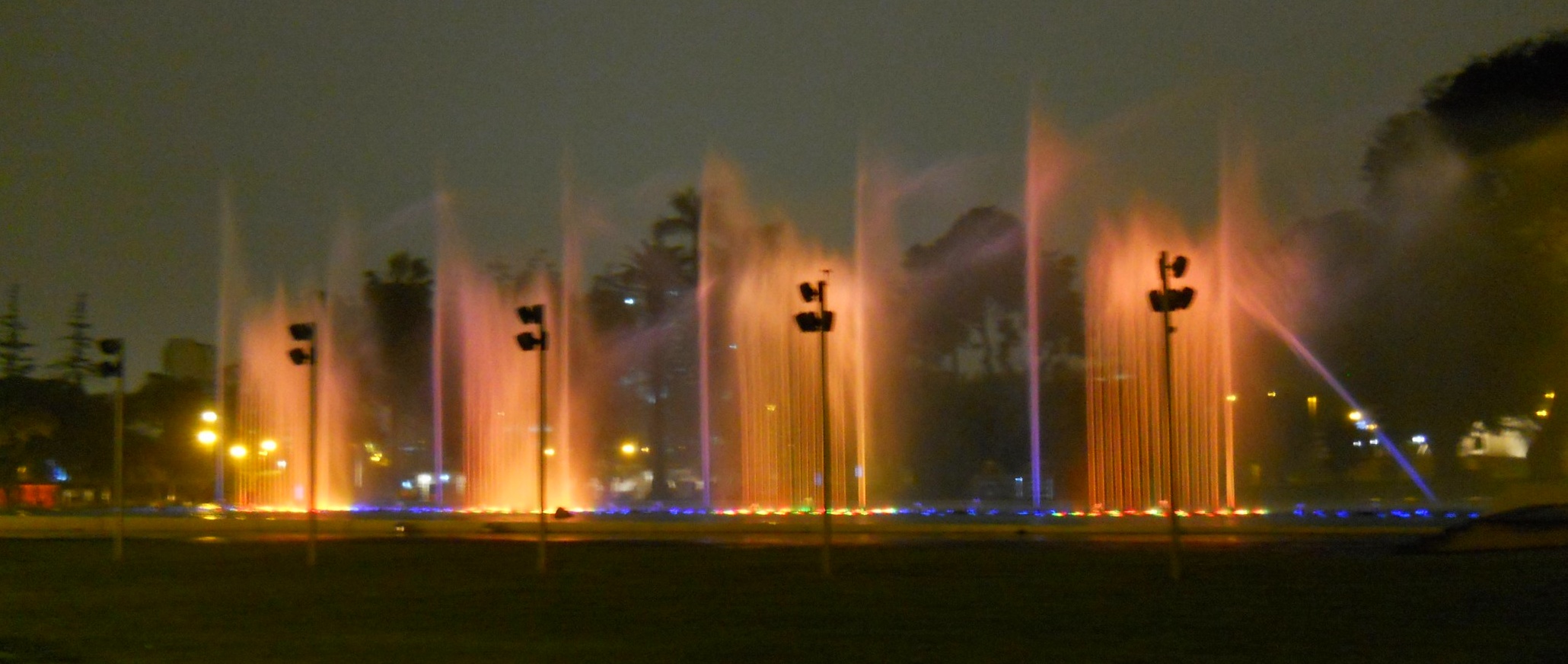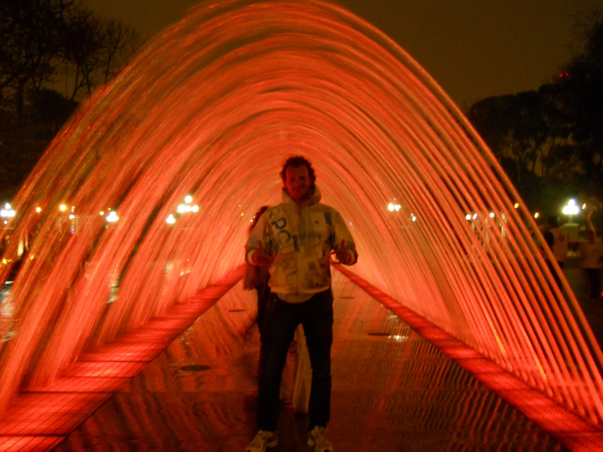 No entardecer, o João e o Luis pegaram um transfer até o aeroporto para retornarem a POA (valeu muito a parceria galera !!!). Eu aproveitei a noite para visitar o “Circuito Mágico del Agua“, no Parque de la Reserva, aqui de Lima. O Parque das Águas, é um conjunto de 13 fontes ornamentais que foram construídas no Parque de la Reserva, considerado patrimônio cultural do Peru. Estas fontes marcaram um recorde no Guinness Book, ao ser considerado “O maior complexo de fontes do mundo em um parque público”. Estas diversas fontes imensas de água, contam com show de luzes projetadas e som, além de túneis de água e formas bem psicodélicas … muito bacana mesmo …