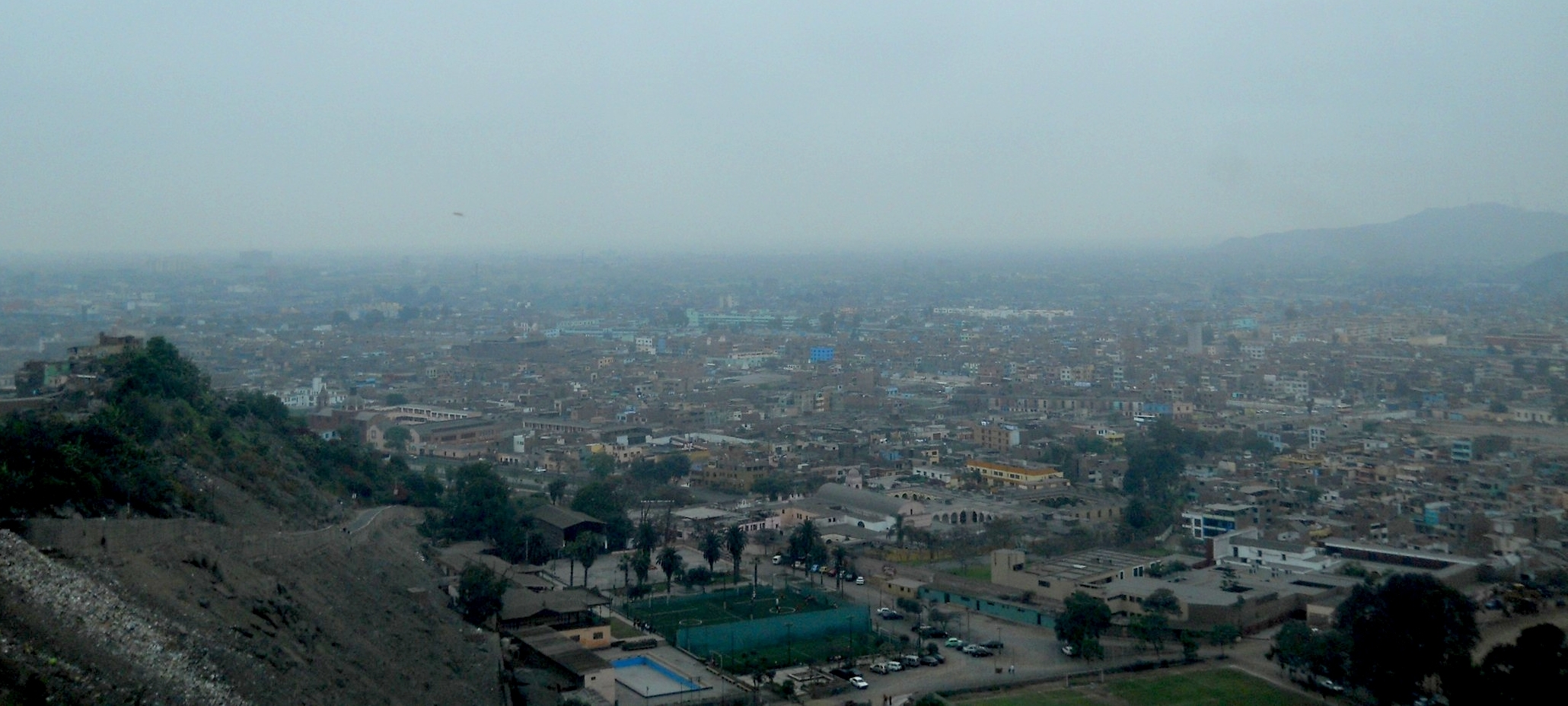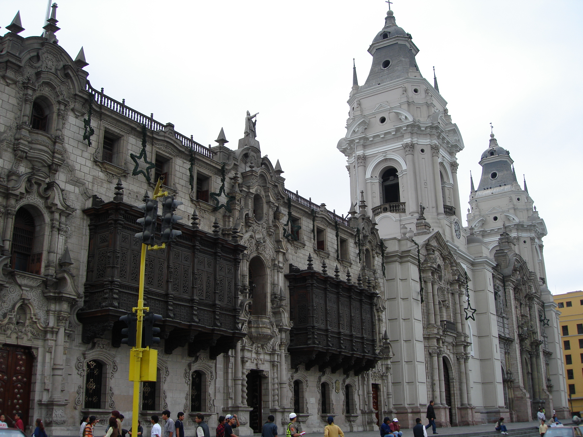 Ontem, após o desayuno, fui para a Plaza de Armas no centro de Lima e fiz um city-tour pelo Centro Histórico de Lima. Depois subi no Cerro San Cristobal, que é um morro acerca do centro de Lima, sendo um dos pontos mais altos da cidade. Lá em cima tem uma grande cruz e um mirante 360°, onde se pode ver praticamente toda a cidade do alto. Está para Lima, mais ou menos como o Corcovado está para o Rio.. claro que guardadas as devidas proporções, pois não tem como comparar o visual das duas cidades. Para chegar lá em cima, sobe-se em uns micro-bus pelo meio de umas favelas em ruas estreitas, onde só passam um carro por vez … depois a estrada estreita mais ainda e parece que o micro bus vai cair no precipício … rsrsrs… muito louco !