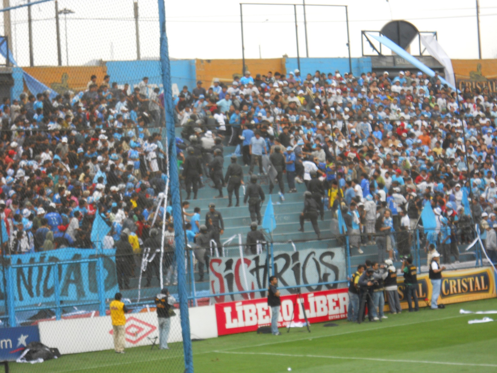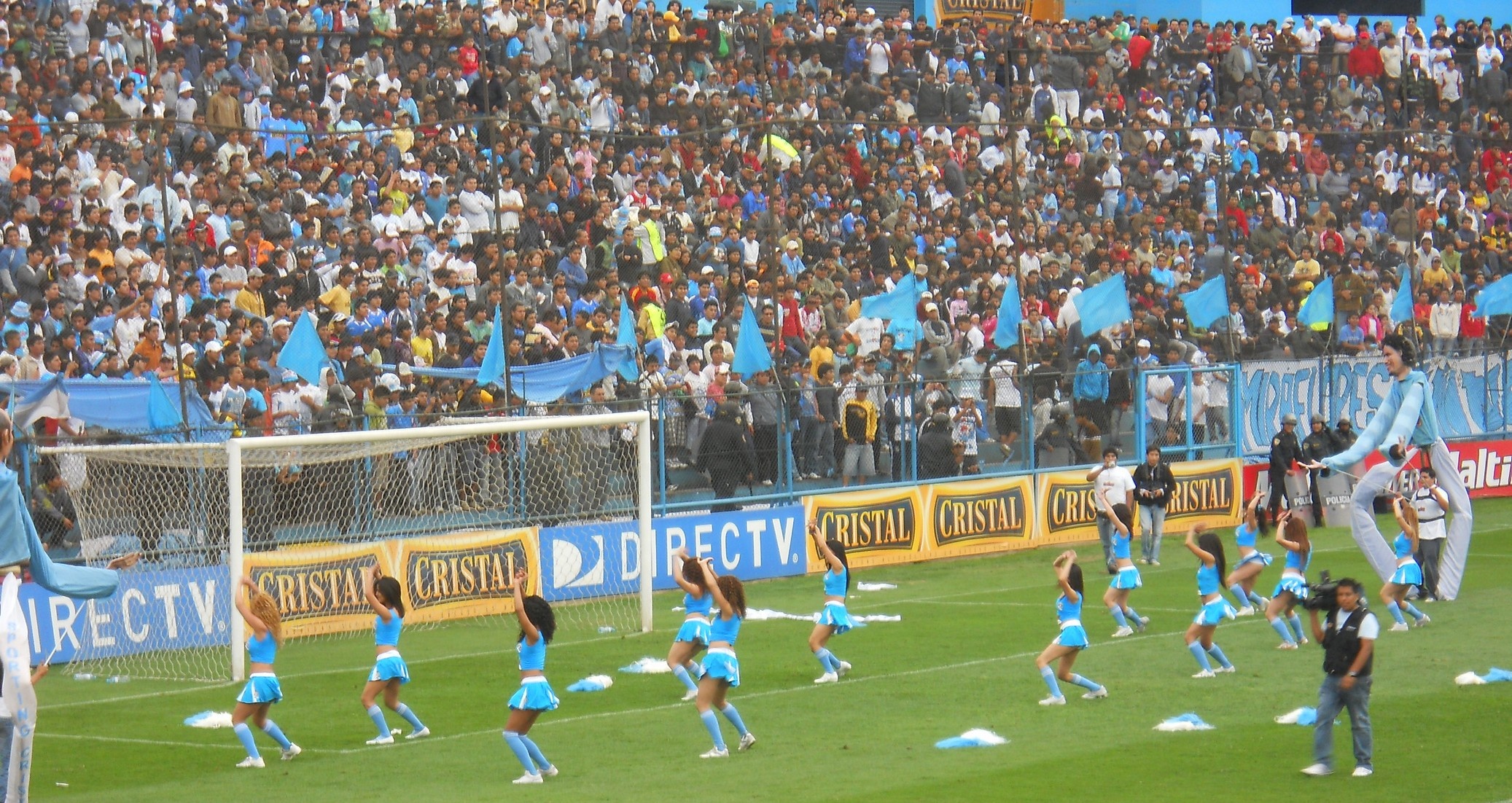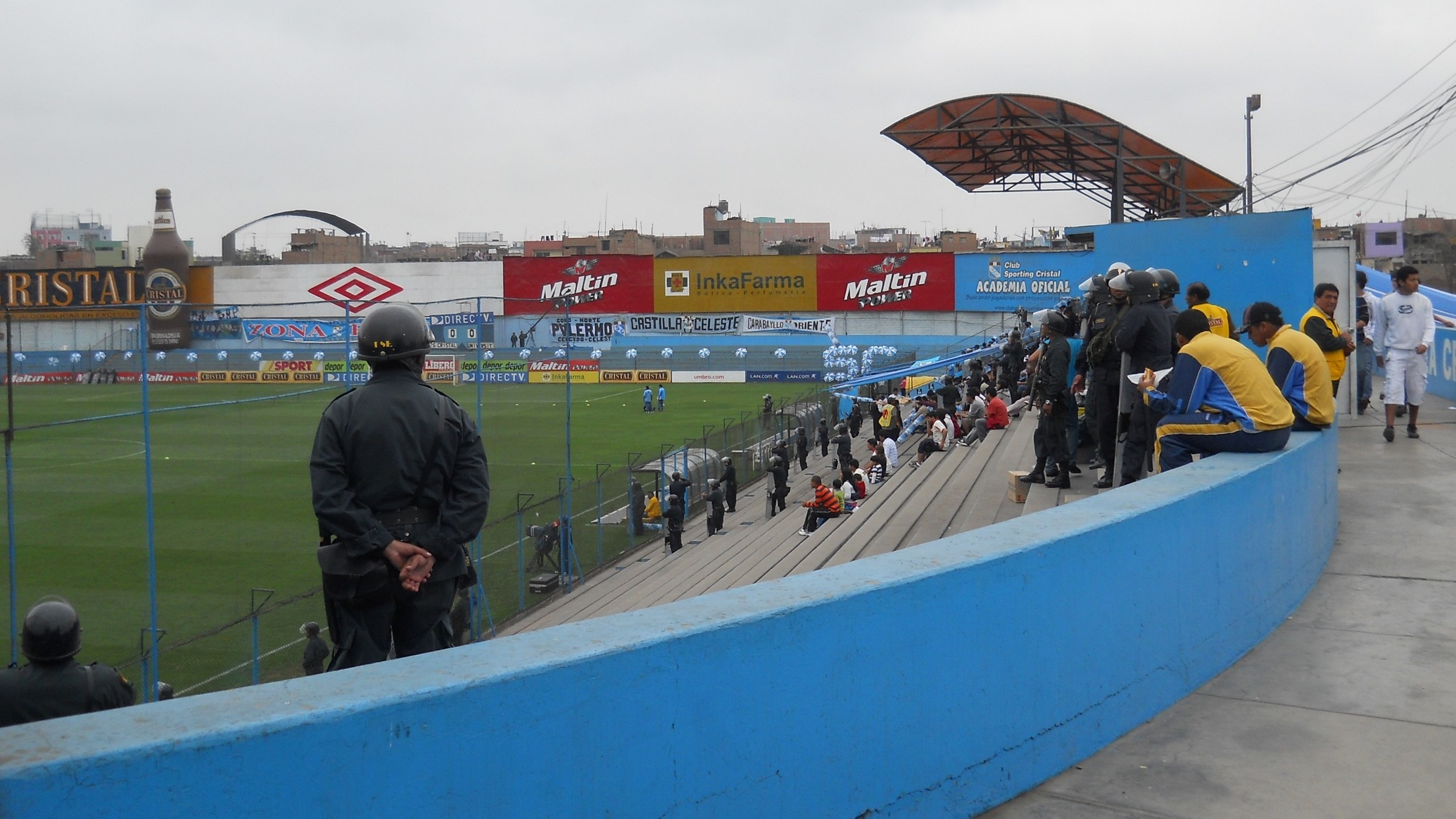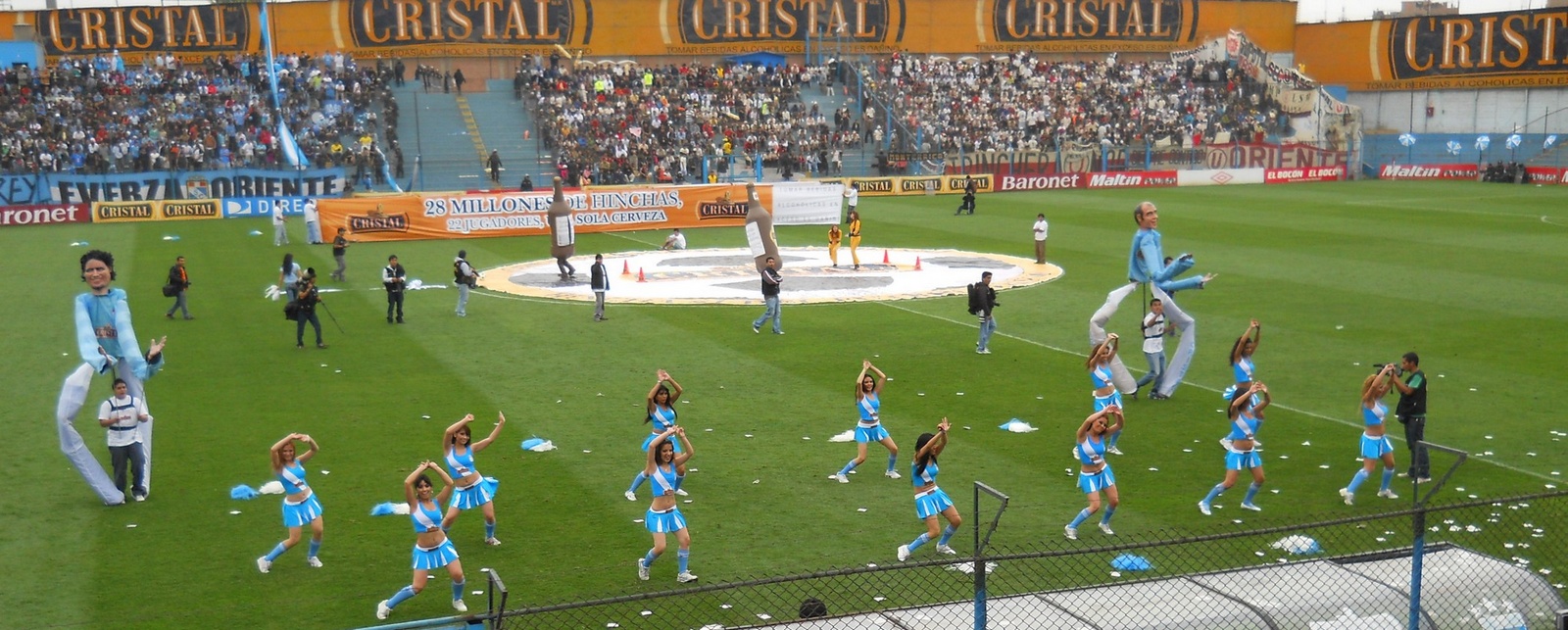 Depois de curtir este passeio, voltei para a Plaza de Armas, peguei um taxi e fui ao estádio San Martin de Porres assistir uma partida de futebol. O jogo era um clássico do futebol peruano: Sporting Cristal x Universitario de Lima. Estádio pequeno, torcidas inflamadas …. fiquei em uma tribunas mais tranquilas mas as torcidas aqui são muito loucas … os caras brigam entre eles mesmo … a cada 10 minutos a Policia entrava no meio da torcida sentando a lenha na galera .. sinistro … No intervalo do jogo a grande atração são as cheerleaders, que dão um belo espetáculo de dança e sensualidade, incendiando o estádio e fazendo a alegria da galera! O jogo em si foi morno e terminou 0 x 0. A saída do estádio foi a parte mais nervosa … tivemos que esperar sair toda as barras e caminhar ate uma avenida para conseguir um táxi … clima tenso e vibe bem pesada .. ir aos estádios aqui é realmente é um programa perigoso ..
