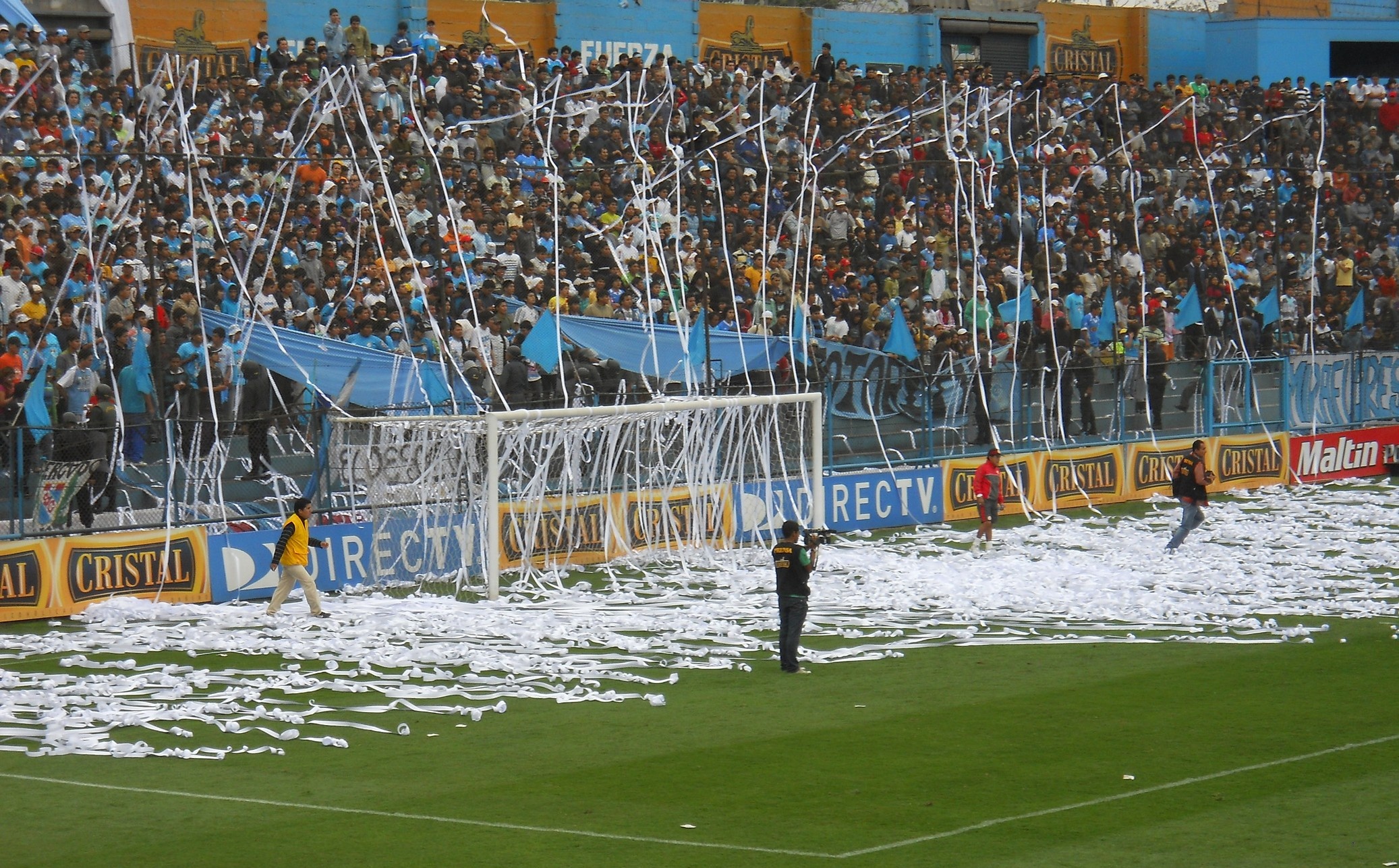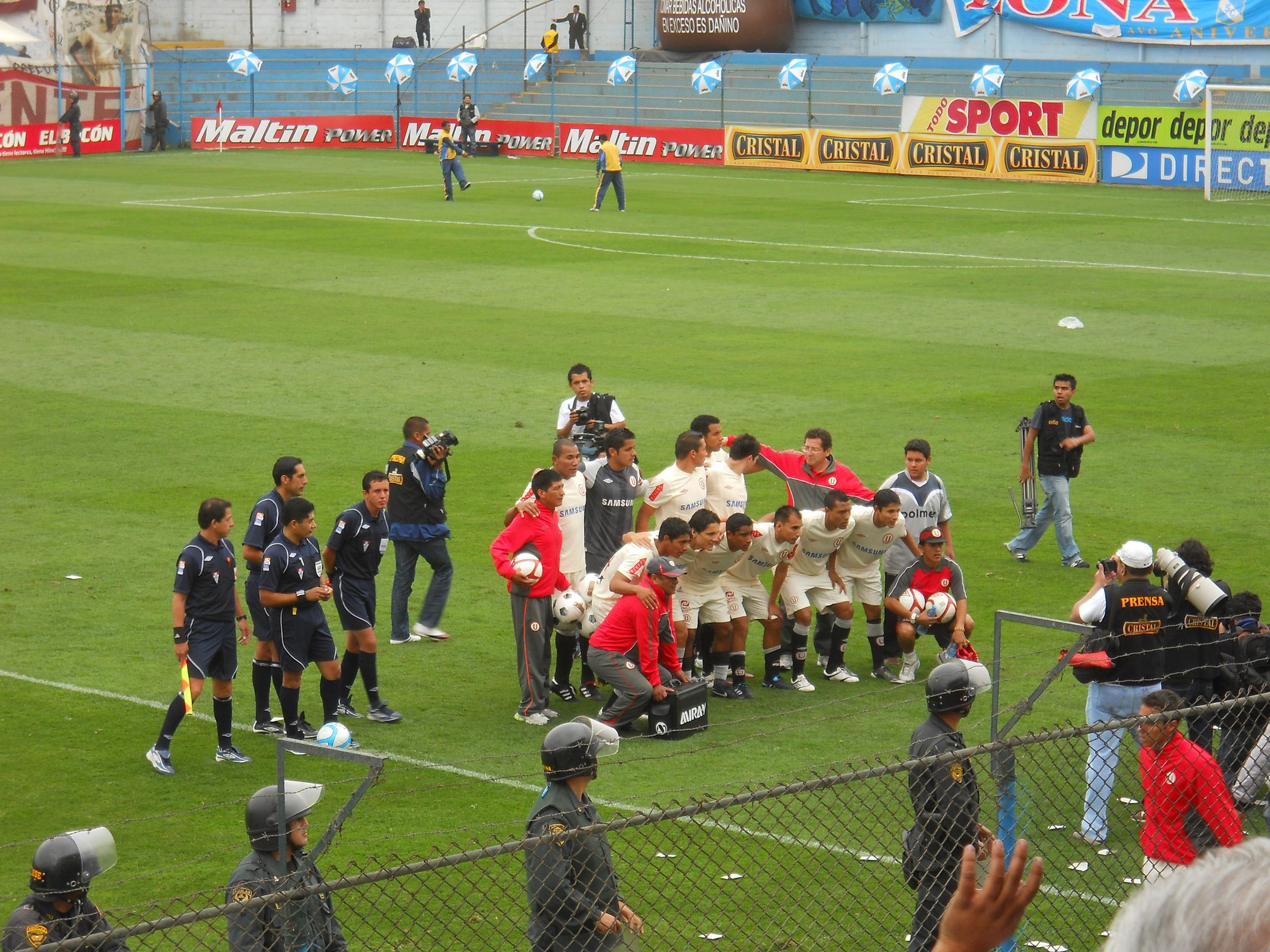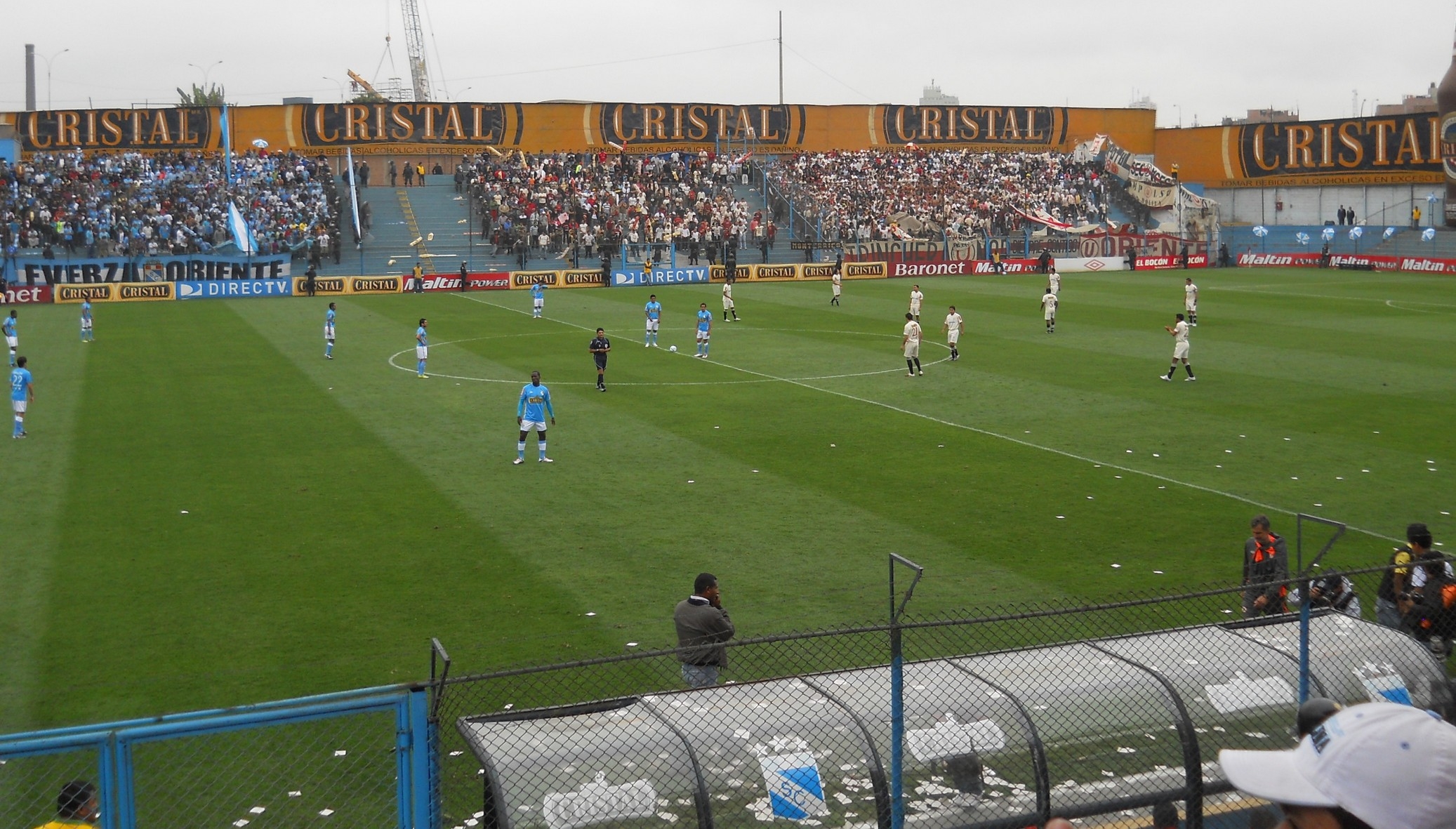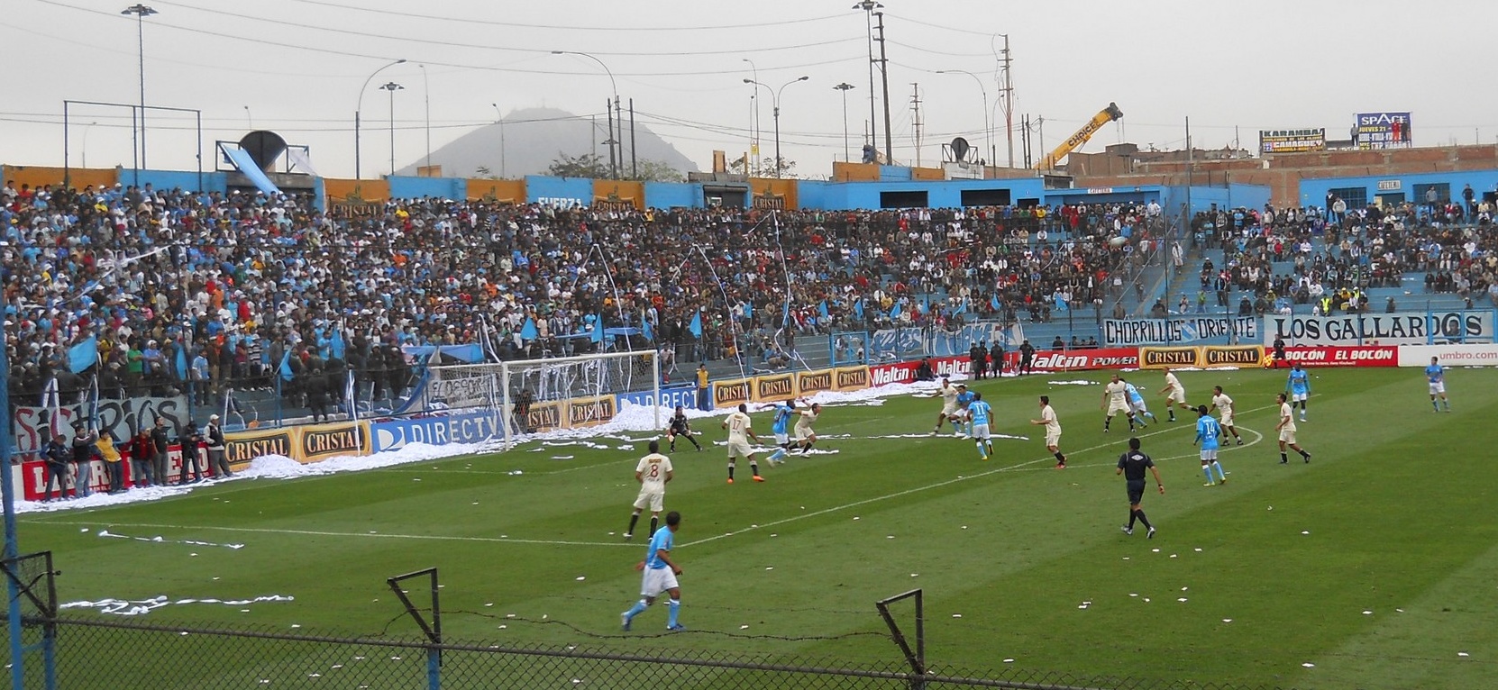 Depois de curtir este passeio, voltei para a Plaza de Armas, peguei um taxi e fui ao estádio San Martin de Porres assistir uma partida de futebol. O jogo era um clássico do futebol peruano: Sporting Cristal x Universitario de Lima. Estádio pequeno, torcidas inflamadas …. fiquei em uma tribunas mais tranquilas mas as torcidas aqui são muito loucas … os caras brigam entre eles mesmo … a cada 10 minutos a Policia entrava no meio da torcida sentando a lenha na galera .. sinistro … No intervalo do jogo a grande atração são as cheerleaders, que dão um belo espetáculo de dança e sensualidade, incendiando o estádio e fazendo a alegria da galera! O jogo em si foi morno e terminou 0 x 0. A saída do estádio foi a parte mais nervosa … tivemos que esperar sair toda as barras e caminhar ate uma avenida para conseguir um táxi … clima tenso e vibe bem pesada .. ir aos estádios aqui é realmente é um programa perigoso ..