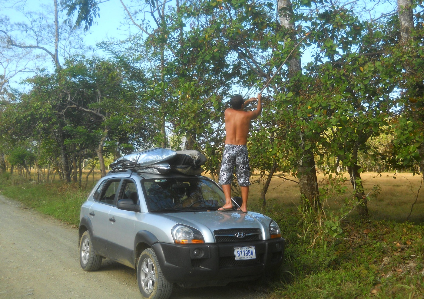 Sexta feira pela manhã vazamos de Pavones. Acordamos cedinho e as ondas tinham baixado total. Voltamos então para a região do pacífico central. No caminho, passamos para conhecer Pilon, que é outro pico que rola umas ondas, mais para dentro da baía de Pavones. Seguimos viagem, pois não havia nada de onda e durante o trajeto fomos parando na beira da estrada e colhendo várias frutas … côcos, cajus, etc..