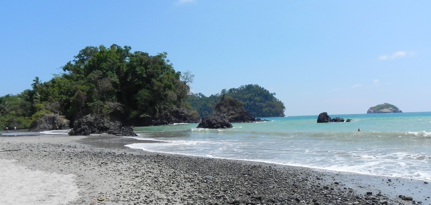 Passamos em Domenical e a ideia era fazer um surfe lá, mas como não tinha nada de onda, apenas demos um role na praia para conhecer e seguimos viagem.