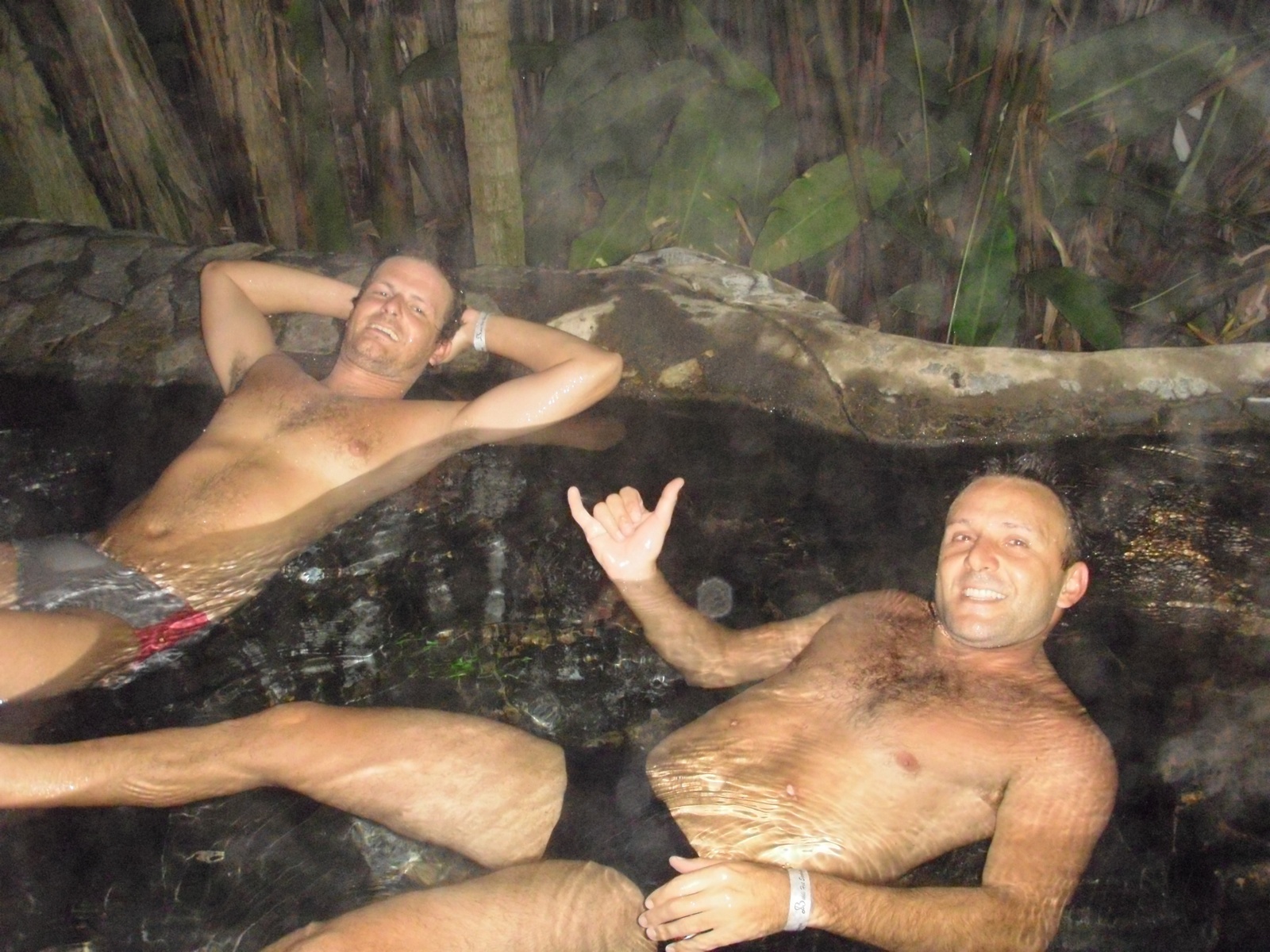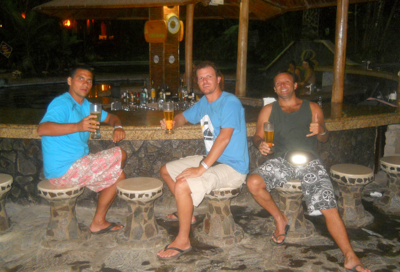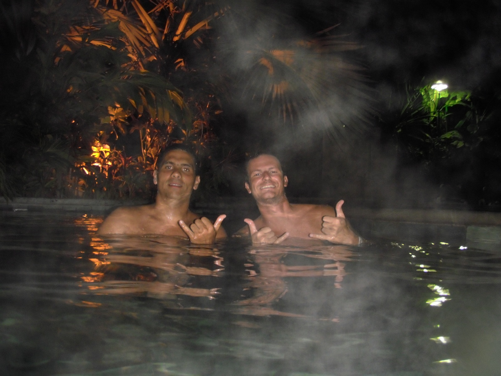 Apreciamos um pouco o visual do vulcão e fomos para as águas termais do Arenal, em um pico chamado BALDI (dica do Bier). Disneylândia! O lugar é um mega parque de águas, com diversas piscinas com água das mais diferentes temperaturas, toboaguas, sauna, etc… irado !! Era justo o que estávamos precisando para dar uma relaxada no corpo, depois de vários dias de surfe direto e uma cansativa viagem. Para fechar o dia com chave de ouro, saboreamos uma janta fantástica no próprio parque.
