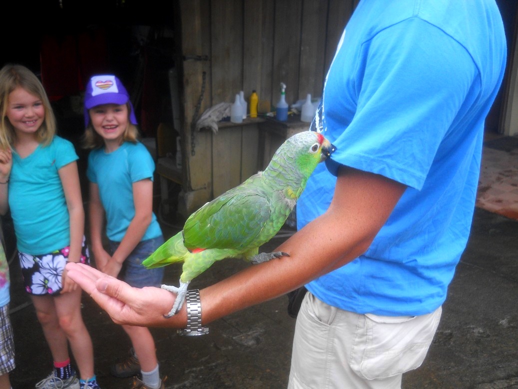 Passamos a noite em um hotel bem legal, ao lado do vulcão e acabamos de tomar um baita desayuno aqui. Fiquei muito amigo dos papagaios do hotel! rsrsrs !