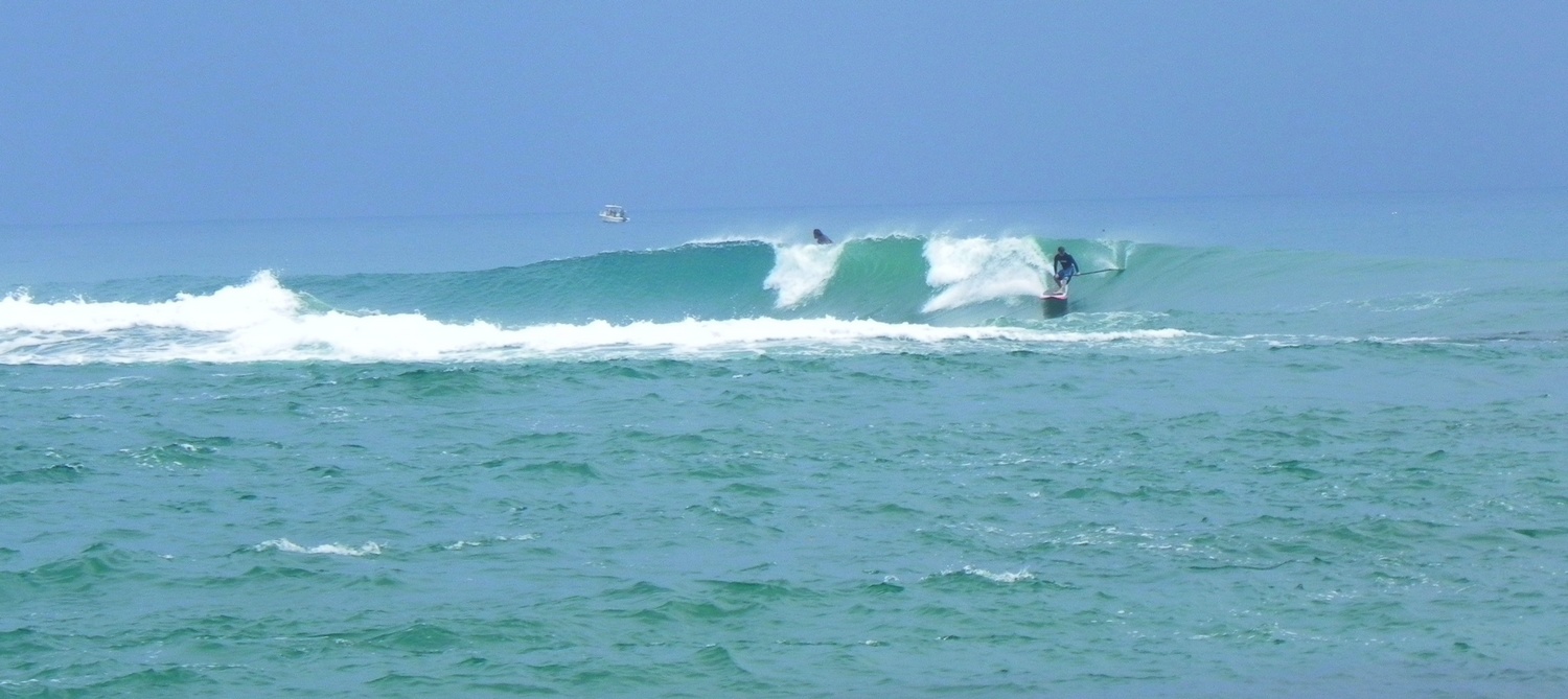 O pico é simplesmente sensacional !!!!! Parece que o cara está na Indonésia … casinhas construídas sobre a beira do mar … pequenas ilhas com coqueiros … a cor e a transparência da água são incríveis … fundo de reef … muitos peixes … vida marinha abundante, etc …