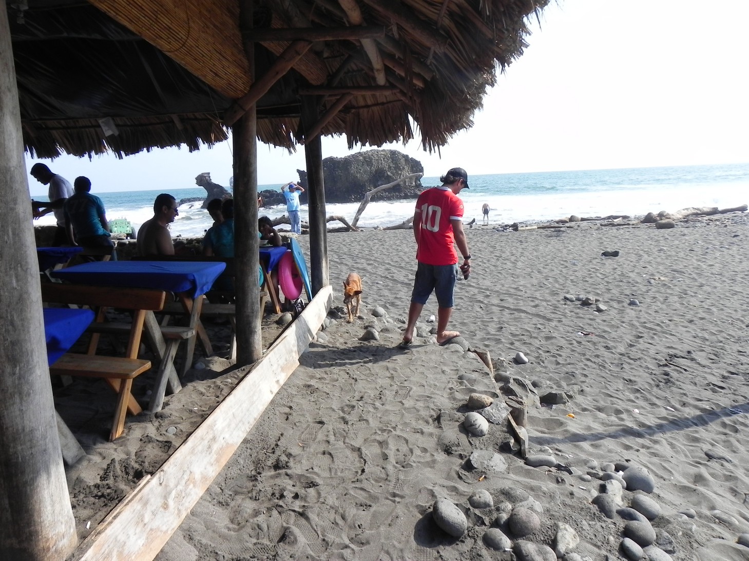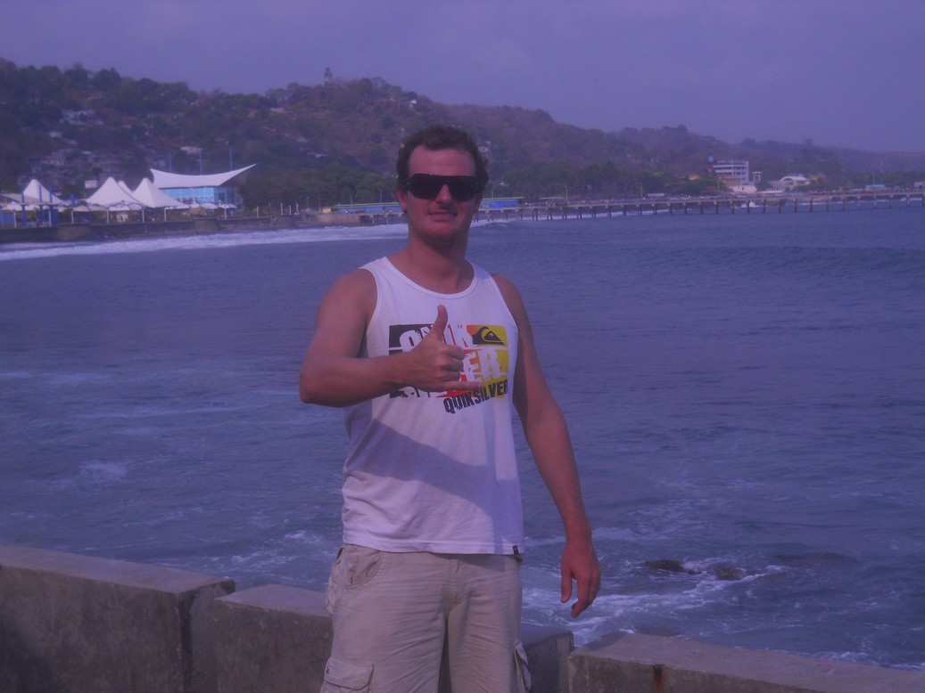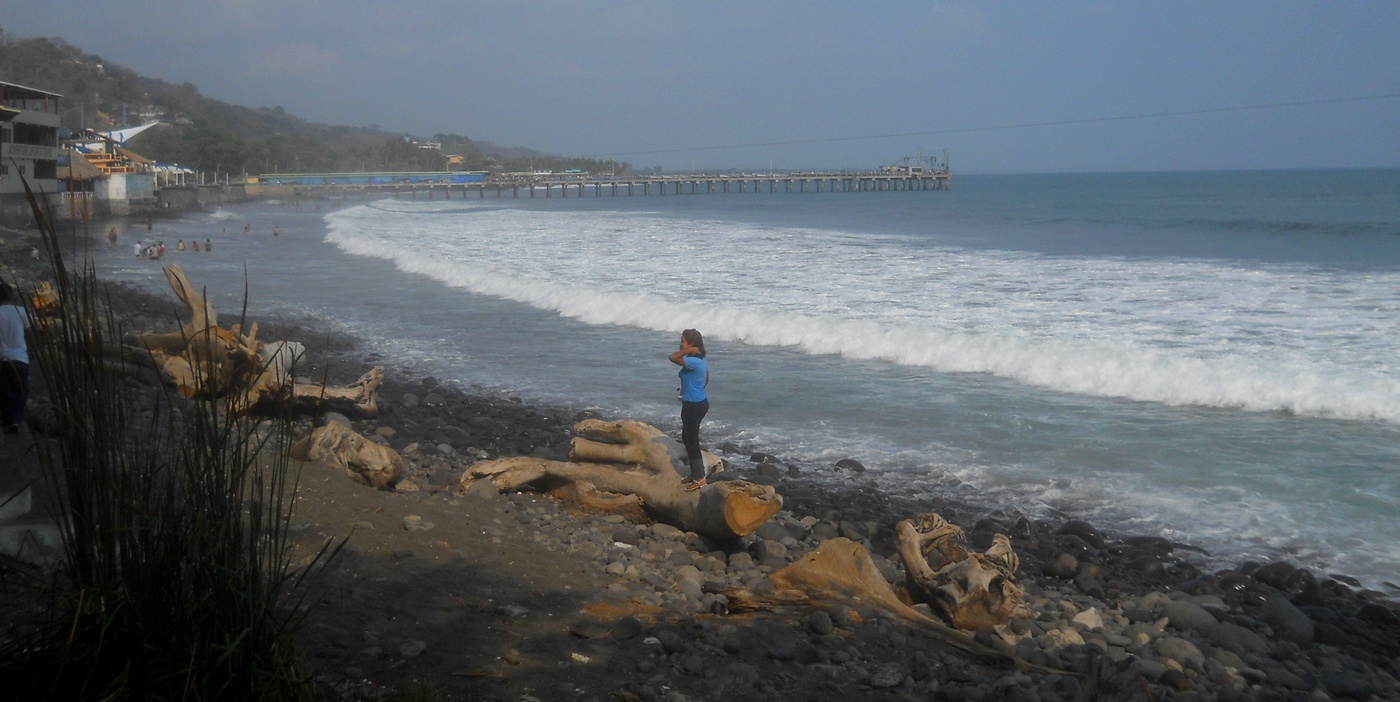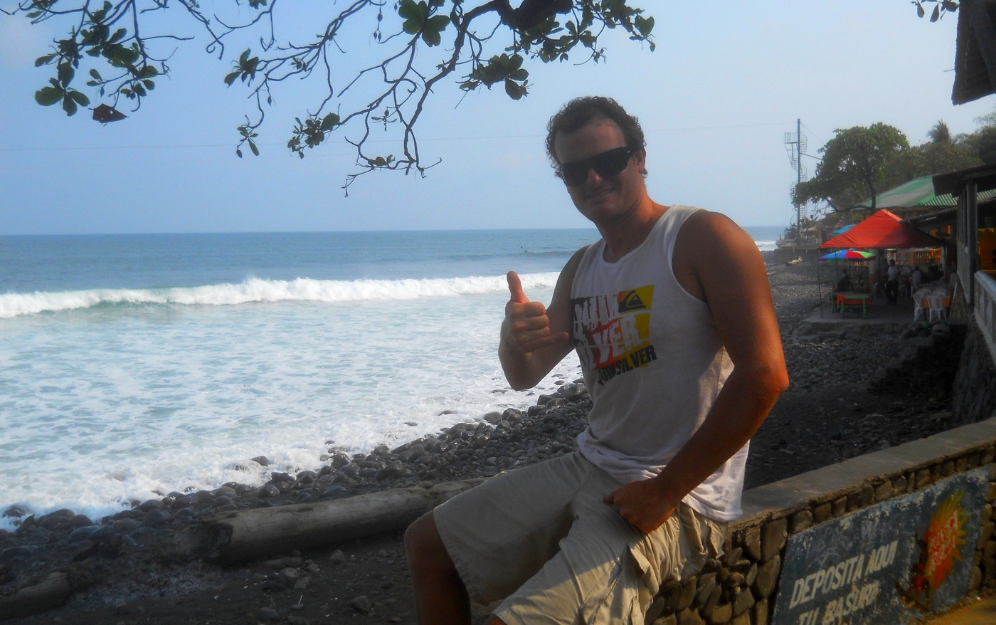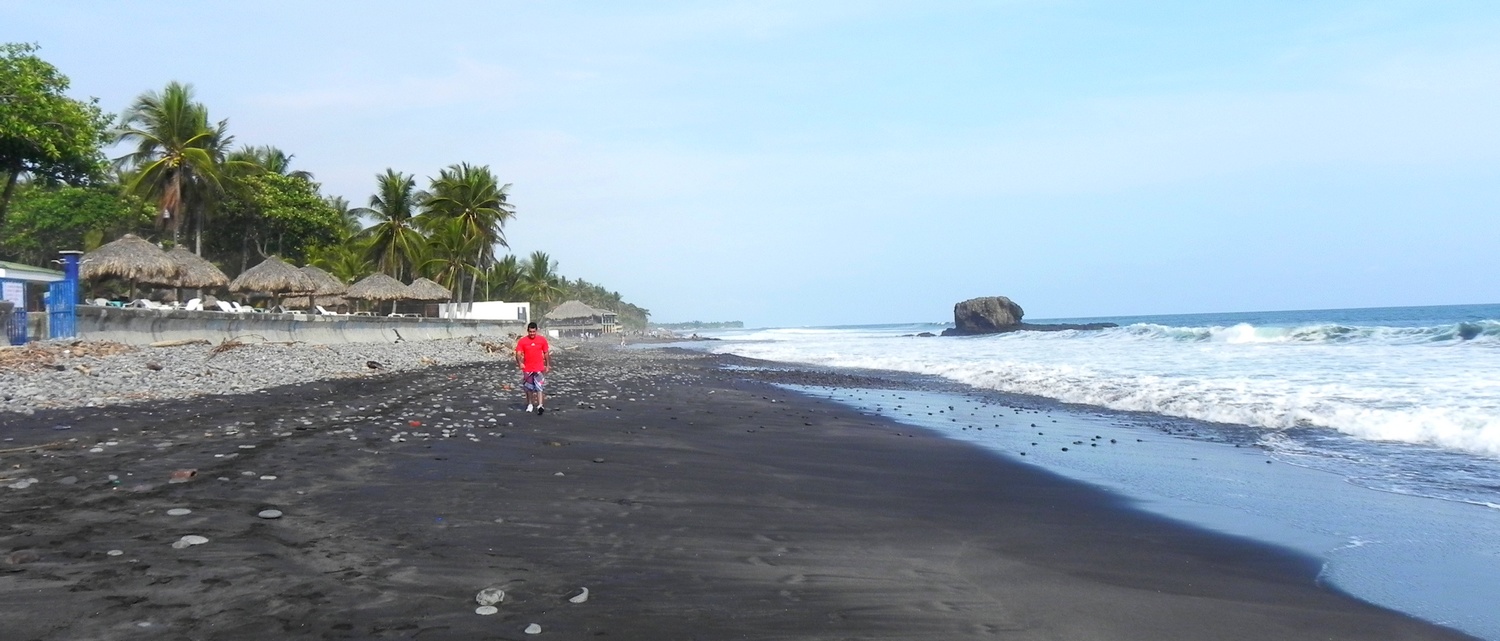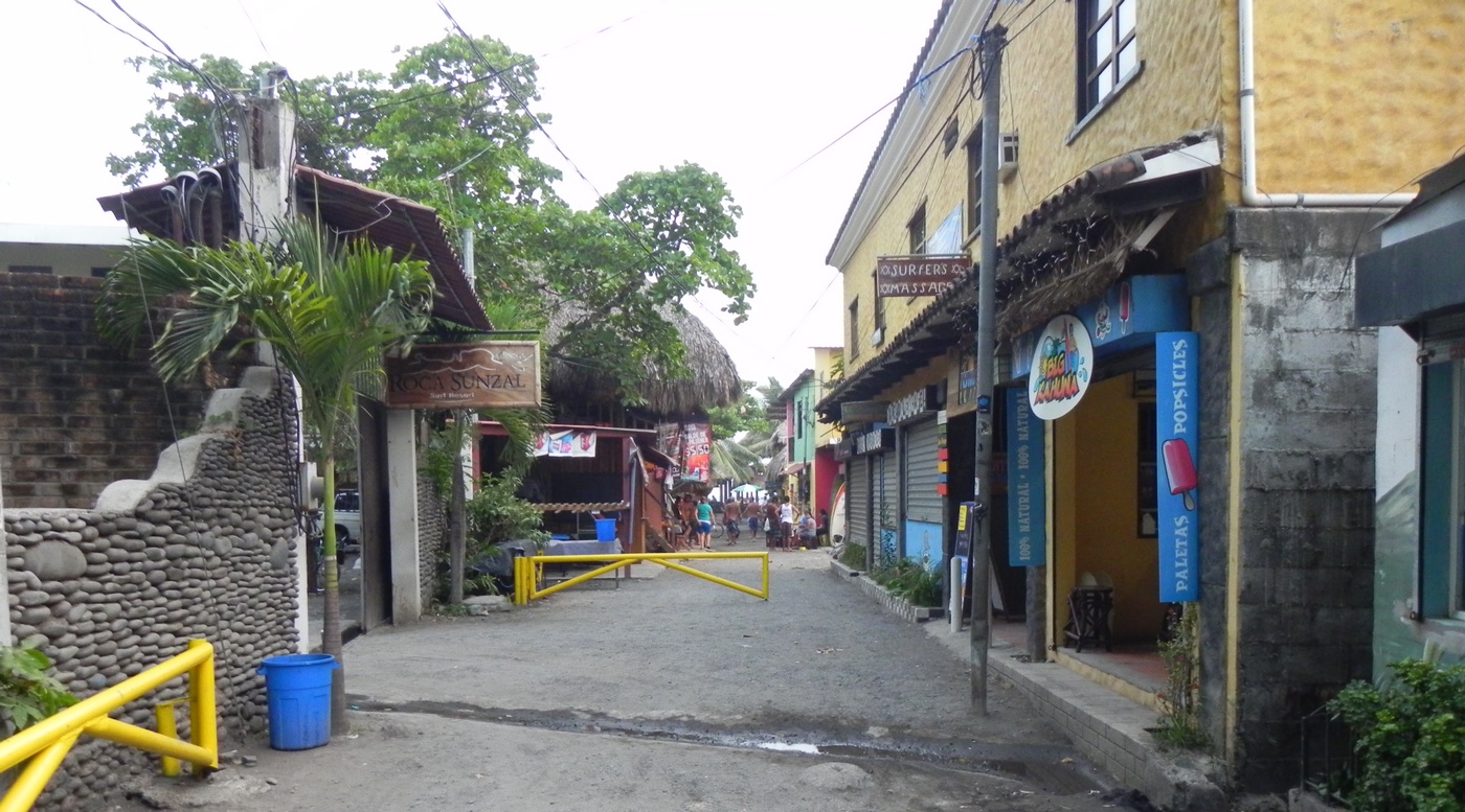 Dia 1 acordamos cedinho, levamos o carro na locadora e fomos para o aeroporto pegar nosso voo para San Salvador. Em pouco mais de 1 hora já estávamos no país. Um funcionário da pousada que iríamos nos hospedar já estava nos esperando lá com a plaquinha com nosso nome e fez nosso transfer até aqui. Estamos na Playa El Sunzal (ou El Tunco) … pico muito astral .. muito roots … Nos hospedamos na Posada Luna, pousadinha boa e barata, a cerca de 200 metros do mar. Galera muito buena onda aqui.