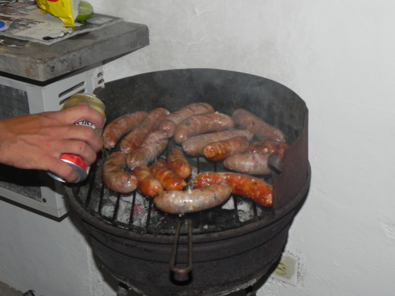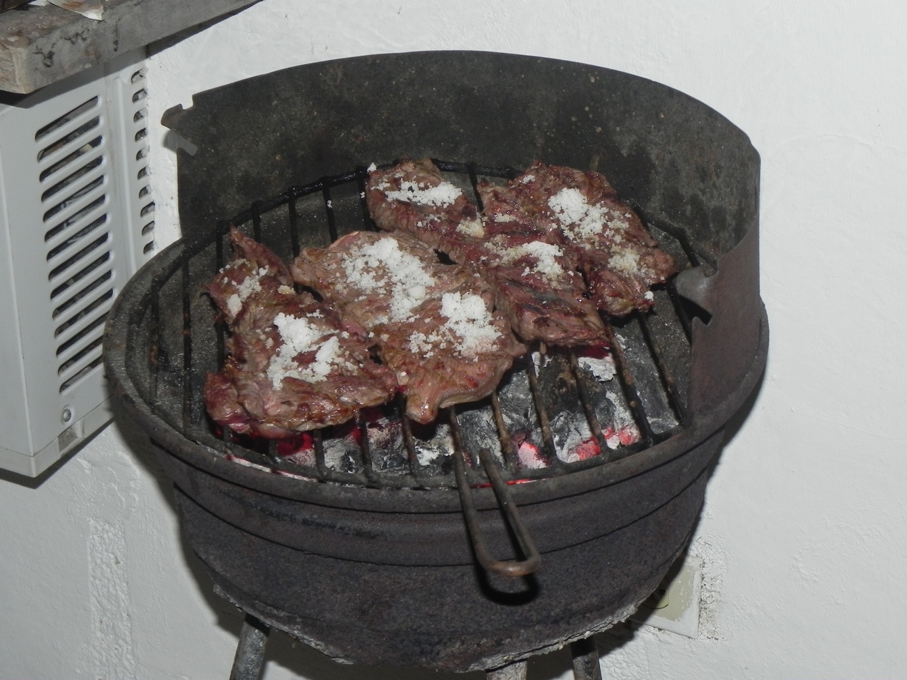 Agora à noite fizemos um churrasco na pousada, junto com dois irmãos paulistas e um surfista Suíço que estão aqui na pousada também. O Moisés, que é o choufer, segurança, faz-tudo aqui da pousada Luna, foi o nosso convidado de honra !