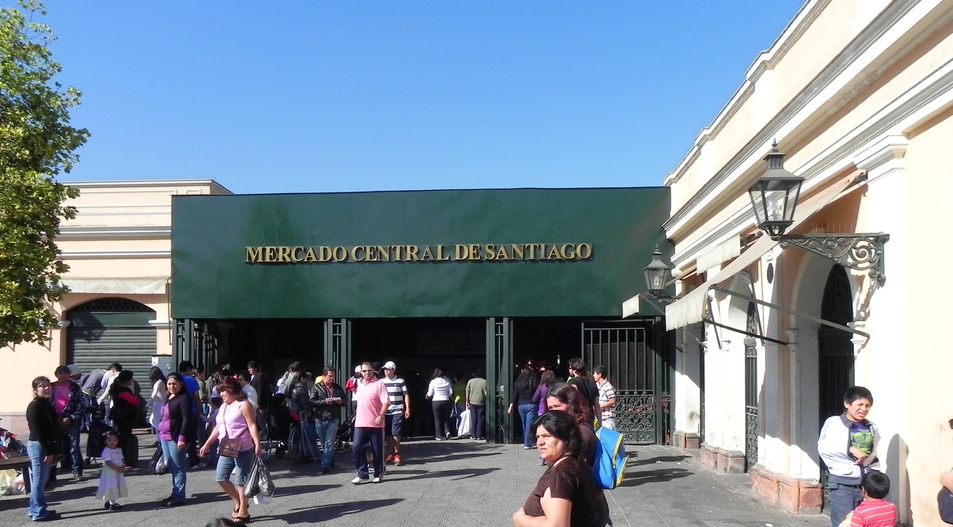 Primeiro eu visitei o Mercado Central de Santiago, que fica a apenas 2 quadras do meu hostel, à beira do Rio Mapocho .. é um local onde se pode comprar e comer todo o tipo de fruto do mar .. há grandes restaurantes, cheios de turistas ..o destaque dos rangos é a Centolla que é um caragueijo gigante .. como recém havia começado meu dia, decidi não encarar .. (além de ser caro prá caramba !)