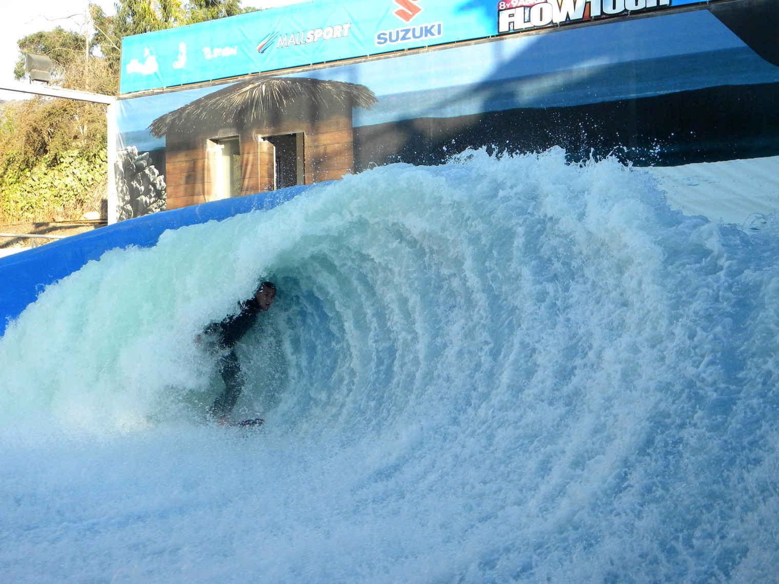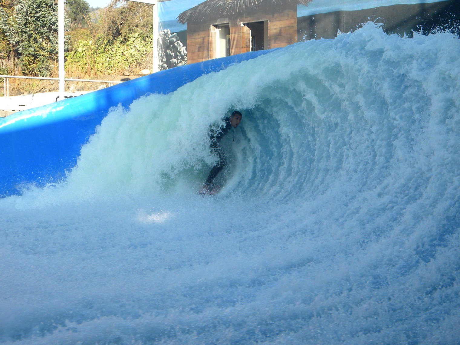 Acabei não surfando a onda porque teria que marcar hora, fazer uma aula, e além disso, não é exatamente uma piscina de onda … é uma estrutura na qual se projeta um forte jato de água formando uma onda com um tubo …. até aí tudo bem, o problema é que o “fundo” é uma espécie de concreto, e a profundidade deve ser de uns 15 cm .. como ali o tombo é certo, fiquei com receio de detonar novamente meu ombro, que recém está novamente em boas condições para surfar ..