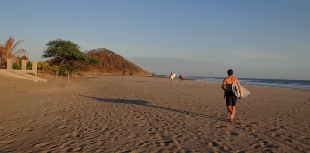 Pegamos já de cara um mar muito bom ! Popoyo com maré cheia, um bom tamanho, abrindo esquerdas e direitas ! Tudo o que queríamos após um dia inteiro viajando ! Ficamos na água até escurecer e saímos do mar com aquela sensação de que “só este primeiro banho já tinha valido a pena toda a viagem”!