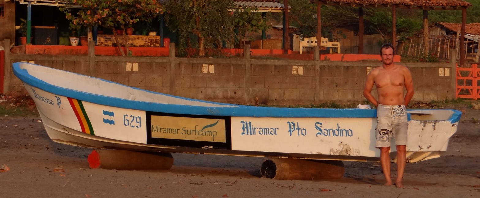 Em Puerto Sandino, rolam 3 picos de onda: Punta Miramar, que é uma esquerda que rola em frente a pousada em que ficamos (Miramar Surfe Camp); The Pipes, que é uma onda cavadona que rola no meio da praia, e a onda de Puerto Sandino, que é uma onda quilométrica na boca da saída do rio/bacia do porto de Puerto Sandino, onde só se chega de barco.
