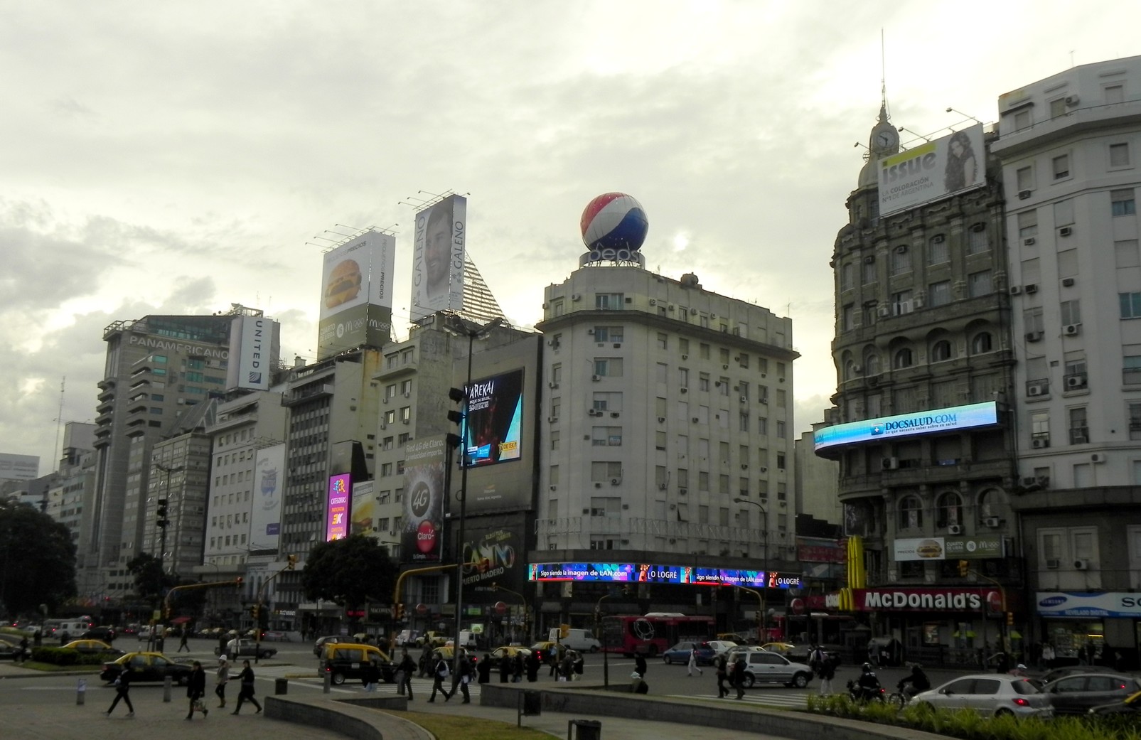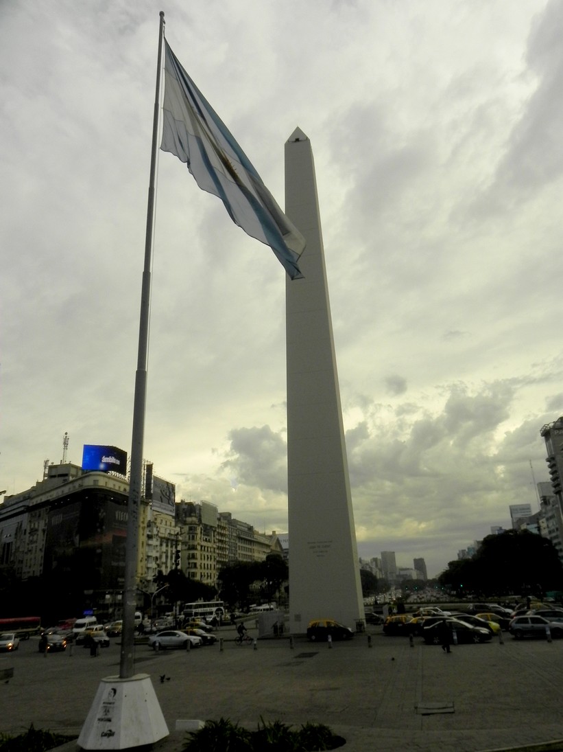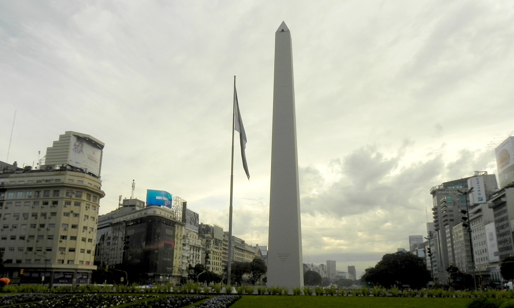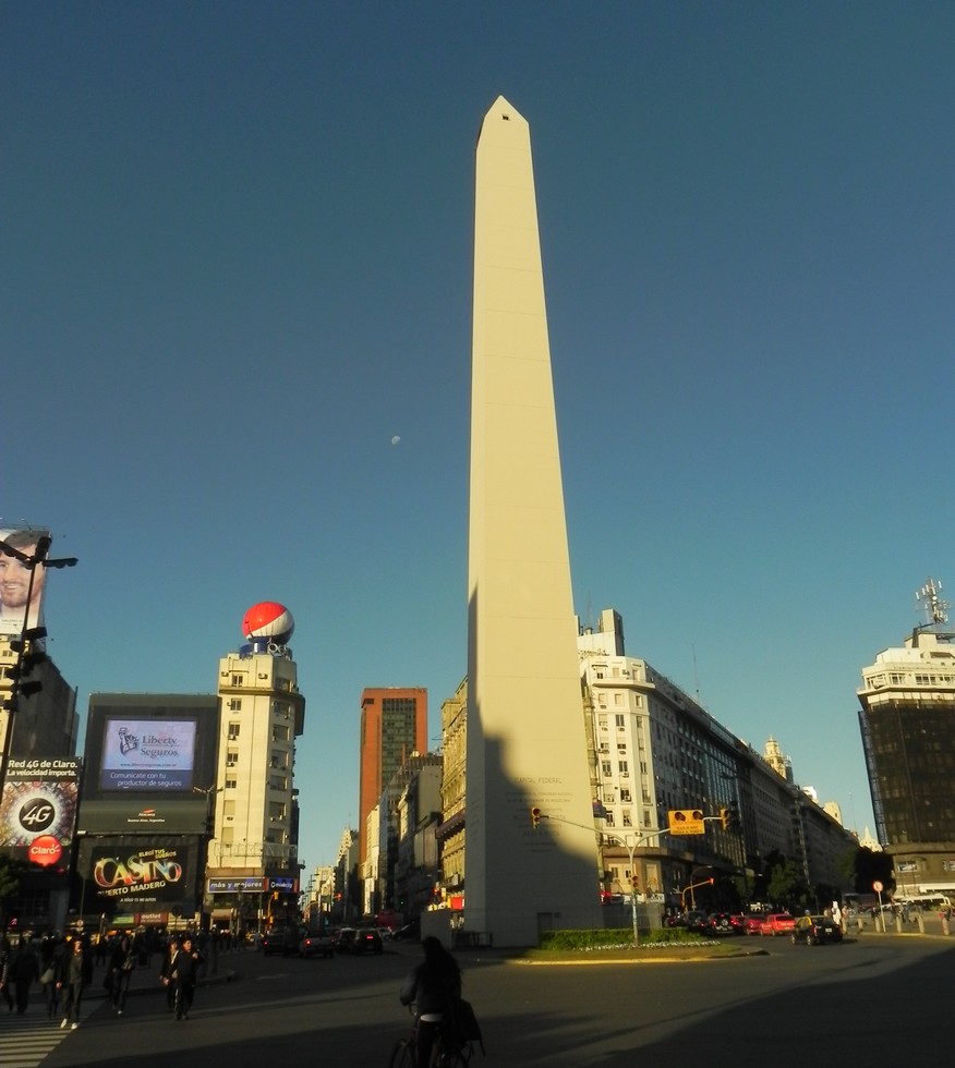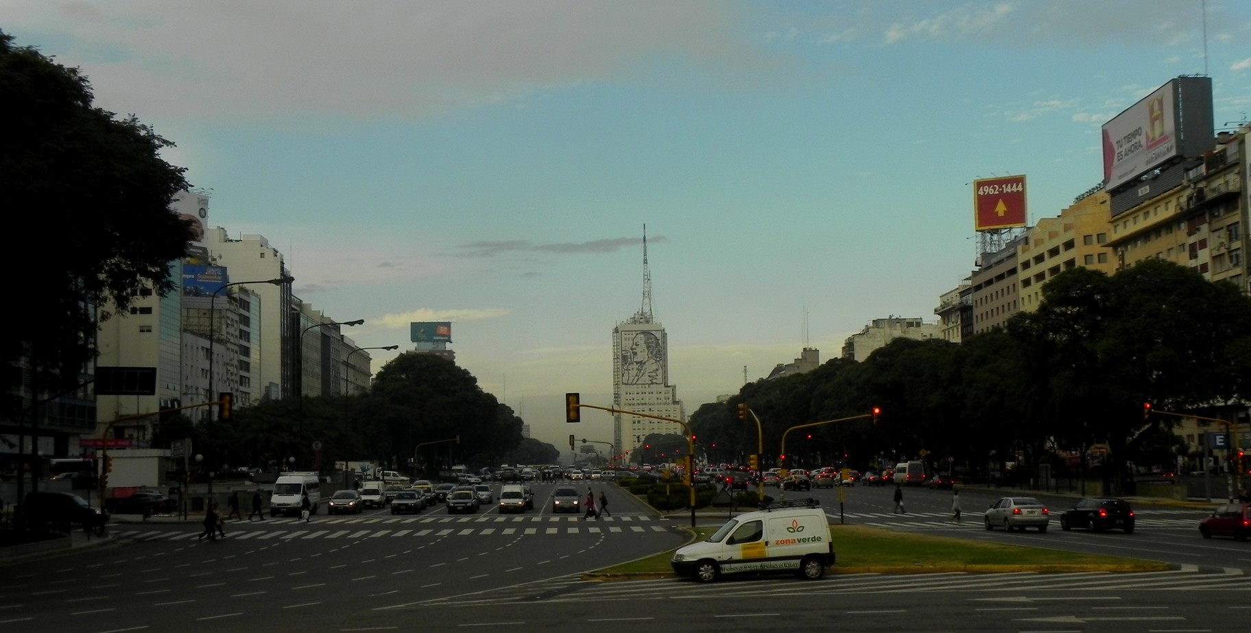 O Obelisco e a Av. Nove de Julio. O Obelisco fica exatamente no cruzamento da Rua Corientes e da Av Nove de Julio. Este monumento é uma das imagens mais emblemáticas da cidade e comemora o quarto centenário da fundação da capita. Foi construído em um tempo recorde de 4 semanas, sobretudo tendo em conta que por debaixo passa o metro. Desde aqui é possível ter uma vista privilegiada da Avenida 9 de Julio, que é a mais larga do mundo (ao menos isso afirmam os porteños!).