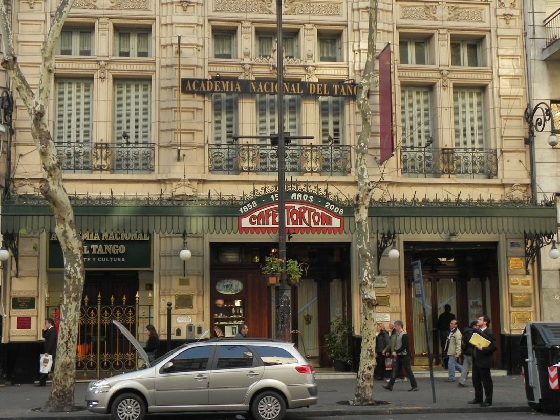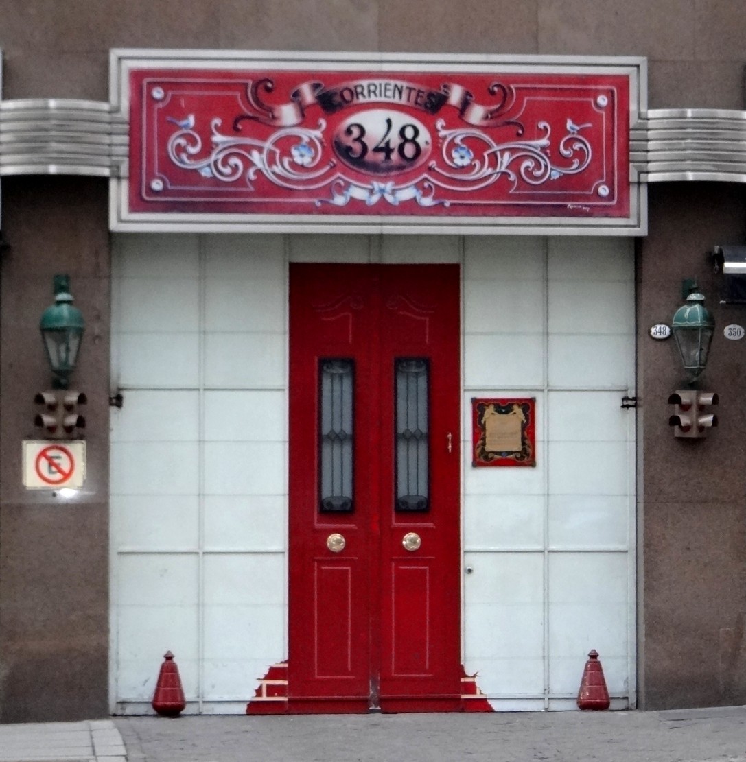 Do Colon, desci toda a Calle Corrientes até o Luna Park. Passei pelo prédio comercial localizado no nro 348 da Corrientes, que é cantado no primeiro verso do tango de 1925 “A media luz”: “Corrientes tres cuatro ocho, / segundo piso, ascensor. / No hay porteros ni vecinos, / adentro, cocktail y amor…” Em frente ao prédio há uma placa comemorativa.