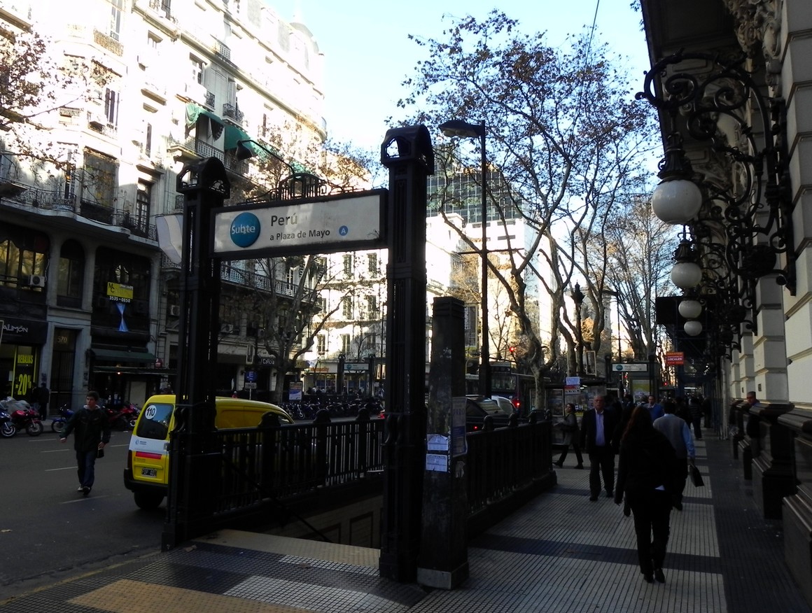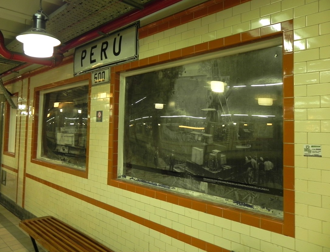 Um pouco mais adiante, cheguei à Estação Peru de Subterrâneo (Metro). Primeira linha de metro da America do Sul foi inaugurada em 1913 e até hoje mantém características arquitetônicas e cartazes publicitários da época. Os trens são de madeira e as portas fecham manualmente .. uma viagem ao passado..