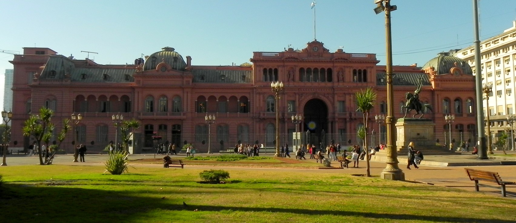 A Casa Rosada tem sido a sede do poder executivo desde 1873. Segundo alguns, a cor rosa foi escolhida para mostrar a unidade política entre o vermelho dos federais e o celeste dos unitários. Segundo outros, ganhou a cor em razão da mistura de cal e sangue de boi usada para impermeabilizar as paredes do antigo forte no qual foi erguida. A famosa sacada para a Plaza de Mayo foi palco para diversos discursos inflamados de Evita Peron e também onde a seleção argentina comemorou a copa de 1986.