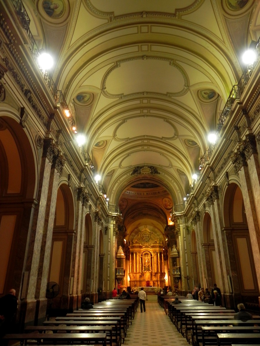 A catedral de BsAs se encontra onde à construíram os colonizadores espanhóis no ano de 1850, a direita da Plaza de Mayo. A chama eterna acesa em sua fachada recorda o General Jose de San Martin, herói da independência. A cúpula é do renascimento italiano, e as doze colunas representam os apostoles. As distintas origens que compõe os elementos da catedral são mostras claras das diversas procedências que tiveram a população da argentina.