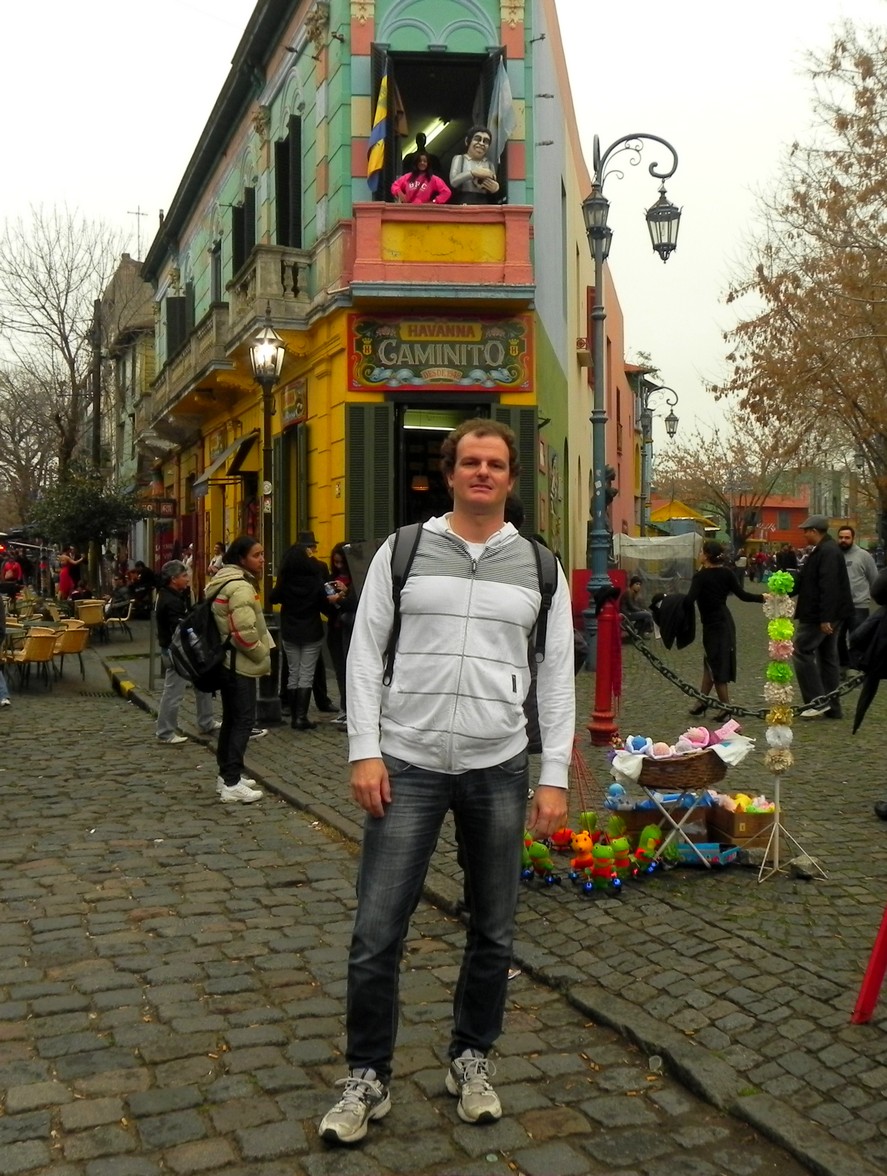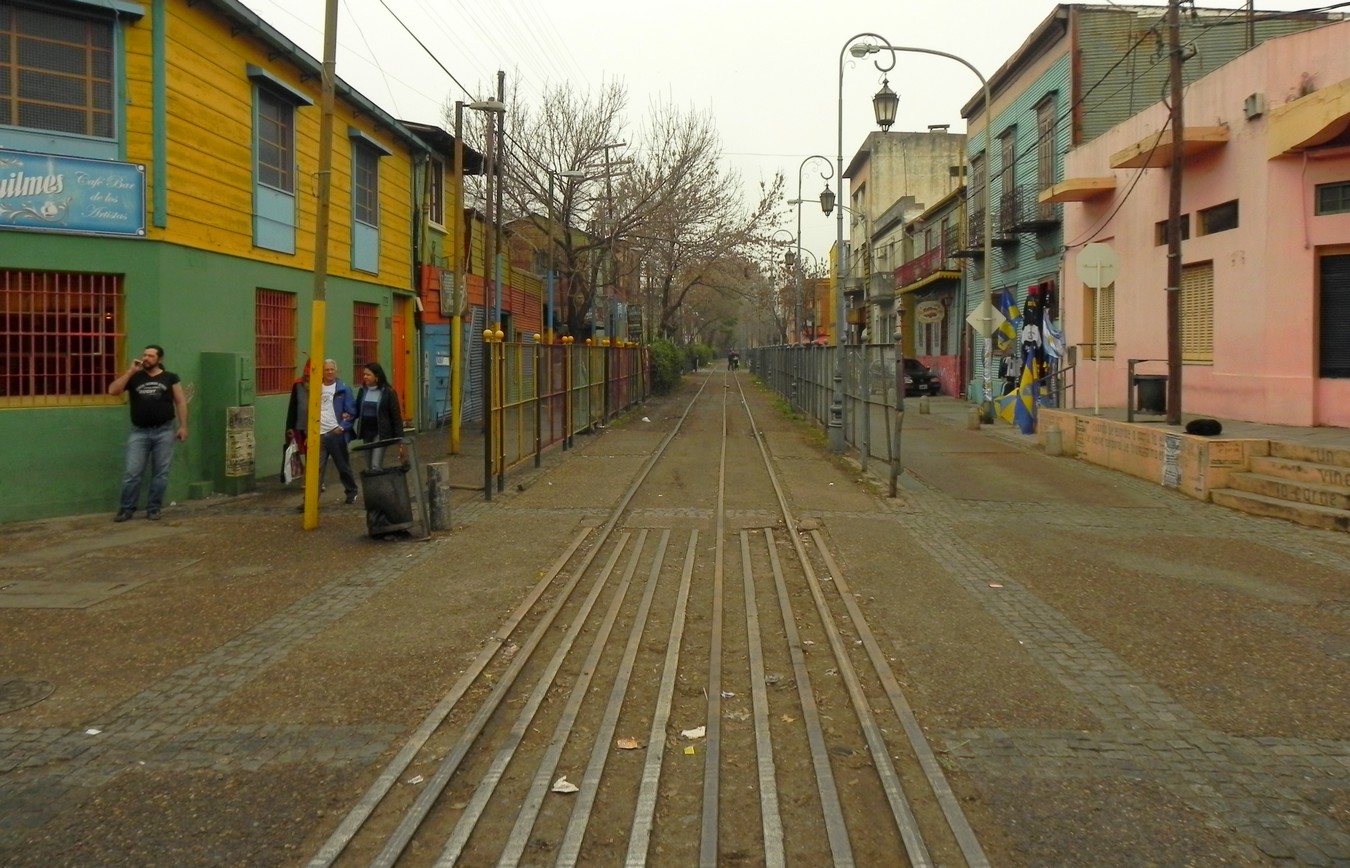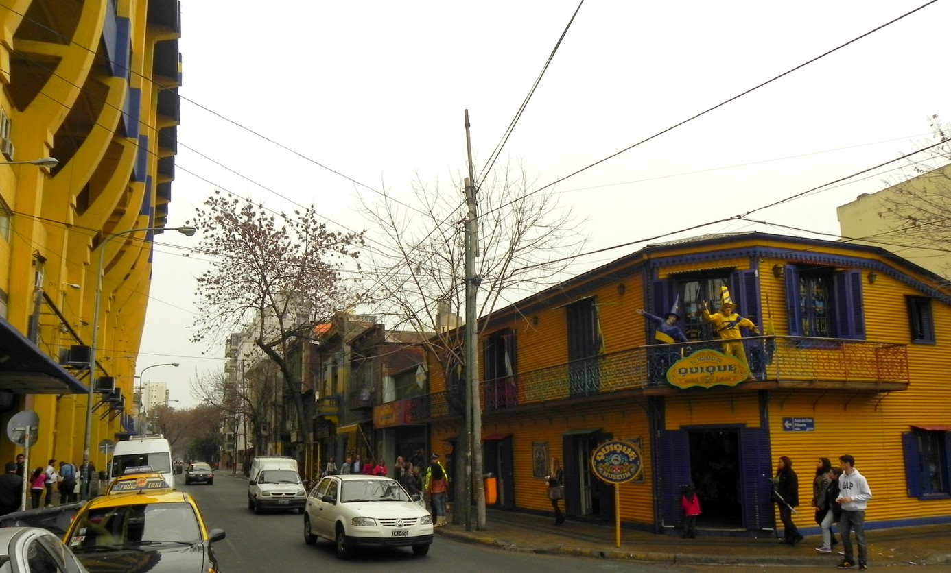 De San Telmo, peguei um táxi e pedi que me deixasse no Caminito, no Bairro La Boca. Adentrando ao bairro, o taxista, que era muito gente fina, me chamou a atenção para algo peculiar da área … a maioria das calçada e das casas eram construídas a mais de um metro de altura em relação ao nível das ruas. Realmente parecia bastante estranho, pois os carros quando estacionavam nas ruas, os caroneiros não tinham como sair pela sua porta, tendo que sair pelo lado do motorista, uma vez que a calçada era praticamente um muro ao lado dos carros. O taxista então explicou, que os moradores começaram a elevar as calçadas e as casas por causa de um fenômeno natural que costumava ocorrer na área.. Quando ocorriam as “sudestadas” no Rio da Plata (fortes correntes e ventos de sudeste), o mesmo elevava-se de nível e impedia que o Rio Riachuelo desaguasse nele. Por fim, o Rio Riachuelo acabava transbordando e alagando todo o bairro. Devido a isto também os torcedores do Boca Juniors são chamados “carinhosamente” de “bosteros” pois as casas do bairro eram invadidas não só pelas águas do Riachuelo, mas também pelas bostas de cavalo que as águas do rio espalhava … Hoje em dia, este problema não ocorre mais no bairro, devido a obras de contenção que foram realizadas nas margens do Riachuelo e Rio da Plata.