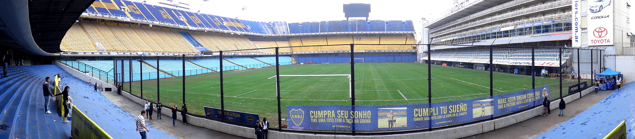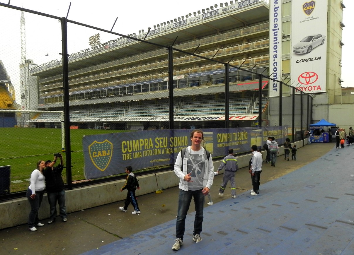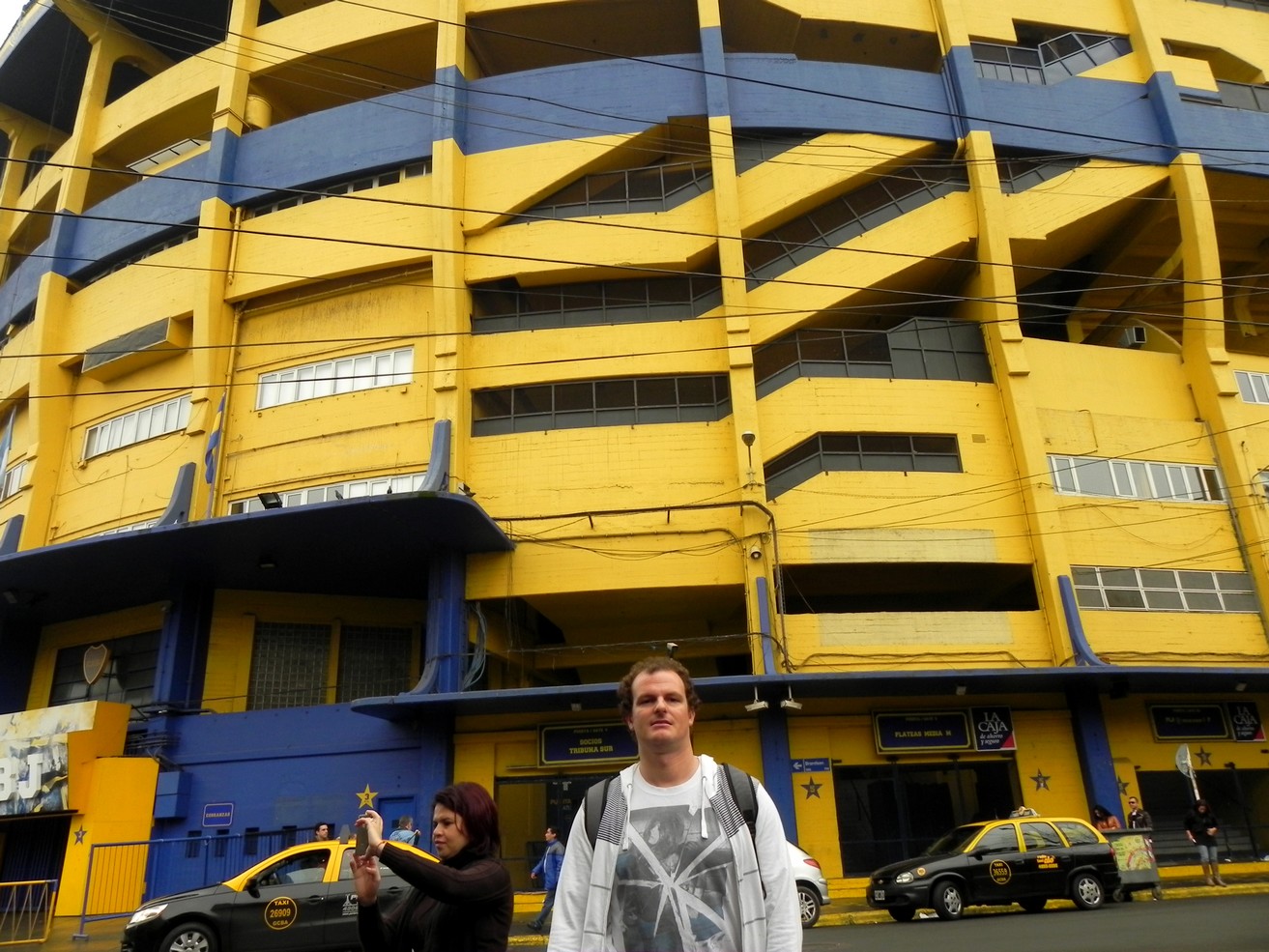 Caminhando mais algumas quadras do Caminito cheguei a mítica La Bombonera, o estádio do Boca Junior. Construído em 1940 o estádio é conhecido como La Bombonera devido ao seu formato semelhante a uma caixa de bombons. Com capacidade para 52 mil pessoas, é uma visita indispensável para quem gosta de futebol. A ideia original do engenheiro José Luis Delpini era erguer um estádio com o dobro da capacidade da que tem o atual. Mas a construção, que iria ultrapassar a Calle Dr. Enrique Del Valle Iberlucea, não foi aprovada pela prefeitura. A falta de espaço obrigou o projeto a crescer para cima: foram concebidos os três anéis de arquibancadas.