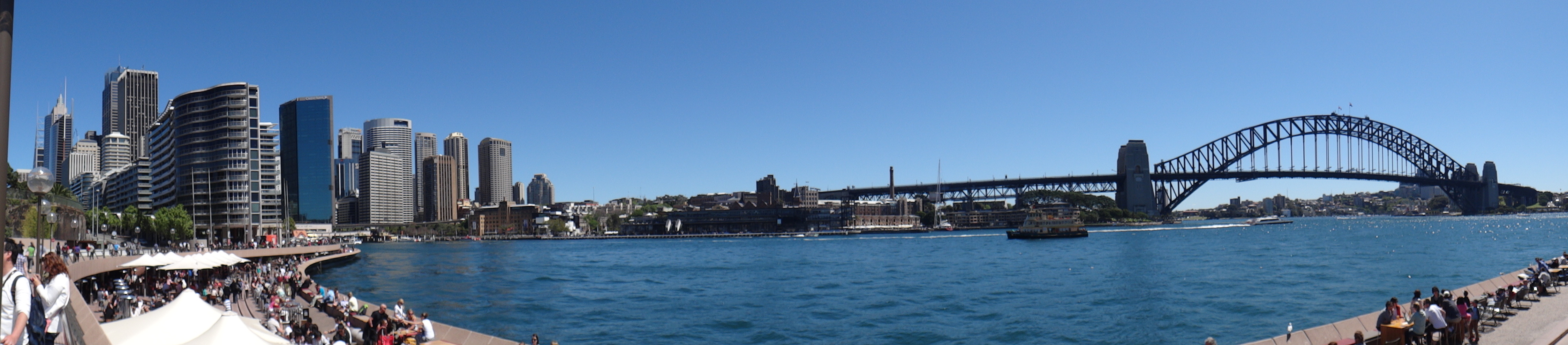 Segui até o Opera House, depois passei pelo Circular Quay, indo até o bairro The Rocks, ao pé da Harbour Bridge.