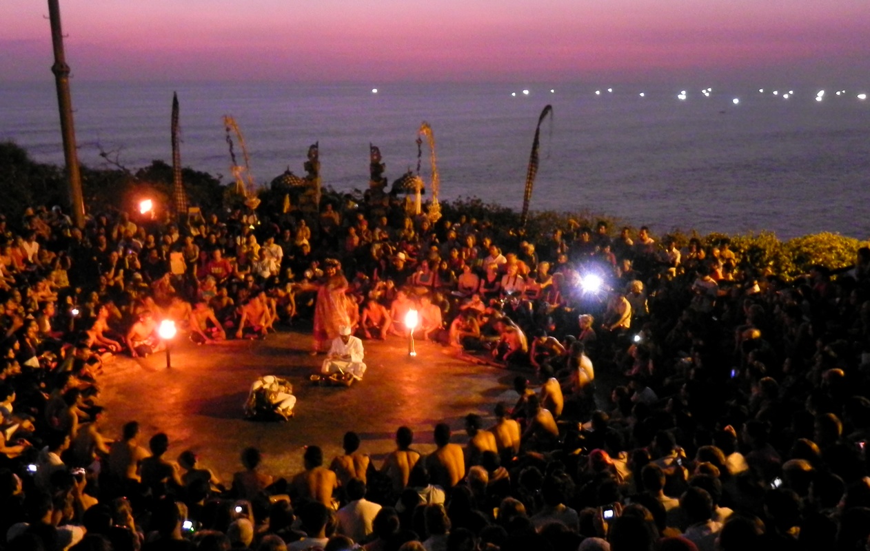 A apresentação é realizada no entardecer à beira do cliff, presenteando a platéia – além do espetáculo de dança e som – com um belo visual do cair da noite em Uluwatu.