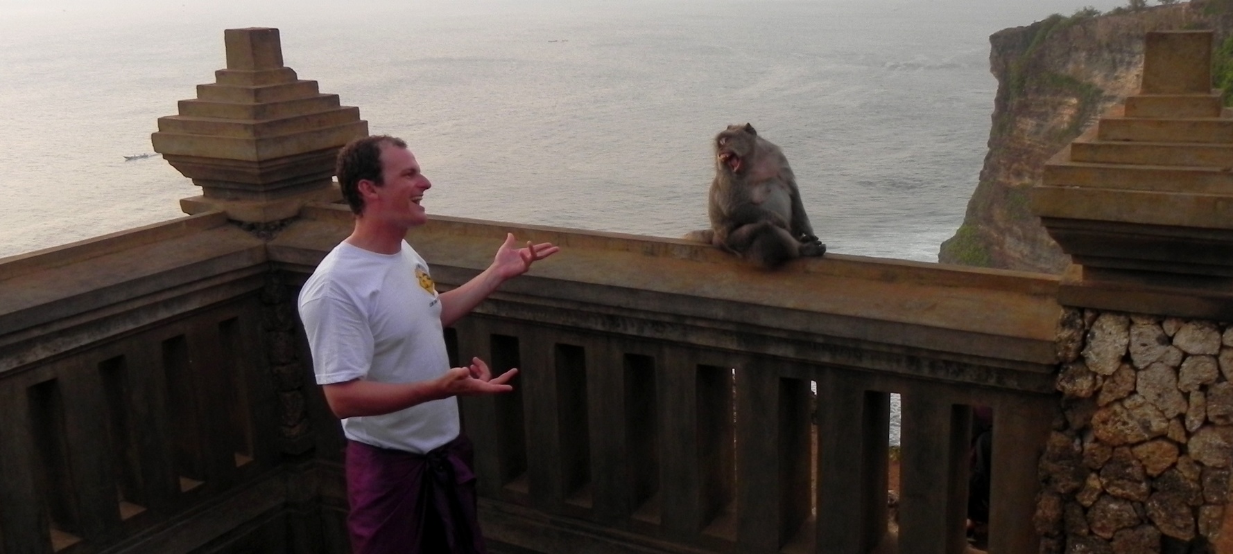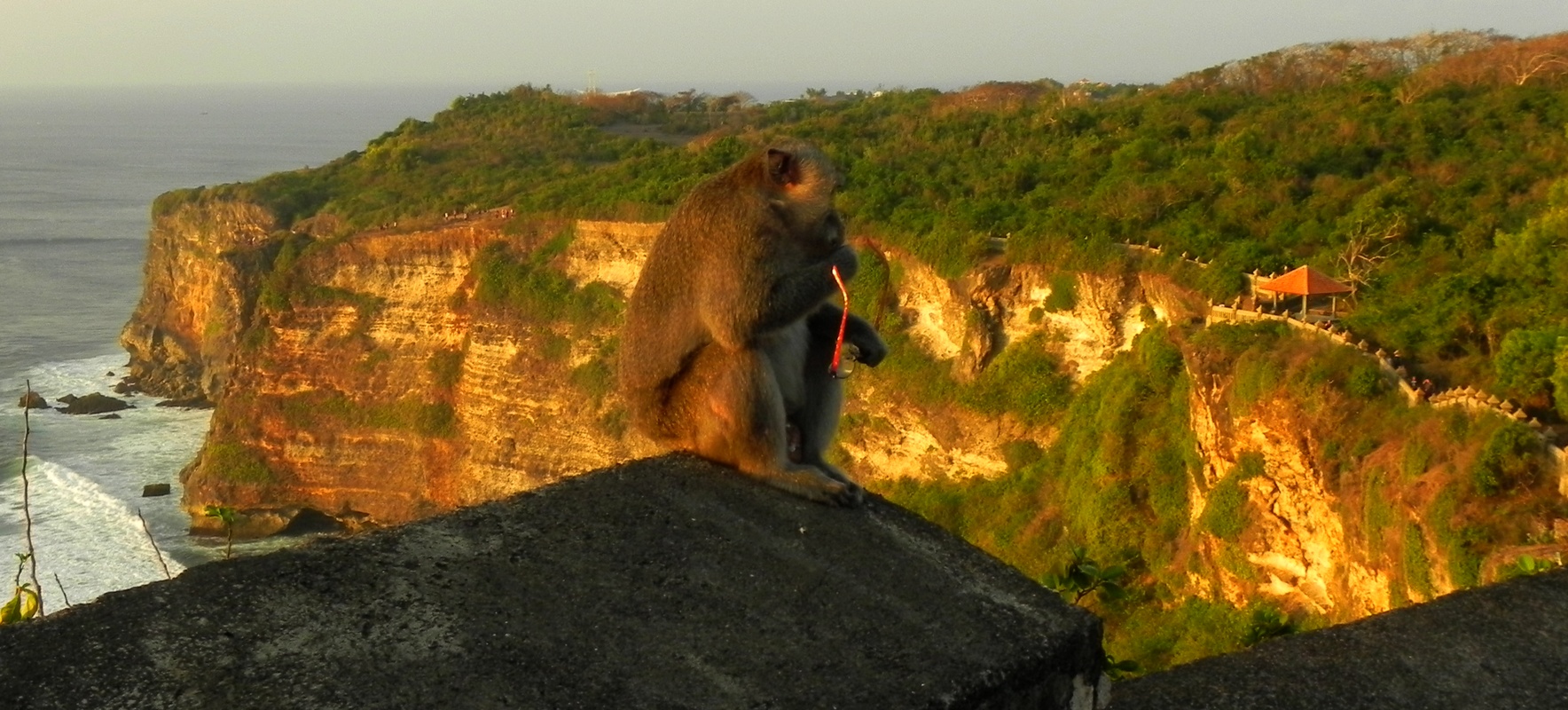 No final da tarde, fomos para o Templo dos Macacos, aqui em Uluwatu. Ficamos lá até o anoitecer nos divertindo com a macacada e curtimos um por-do-sol irado !