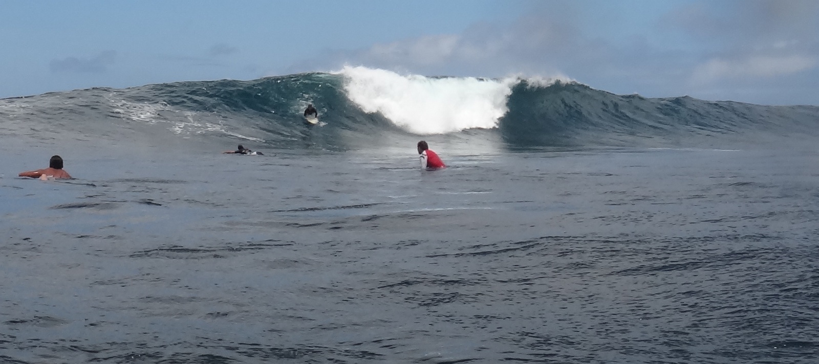 Para chegar no pico, entra remando na piscina de La Loberia, vai por um canal costeando as rochas e logo está no pico.