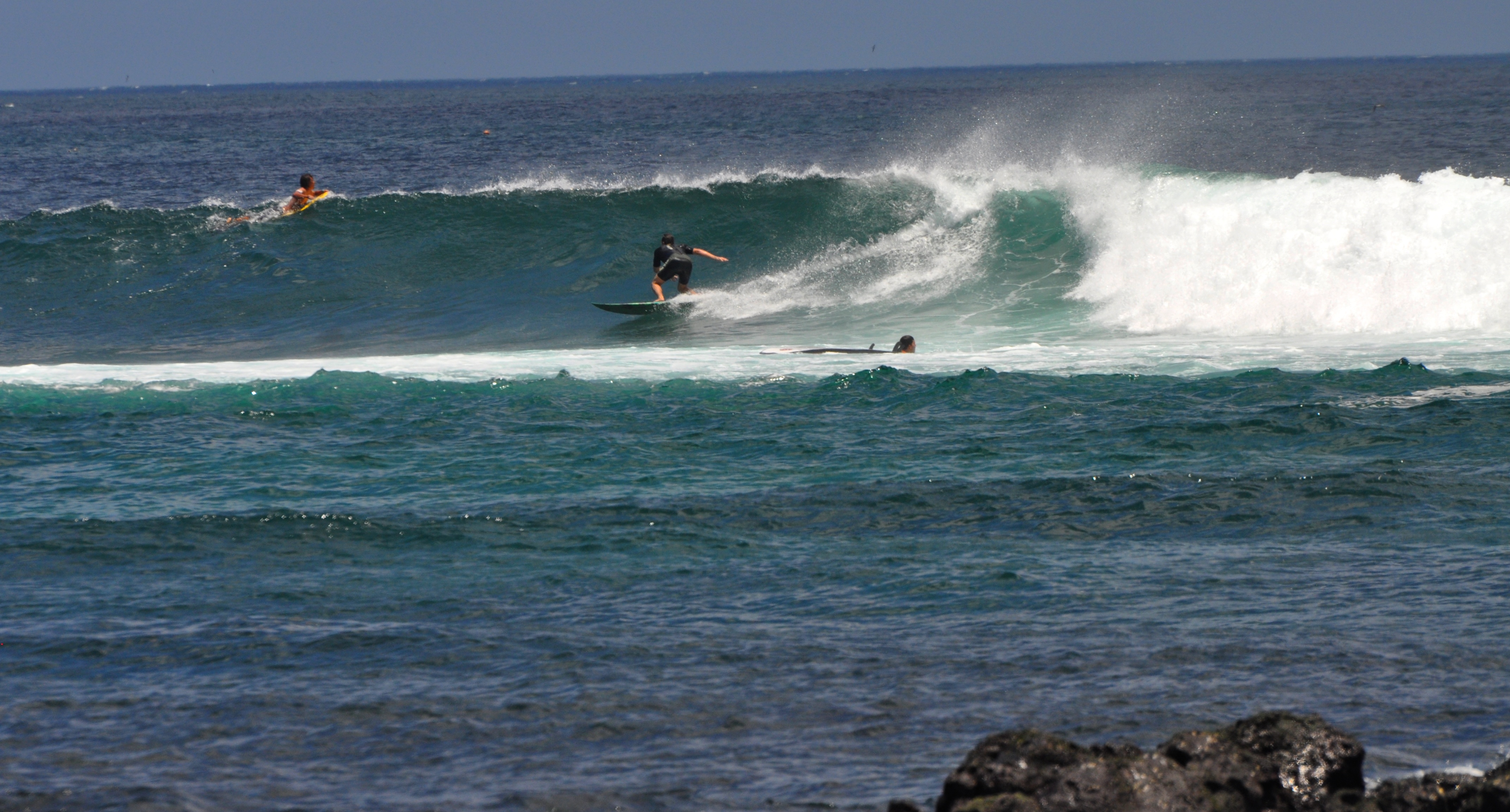 Chegamos no pico e as séries estavam bombando. Pegamos algumas ondas muito boas nas primeiras séries que vieram e, de repente, parece que alguém apertou o botão desligar, porque parou tudo e não veio quase mais nada …impressionante ! Ficamos mais uma hora nos mar e pegamos uma que outra ondinha …