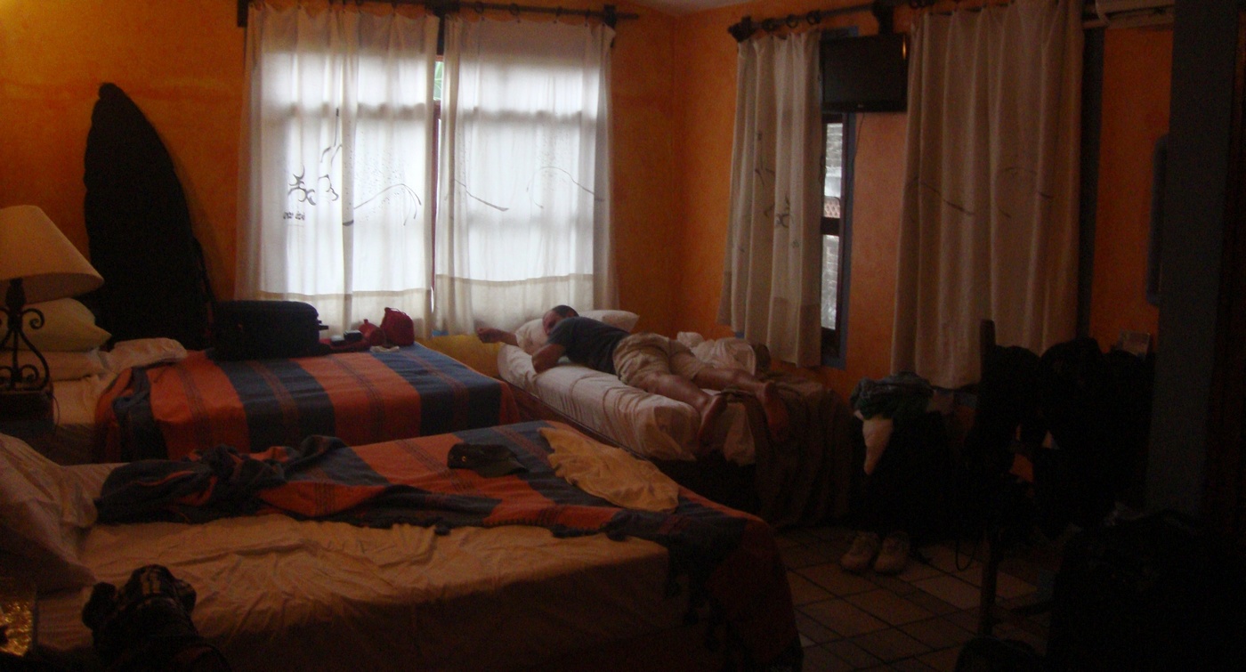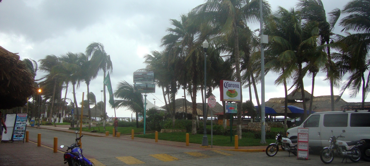 Chegamos em Puerto quase 2 hrs da tarde e nos hospedamos novamente no Hotel Arco-Íris. Tínhamos a expectativa de darmos um banho em Zicatela neste dia, porém com os fortes ventos e chuvas da tormenta, o mar estava totalmente revolto e não havia ninguém surfando. Acabamos tirando o dia para descansar e ficamos torcendo que chovesse tudo o que tinha para chover naquele dia, a fim de que no dia seguinte o tempo estivesse mais limpo e não impedisse a decolagem do nosso vôo de retorno para a Cidade do México.