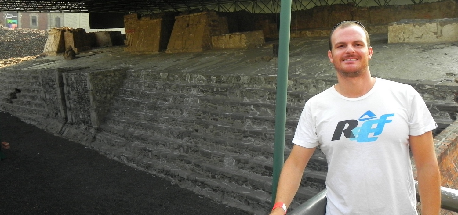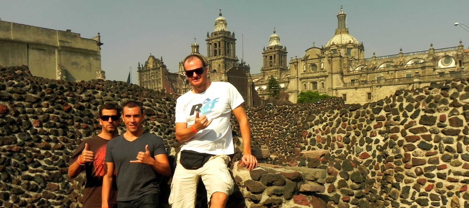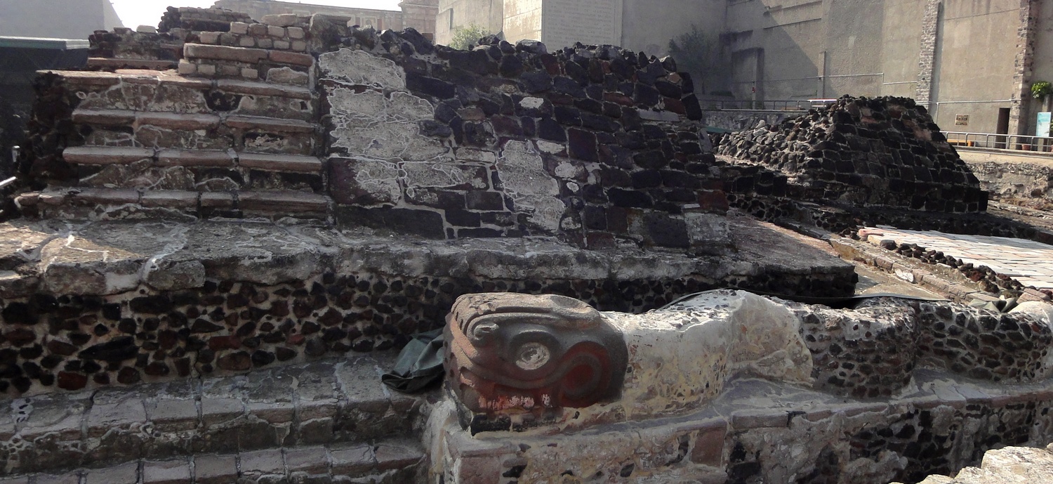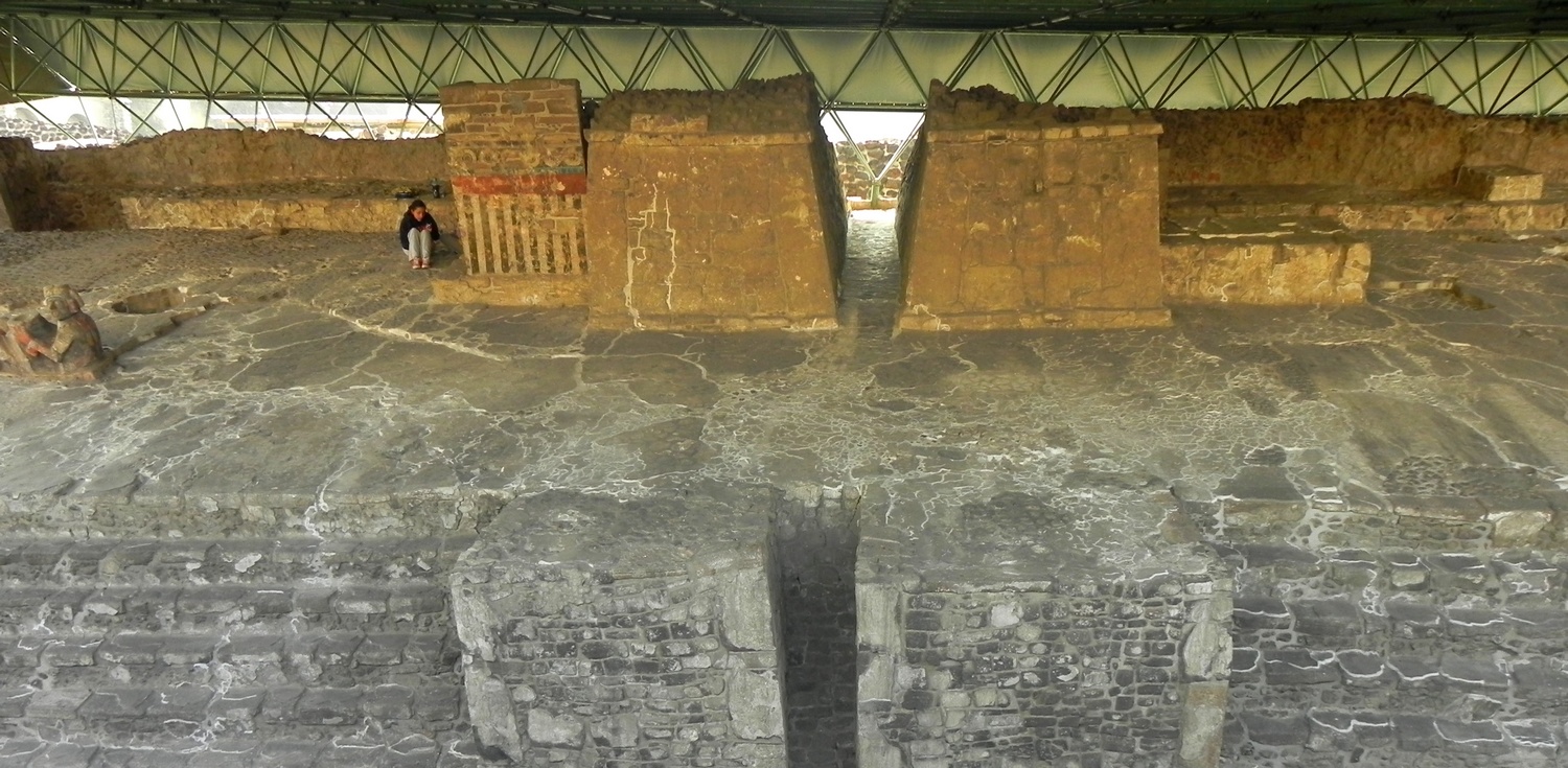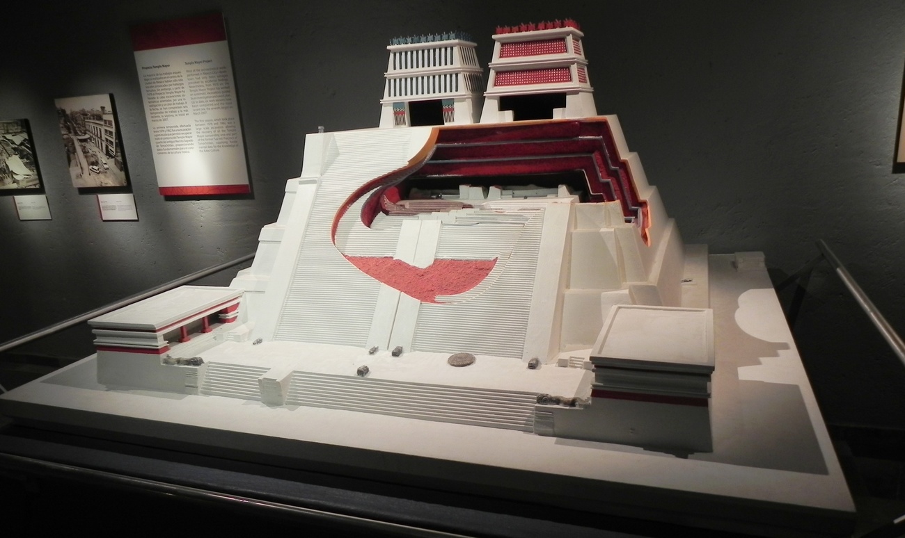 No dia seguinte, após o desayuno, fomos visitar o sitio arqueológico e o museu do Templo Mayor, localizados a noroeste do Zócalo, quase ao lado da Catedral Metropolitana. Este templo era um dos principais templos dos astecas da sua capital Tenochtitlan (atual Cidade do México) e foi destruído pelos espanhóis em 1521. O templo estava dedicado a dois deuses em simultâneo, Huitzilopochtli, deus da guerra e Tlaloc, deus da chuva e da agricultura, cada um deles com um santuário no topo da pirâmide e cada um destes com a sua própria escadaria. Medindo aproximadamente 100 por 80 metros na base, o templo dominava o Recinto Sagrado. A construção do primeiro templo teve início algum tempo depois de 1325, tendo sido reconstruído posteriormente por seis vezes. Após a destruição de Tenochtitlan, o Templo Mayor, tal como a maior parte da cidade azteca, foi desmantelado e depois coberto pela nova cidade colonial espanhola. A localização exata do templo foi esquecida, e pensava-se que a localização do templo fosse sob a Catedral Metropolitana.