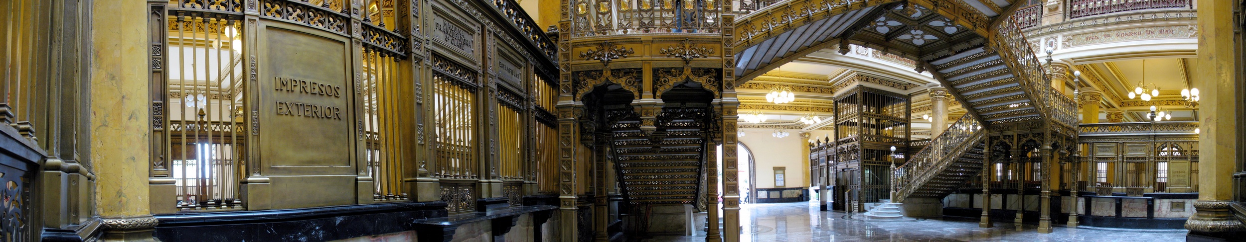 Depois de percorrermos os bosques, visitarmos o Castelo de Chapultepec e o Museu de Antropologia, voltamos para o centro histórico e visitamos o Palácio Postal, que é um dos edifícios mais emblemáticos do Centro Histórico da Cidade do México. Esta imponente obra de arquitetura eclética foi levantada no começo do século XX como um dos símbolos do desenvolvimento e progresso que os mexicanos haviam alcançado naquele momento. Na década de 50 o palácio foi modificado para ligá-lo ao prédio do Banco do México, destruindo muitos dos elementos de decoração que havia originalmente. Porém, no terremoto de 1985, o prédio foi severamente danificado, o que resultou em um grande trabalho de restauração, devolvendo ao prédio a sua construção e decoração original.
