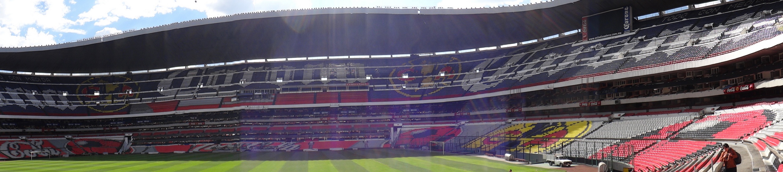 Fizemos um tour guiado pelo estádio, percorrendo a sua parte externa, vestiários, sala de imprensa, túnel de acesso ao campo e o campo e as arquibancadas. Foi uma visita muito legal e havia um sentimento de muito orgulho entre os funcionários do estádio e do América, pois no meio da semana, o América havia se sagrado campeão mexicano jogando neste estádio, em mais uma disputa histórica naquela cancha. O América havia perdido o primeiro jogo para o Cruz Azul por um a zero, e estava perdendo também a partida de volta, no Estádio Azteca, por um a zero até os 44 minutos do segundo tempo, quando após muita pressão conseguiu empatar o jogo, mesmo jogando bom tempo com um jogador a menos. A partida já estava nos descontos, quando em uma cobrança de escanteio, o GOLEIRO do América, em um ato de desespero, foi para a área do Cruz Azul tentar a sorte e virou o jogo com um cabeceio no último lance do tempo regulamentar, levando a partida, que estava praticamente perdida, para a prorrogação. O tempo de prorrogação terminou em igualdade e o América acabou sagrando-se campeão na disputa por pênaltis, para o êxtase dos mais de 100 mil torcedores que presenciaram esta disputa no Azteca. Nós havíamos assistido a esta partida pela televisão em Salina Cruz e pudemos testemunhar a loucura que tomou conta dos torcedores do América na cidade após o final deste jogo.