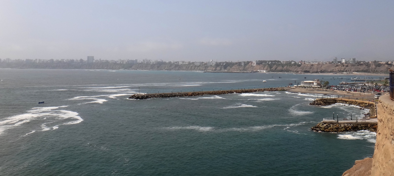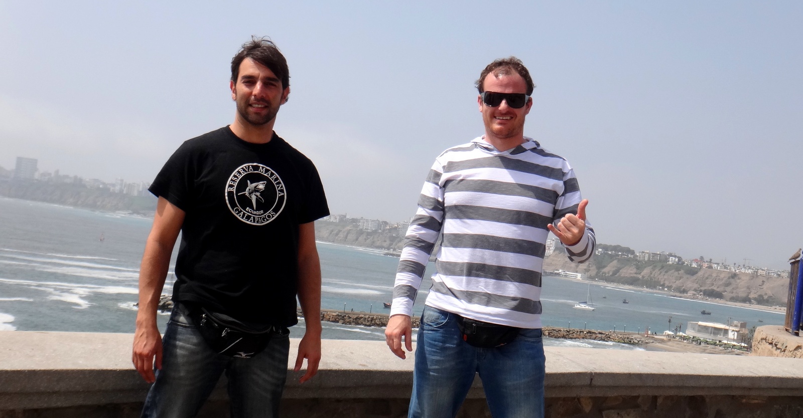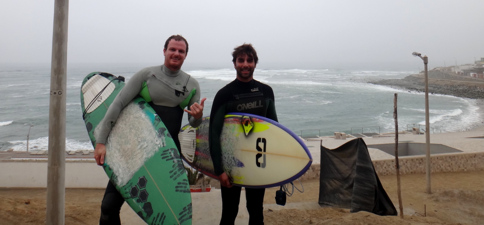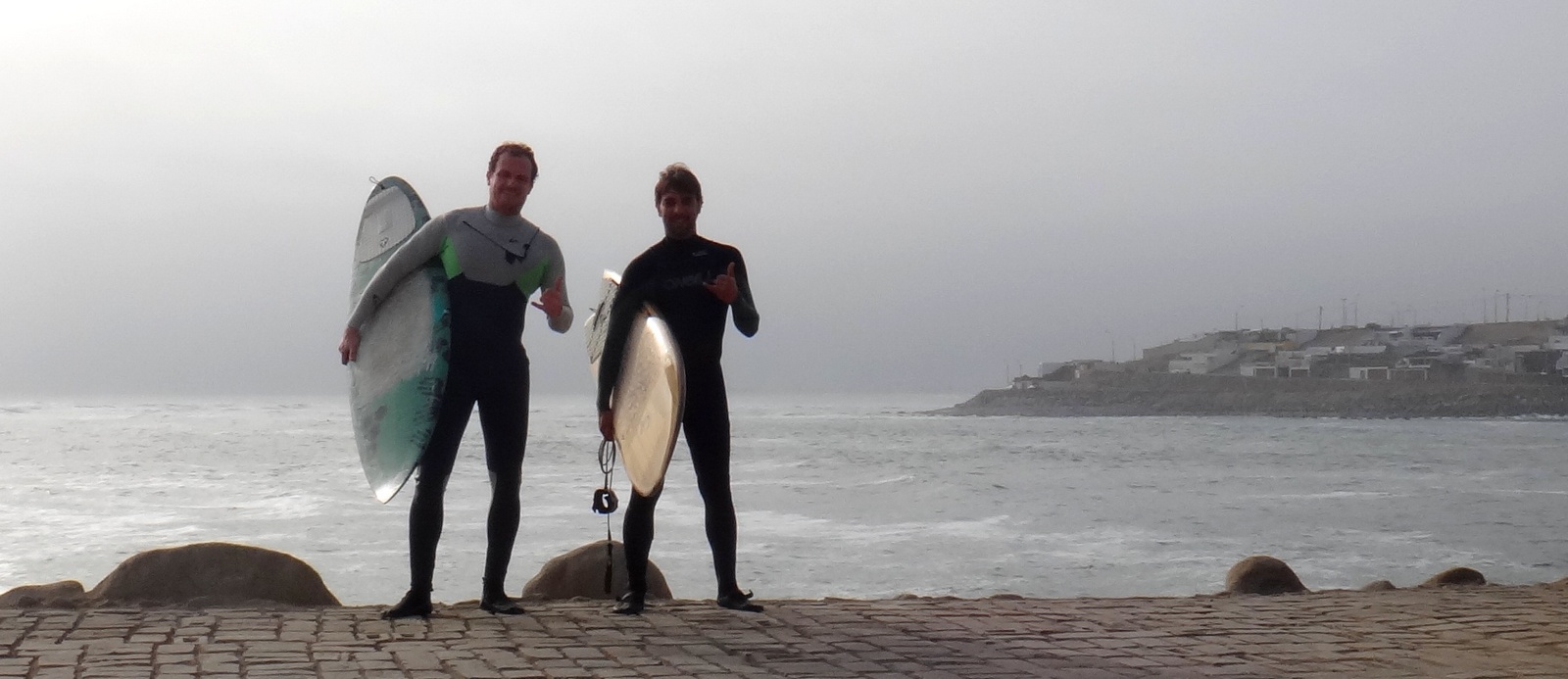 Acabei tendo que remarcar a minha passagem e voei para Lima no domingo, dia 15. Enquanto isso, o Heron ficou surfando na capital peruana, aguardando a minha chegada. Desembarquei em Lima e já saí do aeroporto com um carro alugado, com o qual rodamos durante todo o período que ficamos no país. Passei em Miraflores, resgatei o Heron no hostel que ele estava e seguimos rumo à Punta Hermosa. No caminho, passamos em La Herradura para dar um conferes e também para o Heron conhecer o pico.
