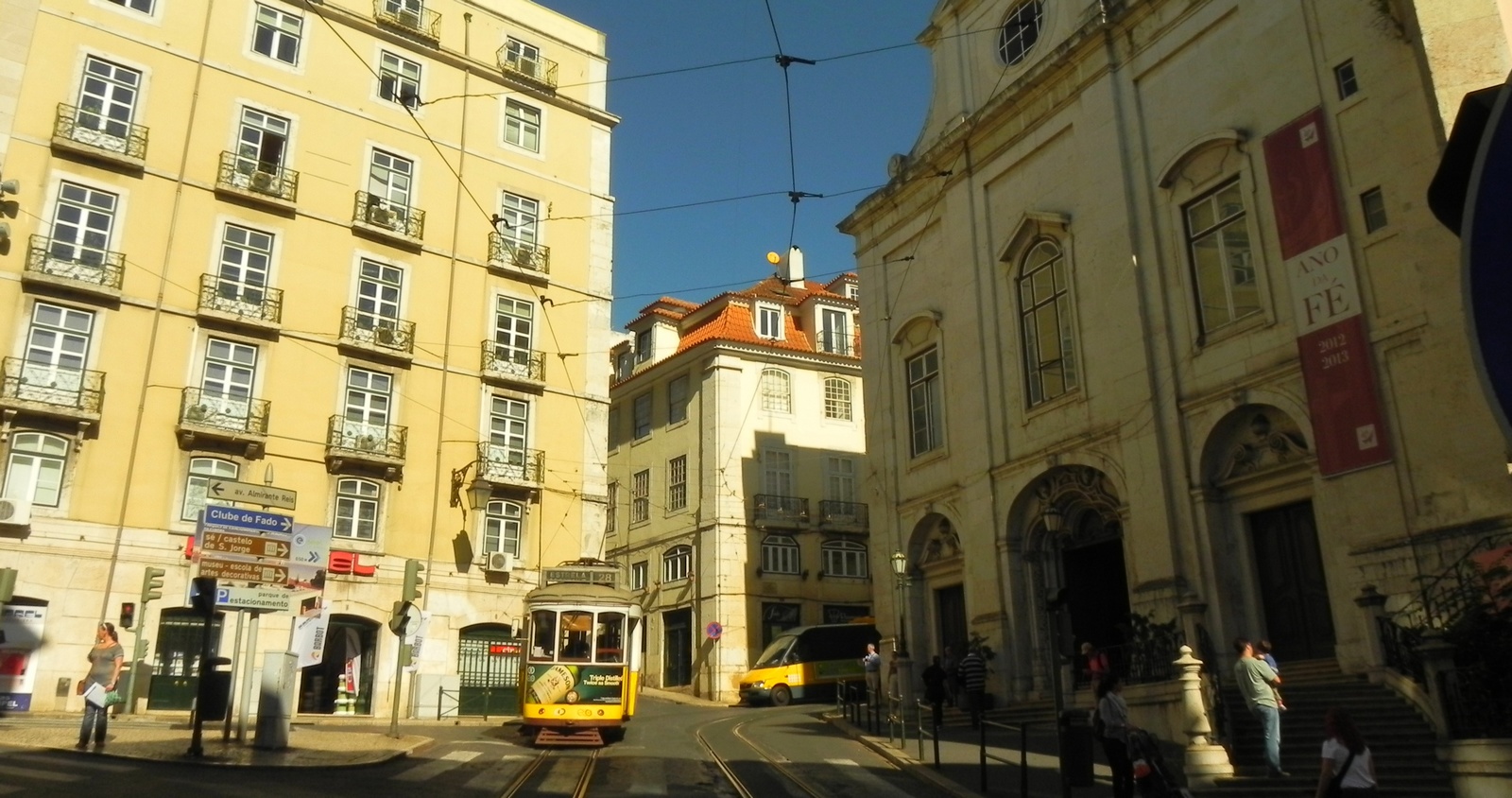 Saindo do castelo de São Jorge, peguei o Elétrico 28, que é o clássico bondinho lisboeta, amarelo por fora e com o interior forrado de madeira. Com ele pode-se percorrer os bairros históricos da cidade, num verdadeiro city tour (a um preço imbatível). Durante o percurso, ele percorre sacolejando as ladeiras de Alfama, atravessa a Baixa, o Chiado, Santos e chega ao Campo de Ourique.