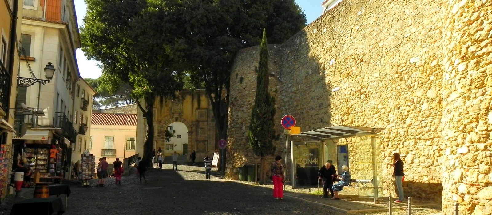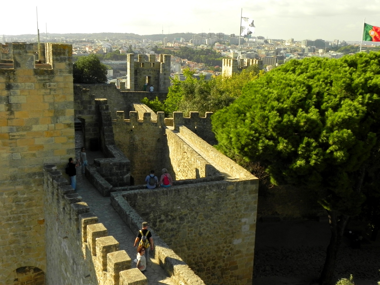 Continuando a subir, logo cheguei ao Castelo de São Jorge. Em uma área de 6mil m2 sobre o Rio Tejo, onde já no século 7 a.C. havia um povoado fortificado, o Castelo é tido como um dos monumentos mais emblemáticos da cidade. Ao longo dos anos foi diversas vezes remodelado, testemunhando grandes marcos da história local, como a presença de gregos, fenícios, romanos, visigodos, suevos, mouros e sarracenos, o período áureo do império português, a integração das colônias espanhola e portuguesa e as guerras napoleônicas. Nessa antiga área que chegou a concentrar o poder político e militar da cidade no século 11 – período de Dom Afonso Henriques, o primeiro rei de Portugal -, destacam-se o Castelejo, a Casa do Governador e o Antigo Paço Real, que abrigou reis portugueses até 1511. Devido a sua localização estratégica, dos baluartes é possível contemplar a beleza do Tejo e de Alfama.