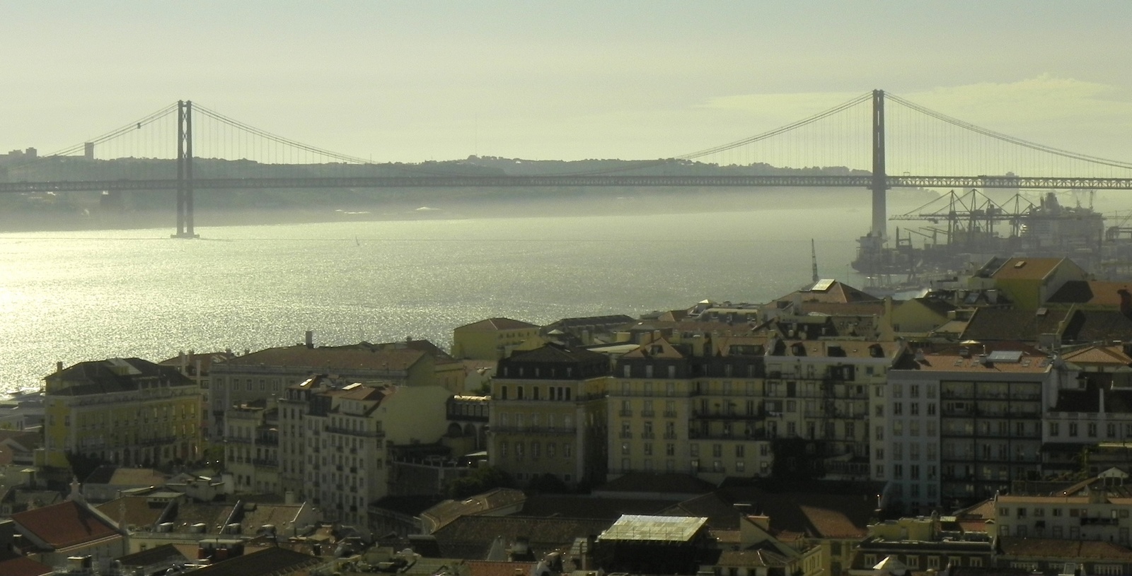 Rio Tejo e a Ponte 25 de Abril ao fundo
