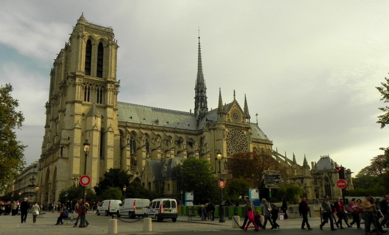A Catedral de Notre Dame é realmente impressionante. Considerada carro-chefe da arte gótica, a suntuosa igreja foi construída entre os séculos XII e XIII. O impacto visual começa por suas dimensões – 130 metros de profundidade, 48 de largura e 35 de altura, o que a torna apta a acomodar até 6 mil pessoas – e se desdobra em cada detalhe da edificação (que demorou quase dois séculos para ser concluída) e da coleção de obras de arte que comporta, entre vitrais, quadros e esculturas. A Notre Dame testemunhou alguns dos grandes eventos da história francesa, tais como a coroação de Napoleão como imperador em 1804 e a beatificação de Joana D’Arc em 1909 (representada em uma estátua no interior da igreja). Também está guardado em seu relicário nada menos que a suposta coroa de espinhos de Jesus Cristo, exibida aos visitantes na primeira sexta-feira de cada mês. Para marcar a comemoração de 850 anos da catedral, a prefeitura de Paris construiu uma infraestrutura temporária em frente à catedral, numa espécie de arquibancada, onde se pode sentar e ficar apreciando os mínimos detalhes da construção. A catedral é realmente magnífica, um daqueles locais que tu fica parado olhando cada pequeno detalhe e, ao distrair-se, quando vê passou uma manhã inteira ali!