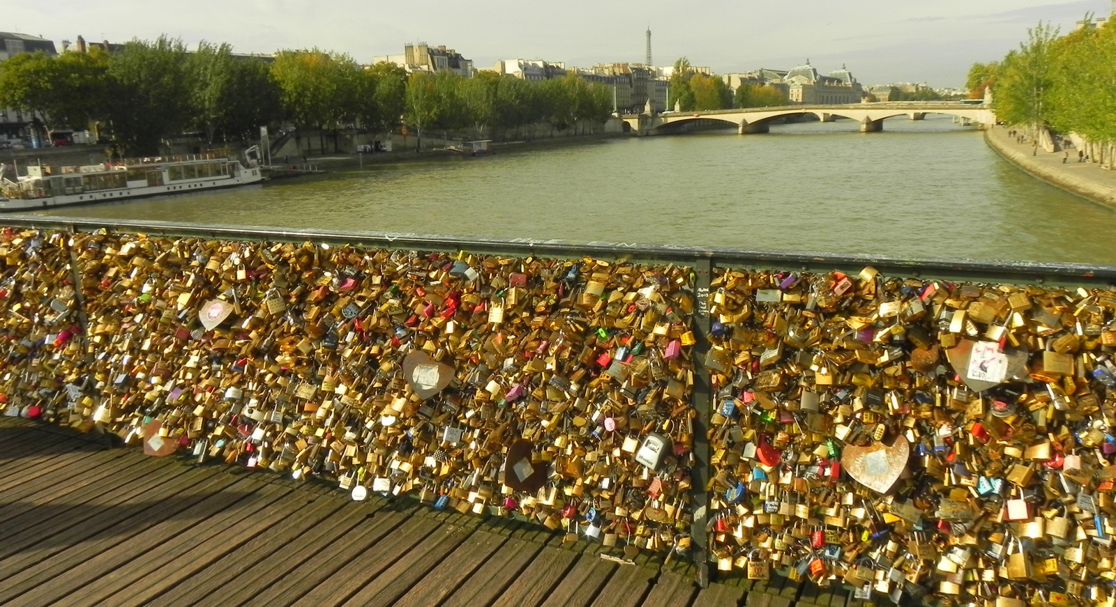 Continuei seguindo o curso do Sena em direção ao Museu do Louvre. No caminho uma parada na Pont Des Arts, conhecida como Ponte dos Cadeados. Muitos casais apaixonados vem aqui, escrevem suas inicias em mini cadeados, os trancam na ponte e atiram a chave no Rio Sena. Com isso, segundo a lenda, os amantes estarão amarrados para sempre, é como um sinal de amor eterno. Se um dia vieres a Paris com a patroa, este é um local que tem que estar na lista!