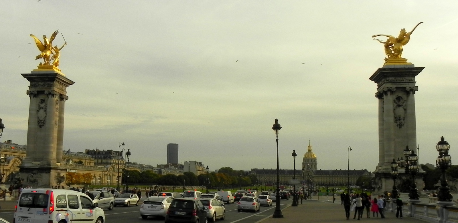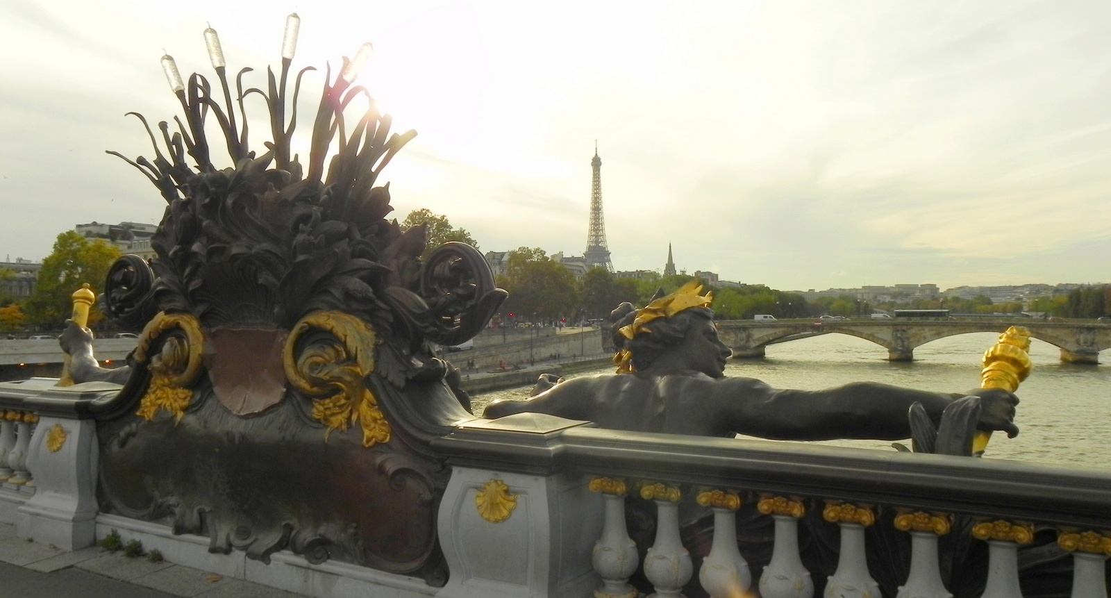 Da torre, comecei então a fazer o caminho de volta ao Quartier Latin, desta vez, pelo outro lado do Sena. Após caminhar alguns metros, logo cheguei à Ponte Alexandre III. Considerada um dos mais importantes monumentos artísticos de sua época, a ponte foi construída entre 1896 e 1900 e leva o nome do Czar Alexandre III. Ao longo dos 100 anos de existência seu aspecto pouco mudou, exceto pela cor. Atualmente prevalece o tom original que é pérola-acinzentado.