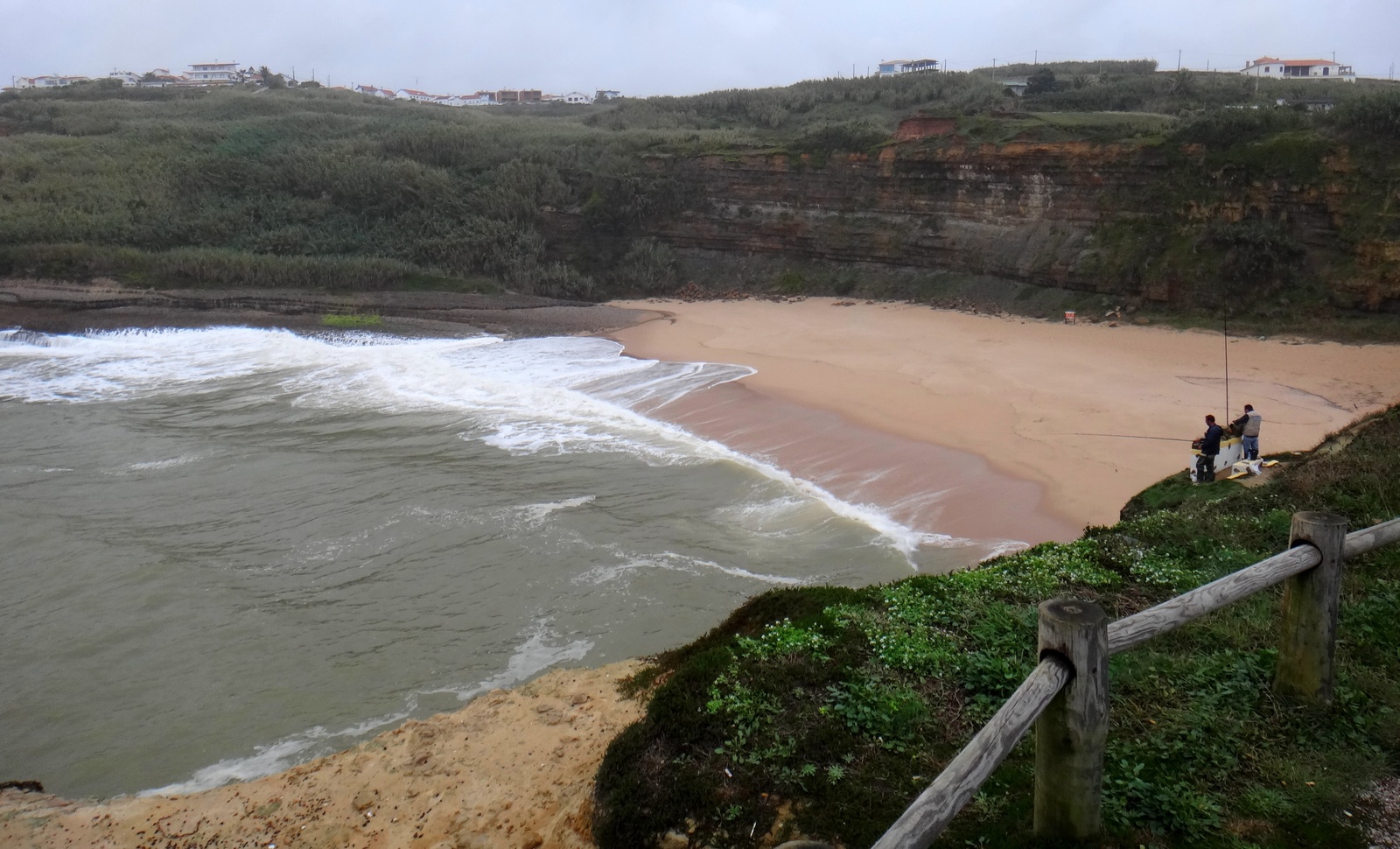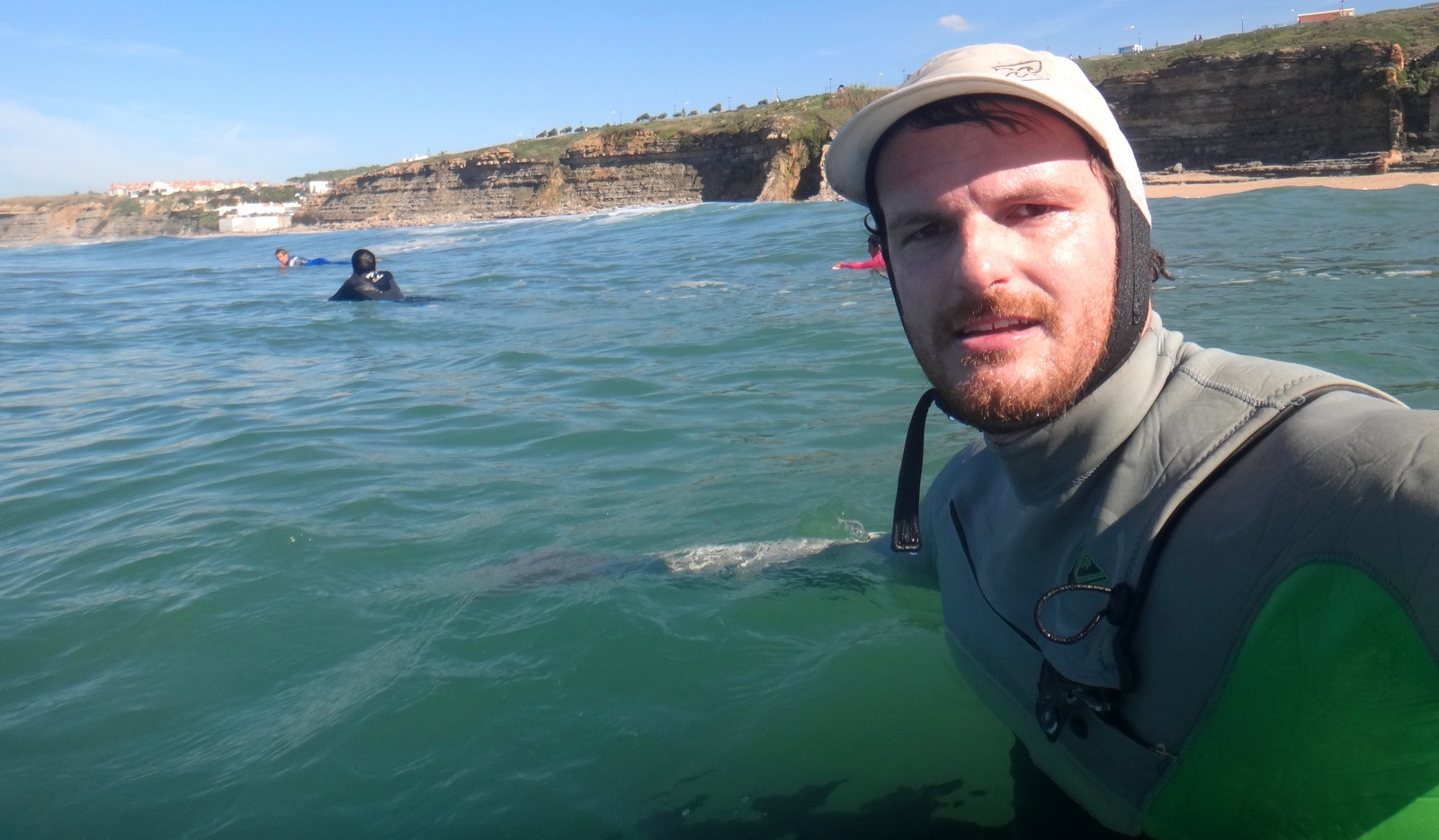 Tomei o café-da-manhã espetacular do Hotel Camarão e logo fui dar uma conferida em como estavam as condições de surfe nas praias. Ericeira toda estava bombando, passada! O mar estava cabuloso. Acabei dando um banho na Praia dos Pescadores, que era a única que havia menos de meia-dúzia de surfistas na água. A Praia dos Pescadores é a baia mais protegida da região, de onde saem os barcos de pesca e onde dificilmente rola onda. Porém, neste dia, era o único local “surfável” da região, e mesmo assim estava sinistro. Foi, sem dúvida, um dos maiores mares que já peguei, daqueles em que tu pega duas ondas e já valeu a sessão. Tomei umas bombas impressionantes, que fizeram valer o investimento no curso e nos treinamentos de apinéia.