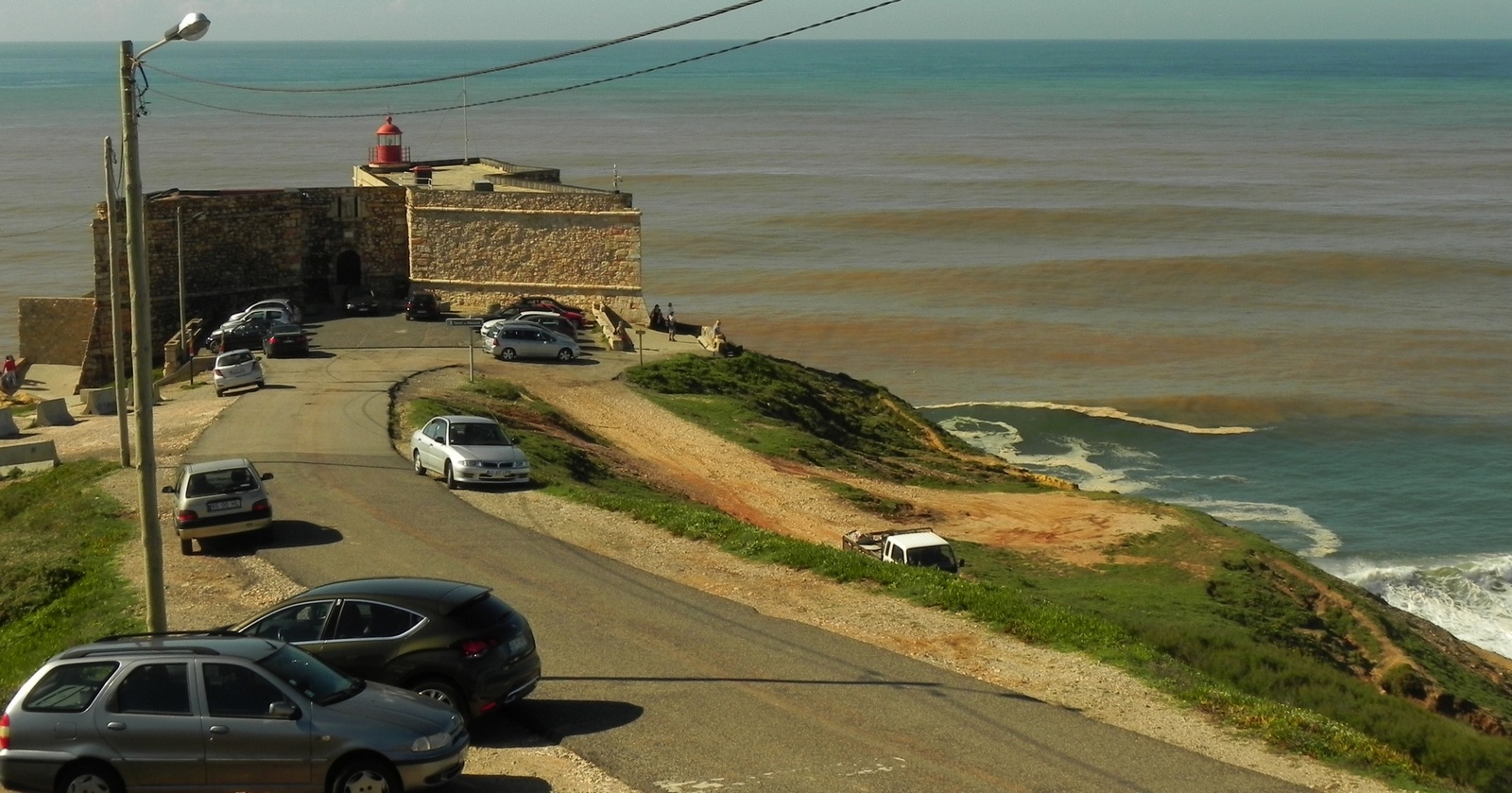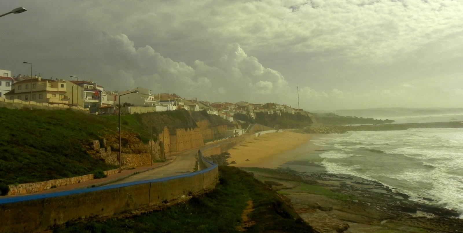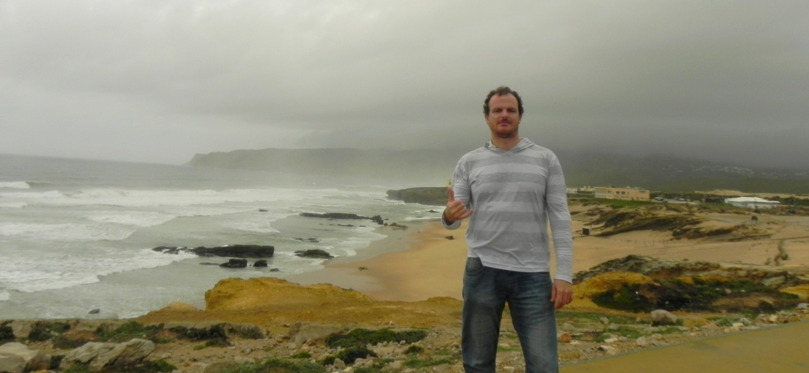 Quando eu ainda estava a fazer a vistoria do veículo, começou a “cair o mundo” em Lisboa. Chuvarada e ventos impressionantes. Uma forte tormenta havia chegado à Europa. Saí do aeroporto dirigindo e enxergando pouco mais do que um palmo à frente. Sintonizei uma rádio portuguesa, e eles dando alertas de fortes tempestades em toda Europa e de fortes ondas na costa. Sinal de que o surf estaria MODE ON!