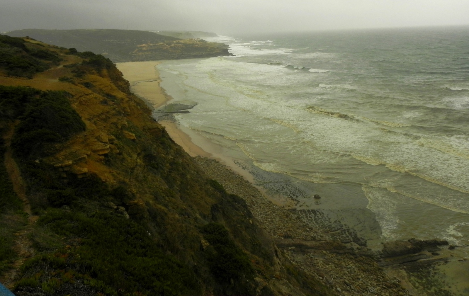 No canto sul da praia existe uma pequena baía, conhecida como “Little Guincho”, que também costuma ter boas bancadas. Neste dia, o mar estava super storm, devido à forte tempestade e não havia ninguém se arriscando na água. Decidi seguir viagem até Ericeira, onde eu iria me hospedar pelos próximos dias e fazer de “base” para ir surfar os demais picos da região.