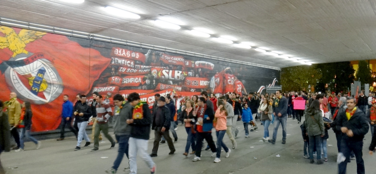 Uma coisa que me chamou muito a atenção quando desembarquei em Lisboa, foi que o aeroporto estava lotado de suecos fardados com a camiseta da sua seleção. Me dei conta que neste dia aconteceria o primeiro jogo da repescagem europeia para a Copa do Mundo do Brasil, e que naquela noite jogariam no Estádio da Luz em Lisboa, Portugal x Suécia. Peguei então o AeroBus até o hostel, larguei minhas coisas lá, e logo em seguida tomei o metro e me fui direto para o estádio para tentar assistir a partida no campo. Infelizmente não haviam mais ingressos. Assisti ao jogo no lado de fora, num telão do Centro Comercial Colombo, que fica ao lado do estádio, junto com uma multidão de gajos. Portugal venceu por 1 x 0, gol do Cristiano Ronaldo. A festa foi grande e se estendeu posteriormente para o Bairro Alto. Detalhe: o ingresso mais barato para o jogão custava 10 euros e o mais caro 30. E nós pagando mais de 150 reais para ver qualquer jogo da dupla GRENAL … é mole?!
