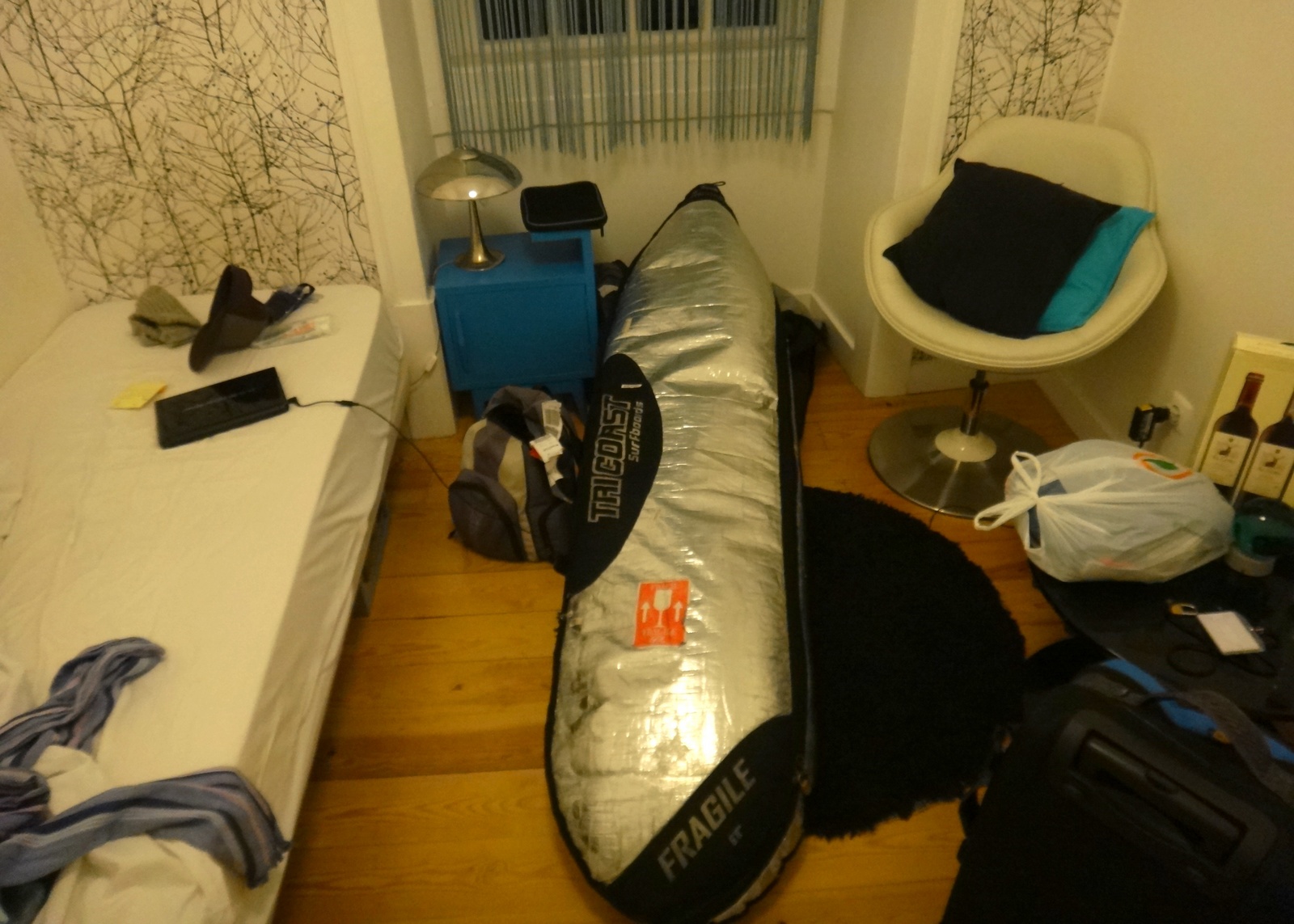 No final da tarde, quando retornei ao hostel, estava o meu pack de pranchas me esperando na portaria! Em Lisboa, vários viajantes com quem eu falei, reportaram o mesmo problema, com pranchas e malas extraviadas no Marrocos. O próprio dono do hostel me contou que esteve viajando por 10 dias no Marrocos com a sua mulher e pelos 10 dias ele não viu a cor de suas pranchas!! Ele recebeu o pack somente 20 dias depois em Lisboa!