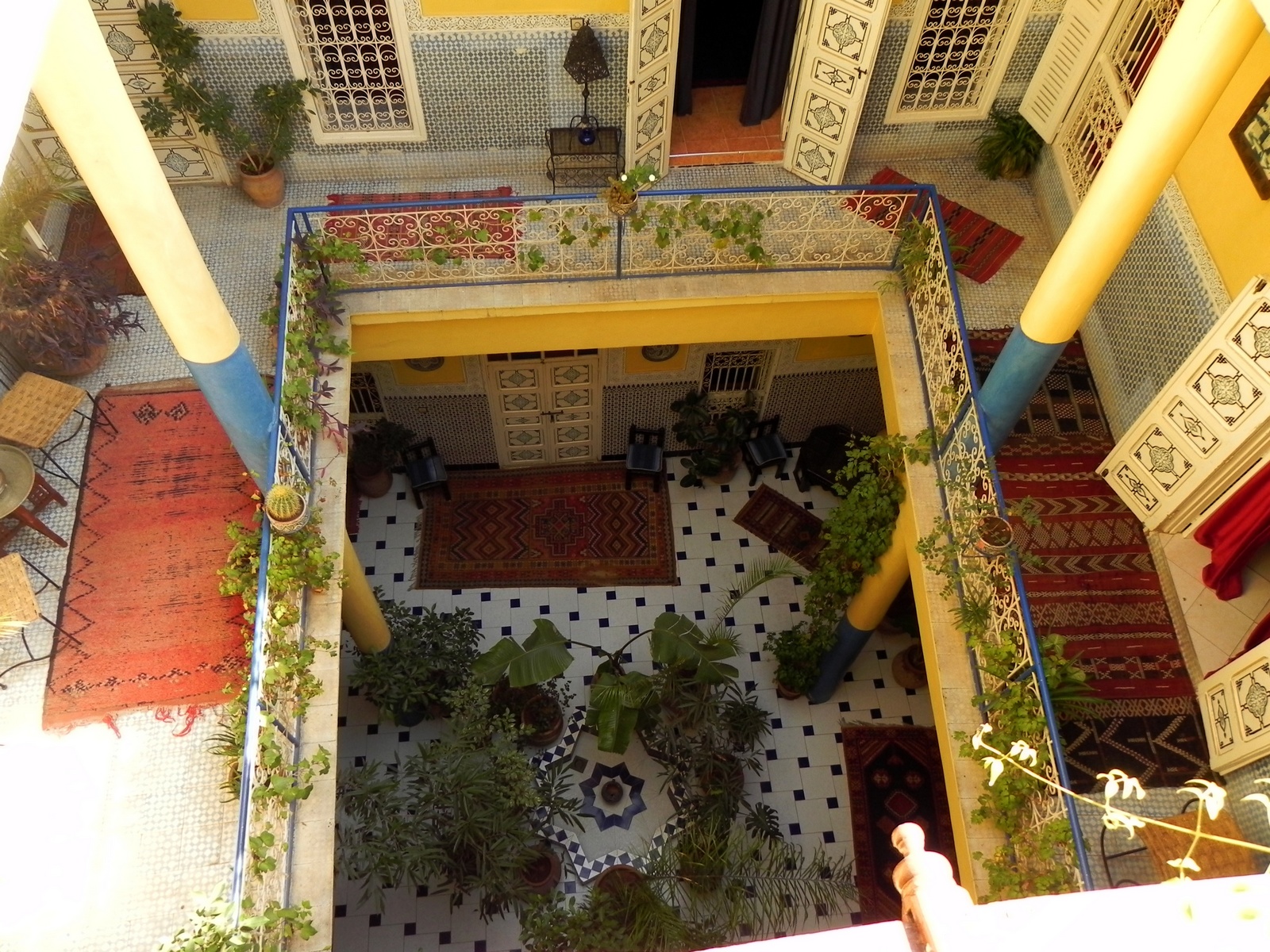 Os Riads são antigas casas transformadas em hotéis, onde os quartos ficam ao redor de um pátio, e para quem quer entrar no clima, é mais bacana do que ficar em um hotel. Eu me hospedei no Riad Sherazade (Derb Djama 3, Riad Zitoun el-Kedim), que era realmente bem maneiro, com um atendimento ótimo (e eles permitem deixar as malas lá sem cobrar, caso o hóspede vá para um tour no deserto).