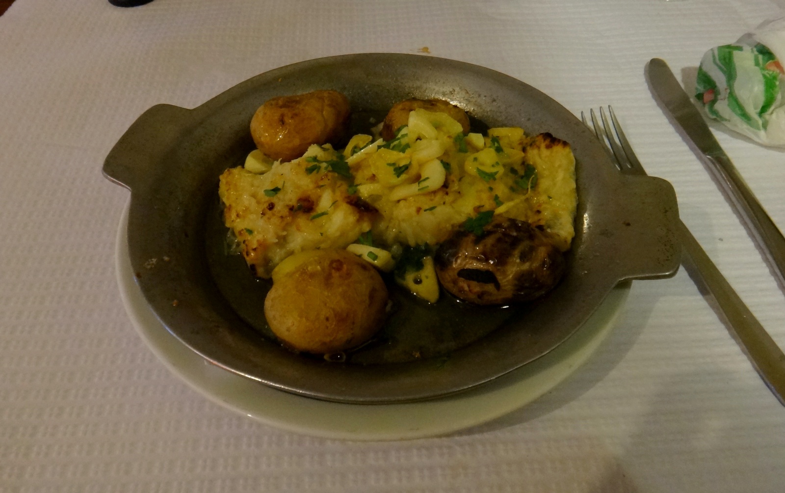 No final da noite, jantei um delicioso bacalhau em um Restaurante chamado Chiado, quase ao lado do Living Loung Hostel, na Rua do Crucifixo. Já estava com saudades !