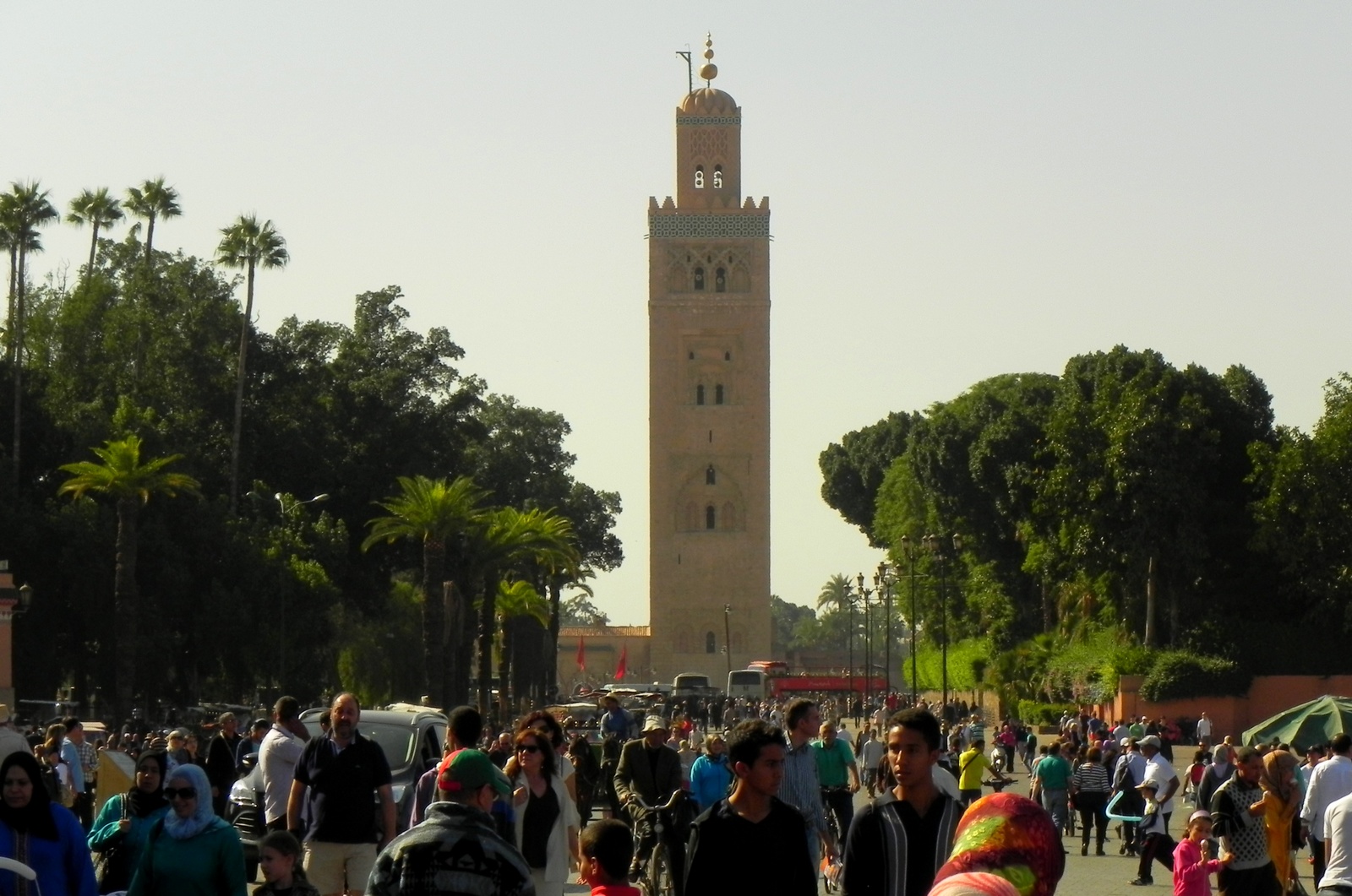 Marrakesh tem uma grande mesquita, a Koutoubia, situada bem próxima da praça Djema el Fna, e ela é um dos monumentos mais representativos da cidade. O nome deriva do árabe al-Koutoubiyyin, que significa “bibliotecário”, pois a mesquita costumava estar rodeada por vendedores de manuscritos. A torre tem 69 metros de altura e uma largura de 12,8 metros. O seu interior é constituído por seis salas, uma por cima da outra, atravessadas por uma rampa que permitia o almuadem chegar à varanda da torre. Foi construída no estilo tradicional almóada e a torre é adornada com quatro globos de cobre. O minarete da Koutoubia é o edifício mais alto da cidade.